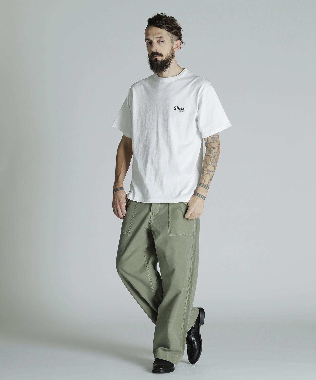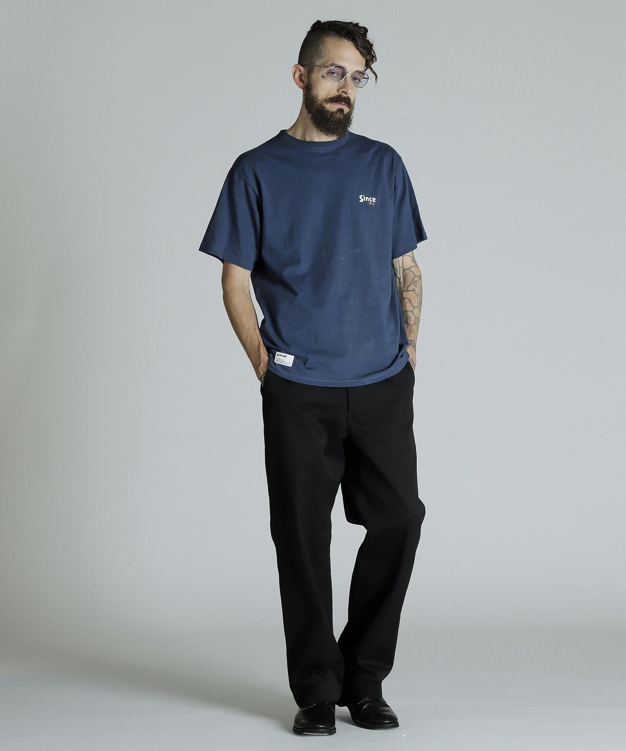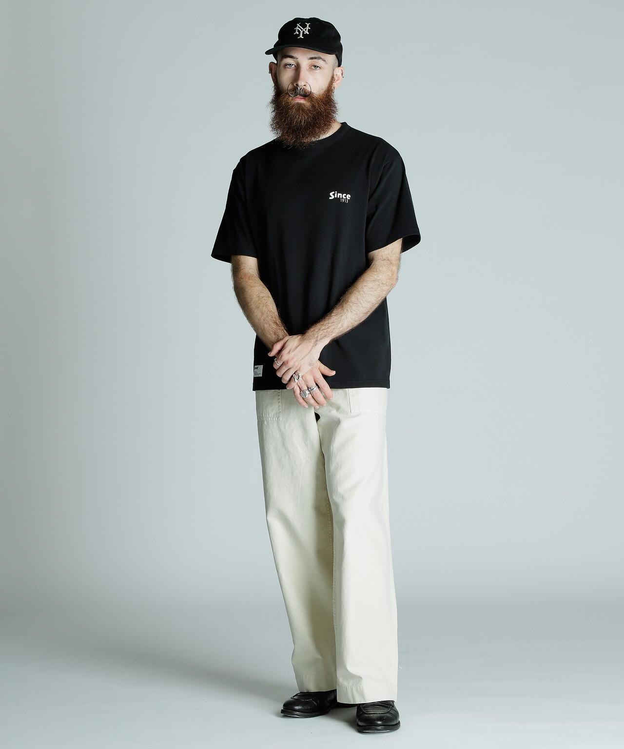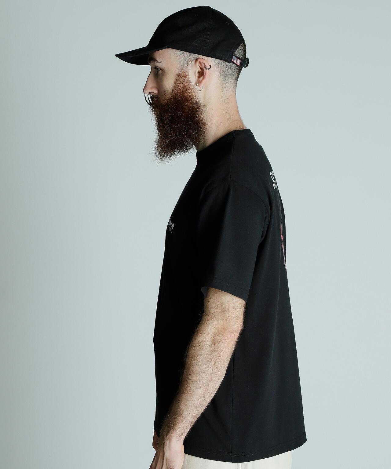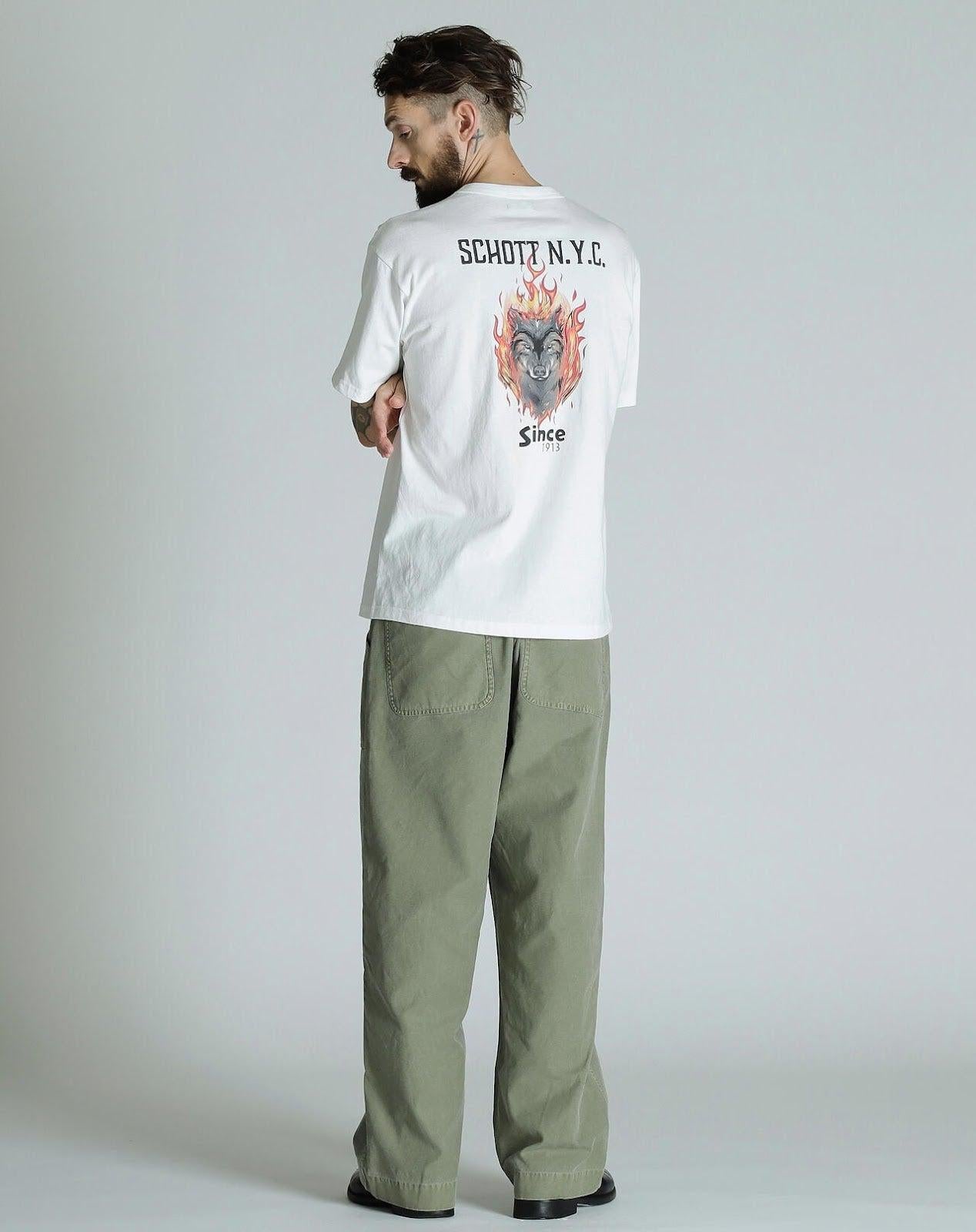 採用堅實厚實的 7 盎司紗體。硬、幹、粗糙的質地,加上只有開口紗才能帶來的蓬鬆、豐滿的手感,給人一種美國品牌的印象。採用捆綁式領口,縫製時將帶狀領口部分包裹在主體上。這樣的規格既能滿足大量使用,又不失厚實的衣身。大膽壓制白色,採用噴墨印花,在不影響衣身顏色的前提下,實現了與衣身顏色自然融合的印花效果。這種技術既能讓設計脫穎而出,又能利用 T 恤的原色。由於沒有留白,印花的顏色與身體的顏色融為一體,使其看起來就像是身體不可分割的一部分。面料:100% 棉 原產地:中國 [Scho