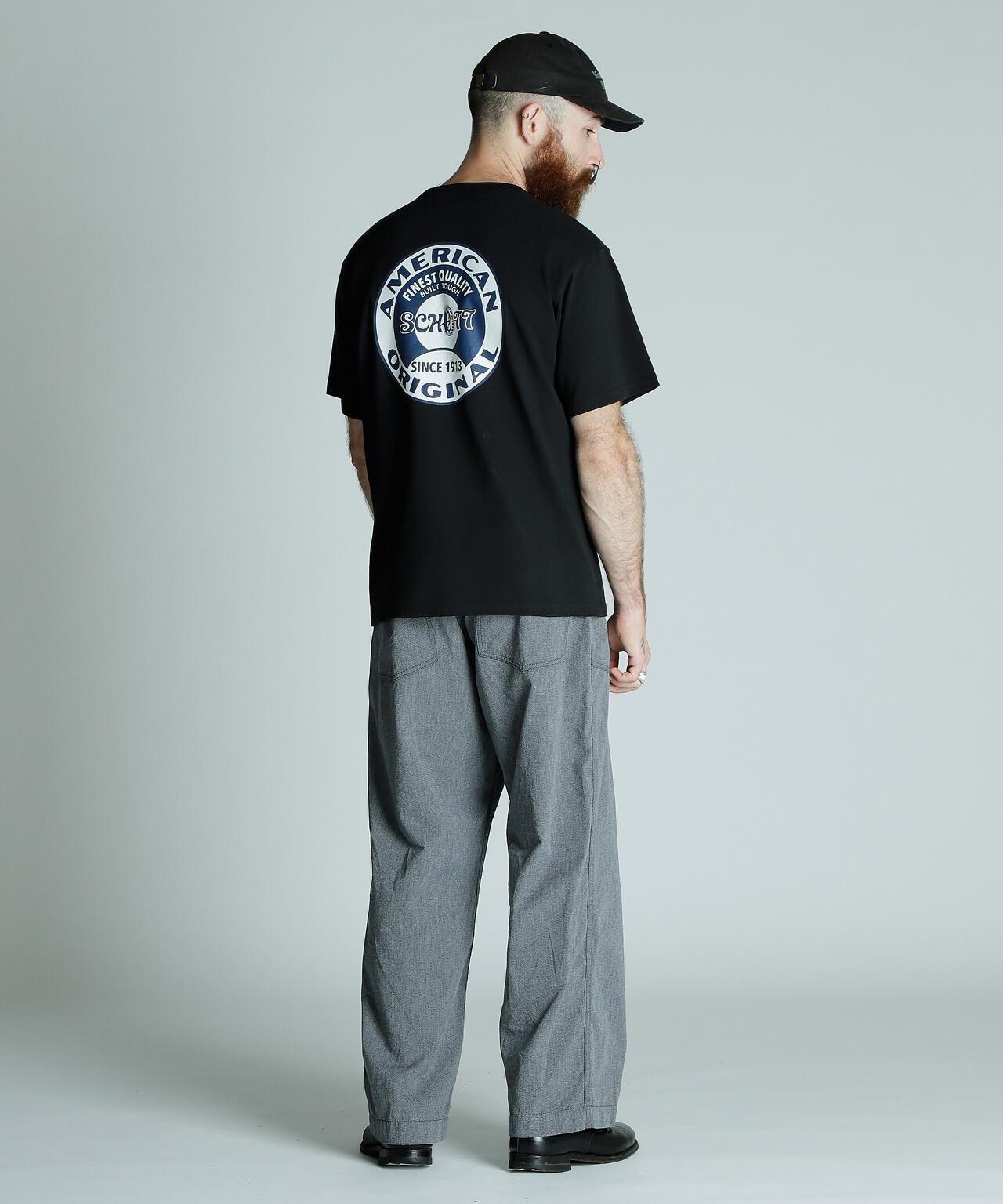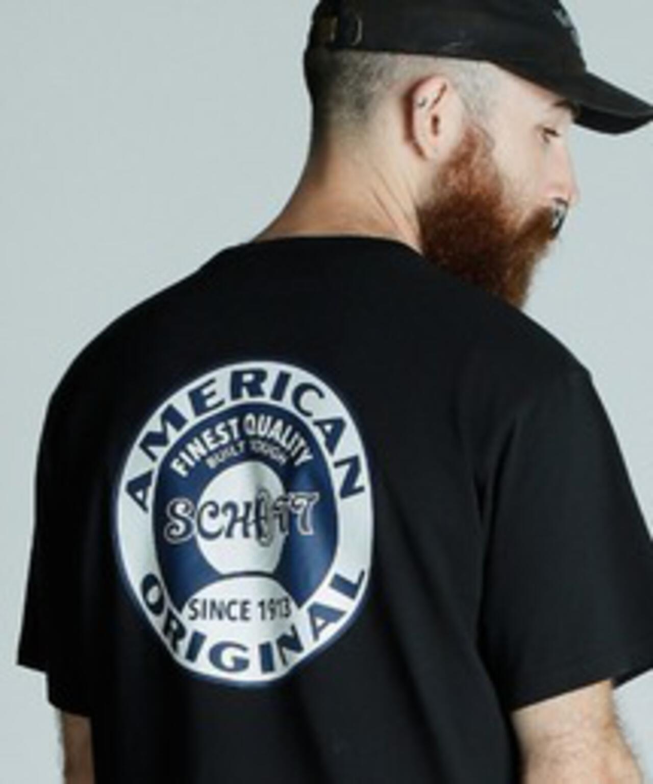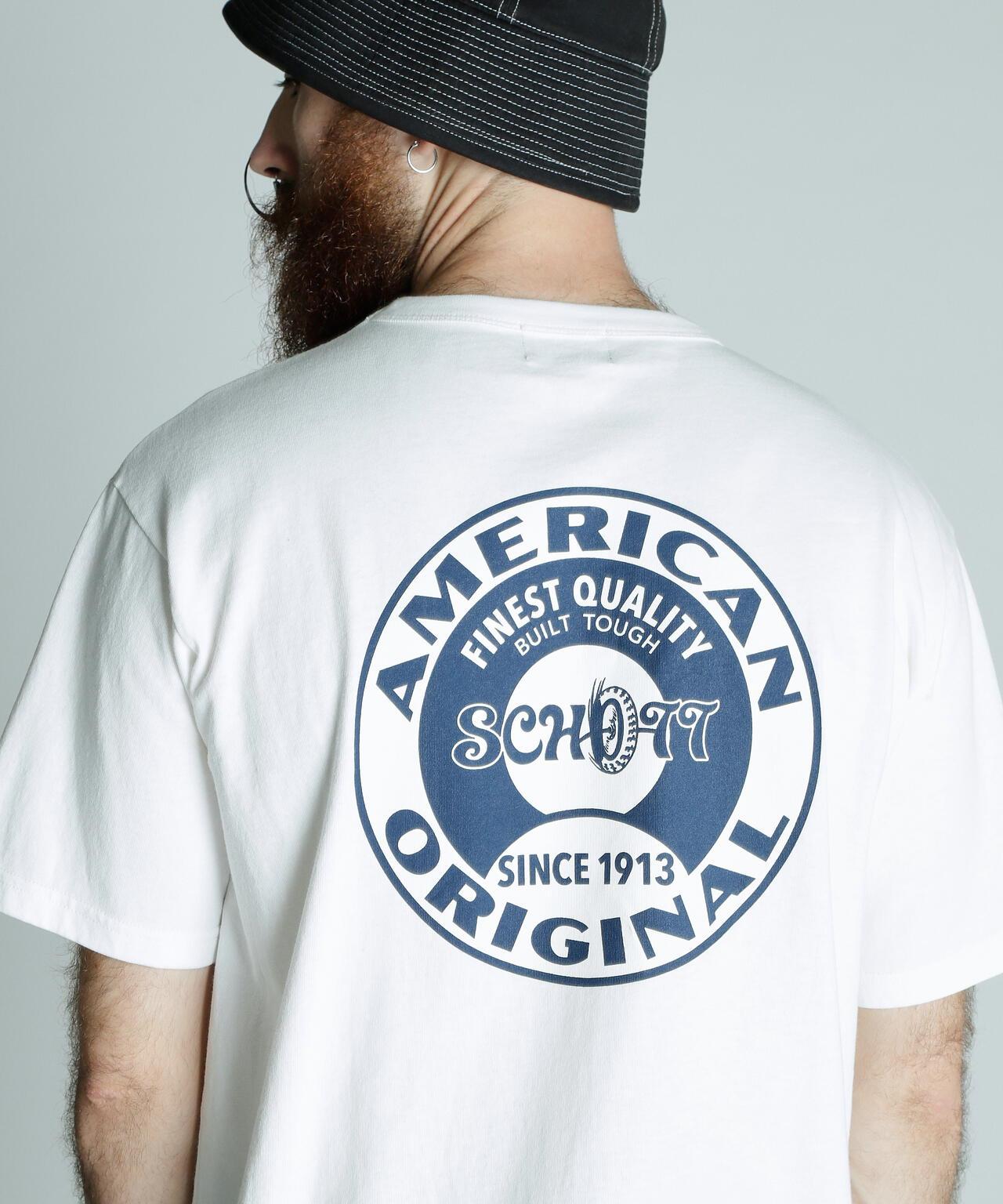 採用堅實厚實的 7 盎司紗體。硬、幹、粗糙的質地,加上只有開口紗才能帶來的蓬鬆、豐滿的手感,給人一種美國品牌的印象。採用捆綁式領口,縫製時將帶狀領口部分包裹在主體上。這種規格既能滿足厚重的使用需求,又不失厚實的衣身。這款 T 恤使用了在美國長期流行的具有地方特色的圓形標誌。這款 T 恤的設計讓人聯想到復古文化和當地社區的魅力,具有美國經典的精髓。材質:100% 棉 原產地:中國 [Schott] 作為騎手夾克的代名詞,Schott 的歷史始於 1913 年的紐約。