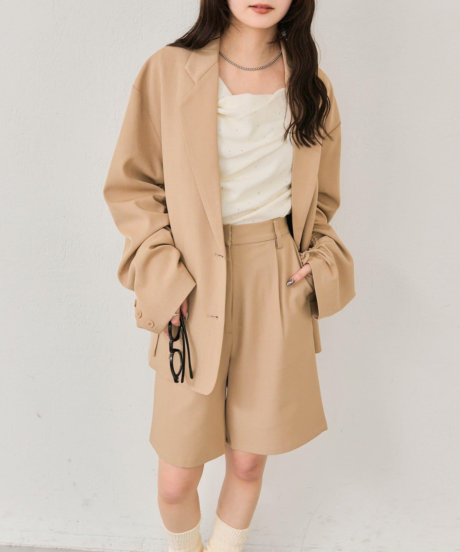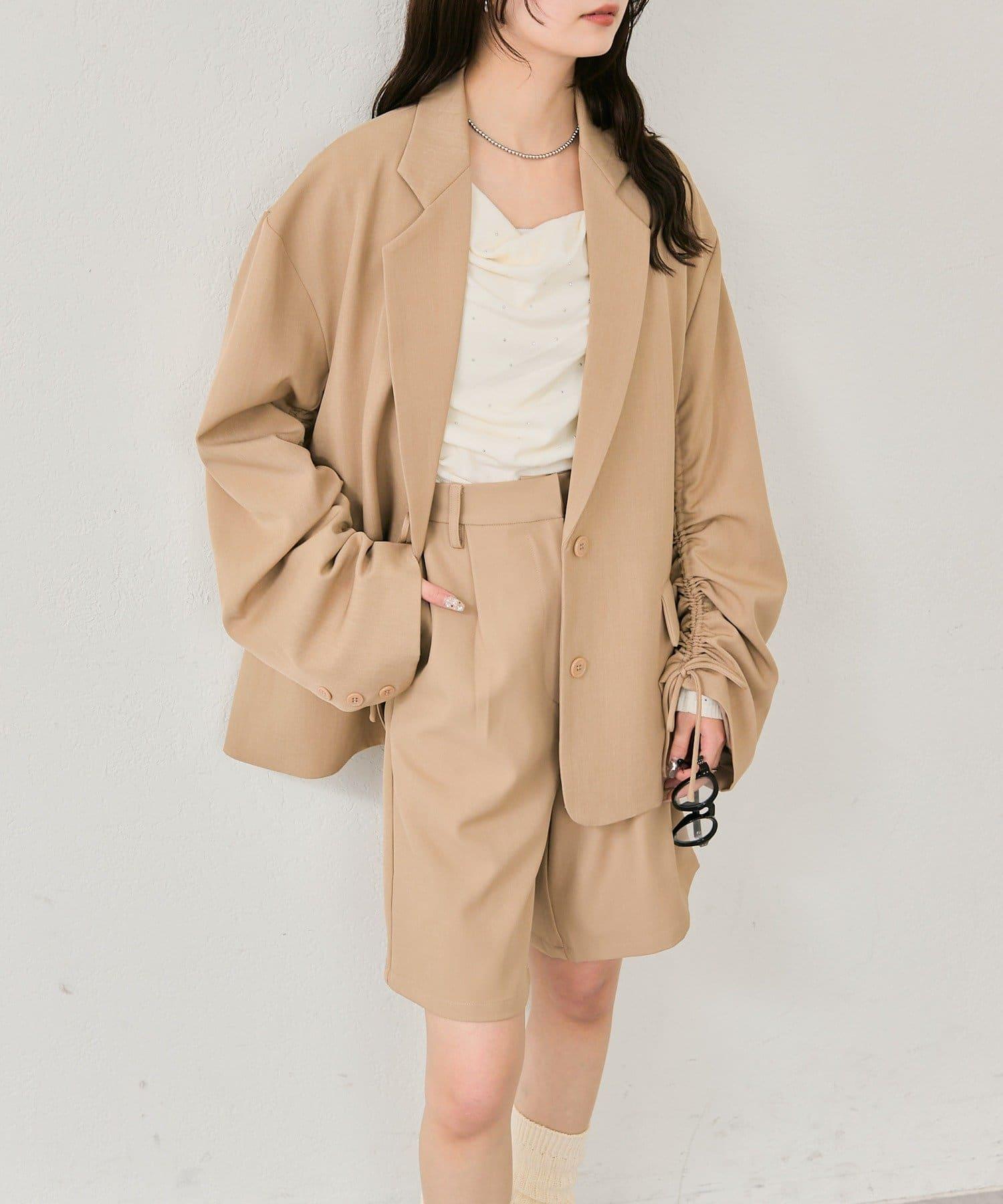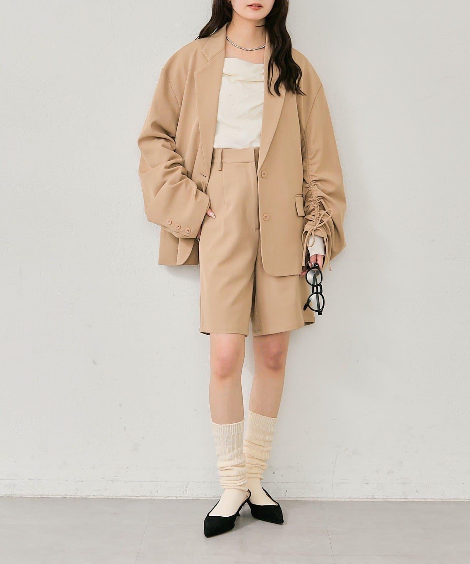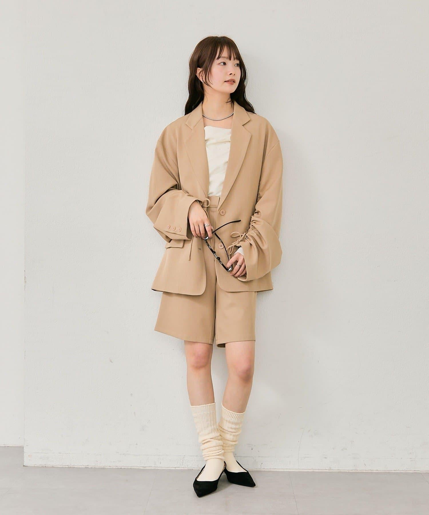 褲子可搭配抽繩袖剪裁的夾克,讓造型更優雅。