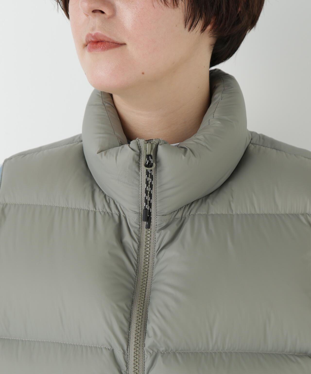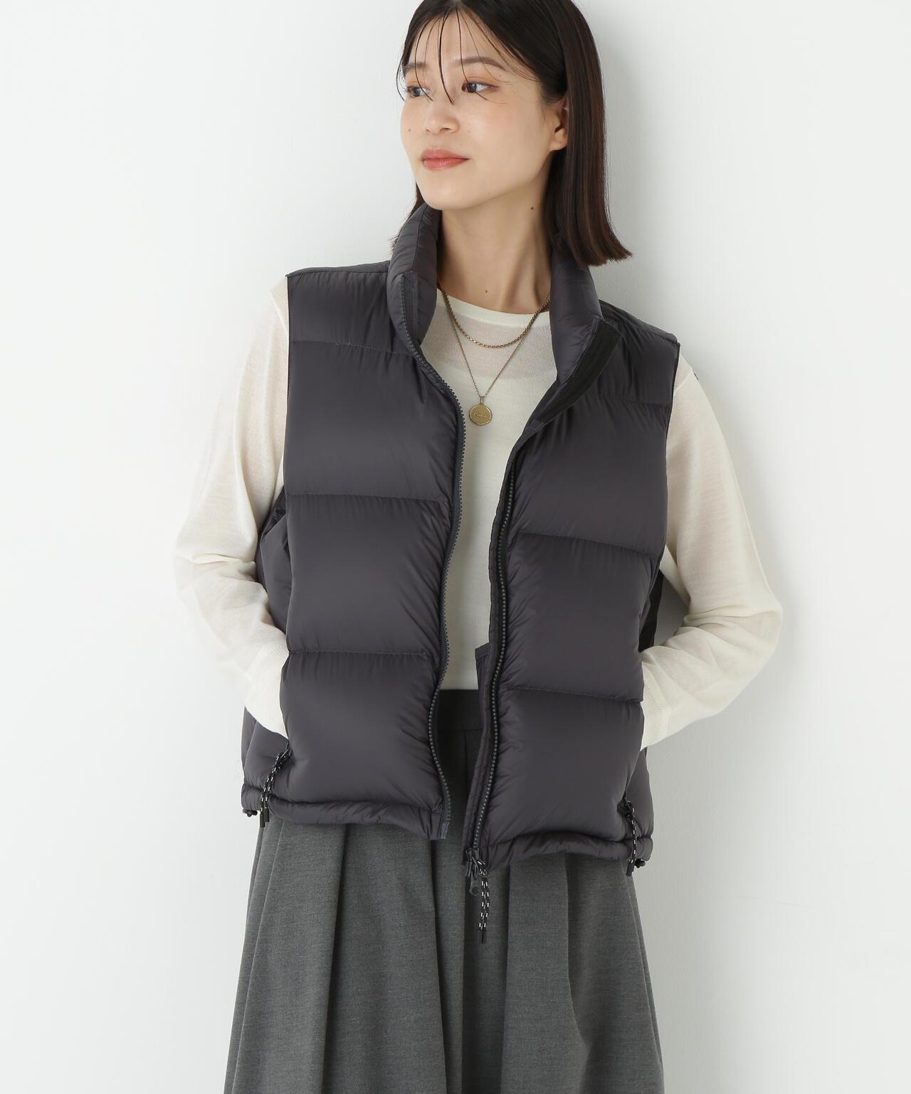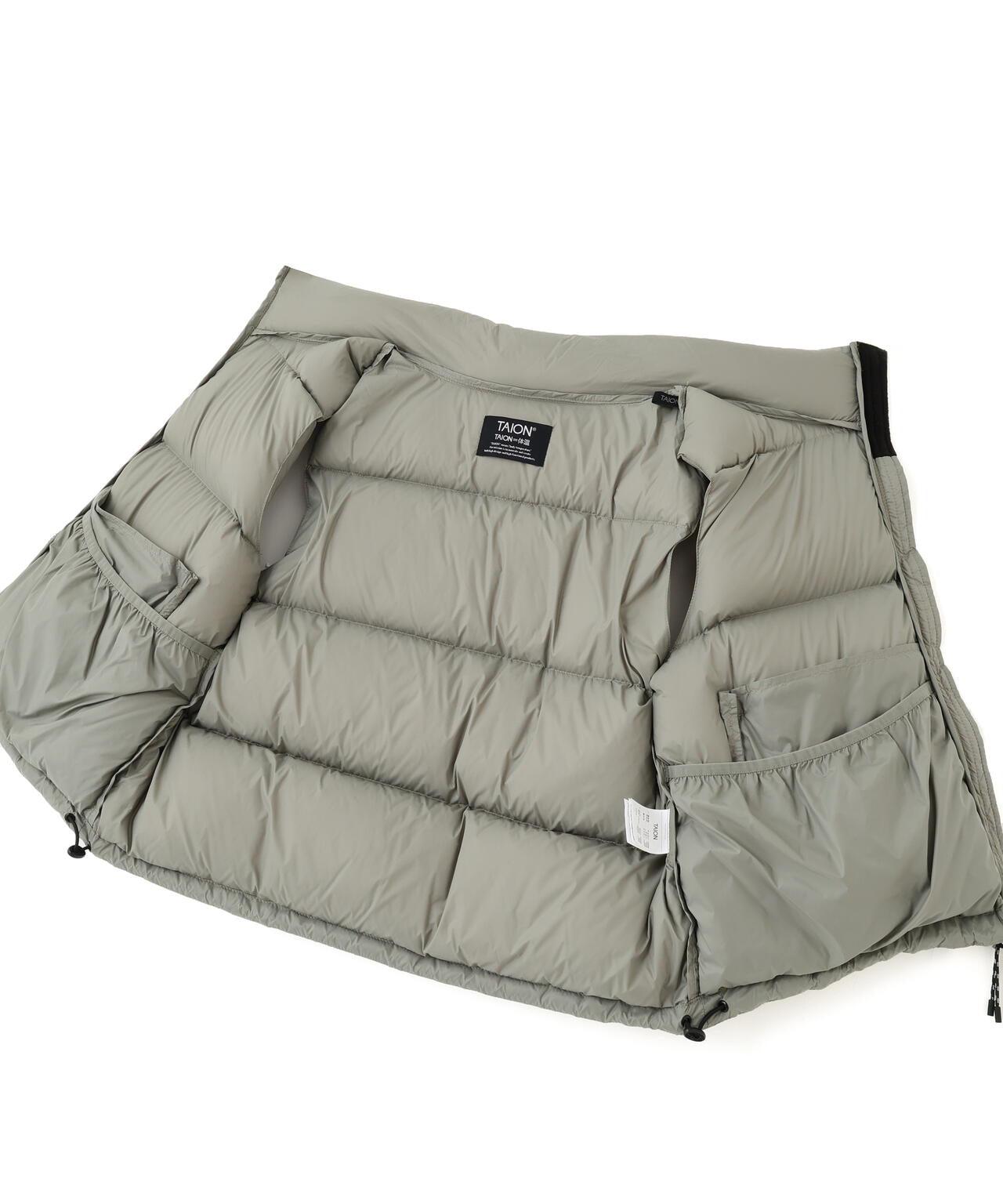 來自 TAION×human woman 合作系列的立式羽絨馬甲 [設計特色] 來自 TAION 的羽絨馬甲是特別定製的。長度適中,領長也是特別訂製,便於穿著。被子圖案和口袋設計也是特別定製。附帶可打包使用的抽繩,上面印有原創徽標。前襟內側下方附有內袋,增加了服裝的功能性。採用 TAION 獨有的塔夫綢面料製成,非常輕薄柔軟。是一款非常輕薄的羽絨馬甲。推薦座標] 這款特價商品的長度較短,您可以選擇與之搭配的下裝。