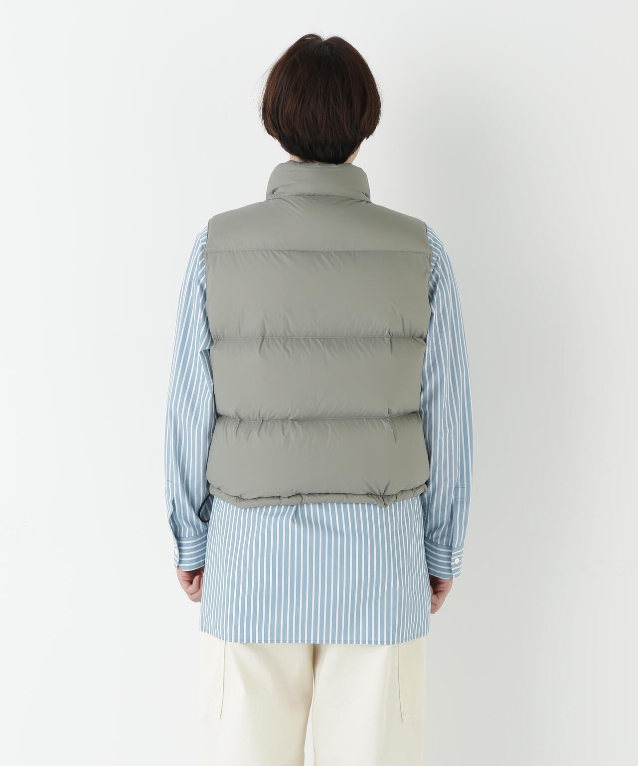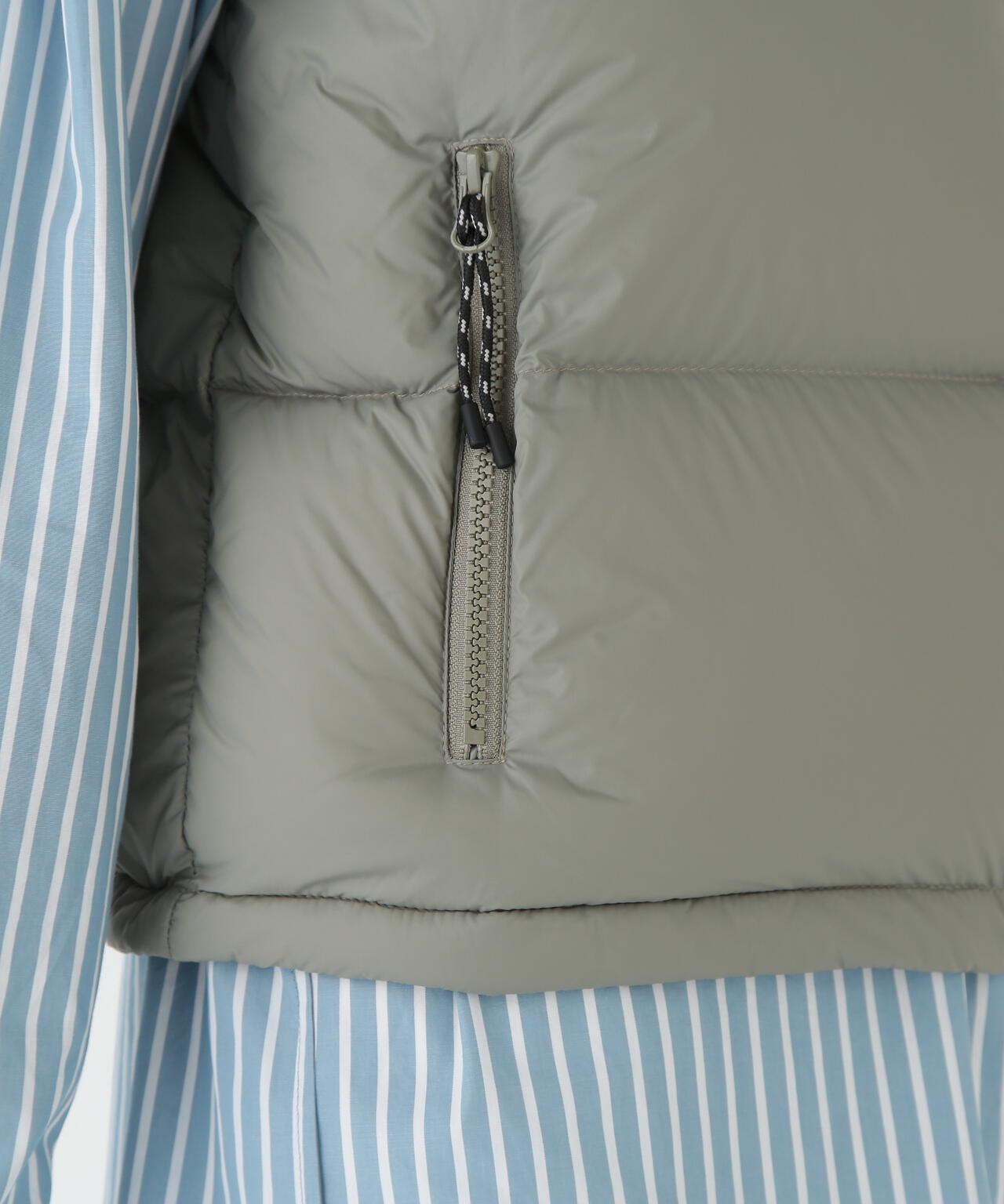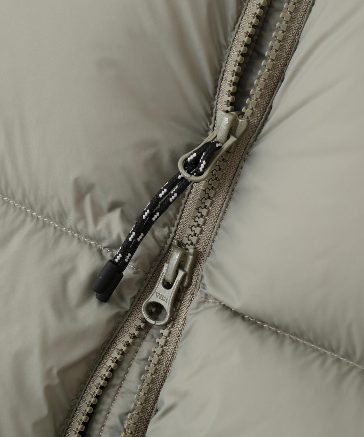 來自 TAION×human woman 合作系列的立式羽絨馬甲 [設計特色] 來自 TAION 的羽絨馬甲是特別定製的。長度適中,領長也是特別訂製,便於穿著。被子圖案和口袋設計也是特別定製。附帶可打包使用的抽繩,上面印有原創徽標。前襟內側下方附有內袋,增加了服裝的功能性。採用 TAION 獨有的塔夫綢面料製成,非常輕薄柔軟。是一款非常輕薄的羽絨馬甲。推薦座標] 這款特價商品的長度較短,您可以選擇與之搭配的下裝。