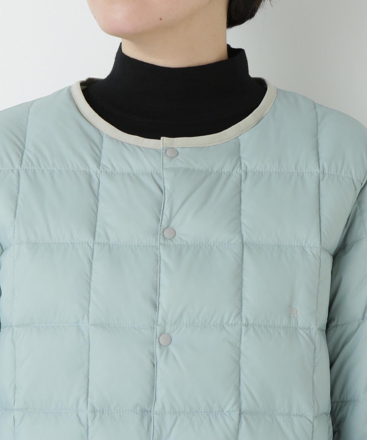 TAION×human 女士合作款紐扣羽絨服 [設計特寫] TAION 的基本款輕薄羽絨罩衫也可作為內搭羽絨服使用,去年很受歡迎,本季特別定製。今年的尺寸比去年略大,並進一步更新為雙面規格。左胸前繡有 "h "字樣的可打包抽繩。原有的 TAION 塔夫綢面料輕薄。您還可以欣賞到正面和背面的配色方案。這是一款羽絨服,可隨意穿在剪裁縫製或襯衫外面,也可與外衣疊穿,享受多種穿衣方式。可打包的規格使其成為戶外場景和旅行的理想伴侶。