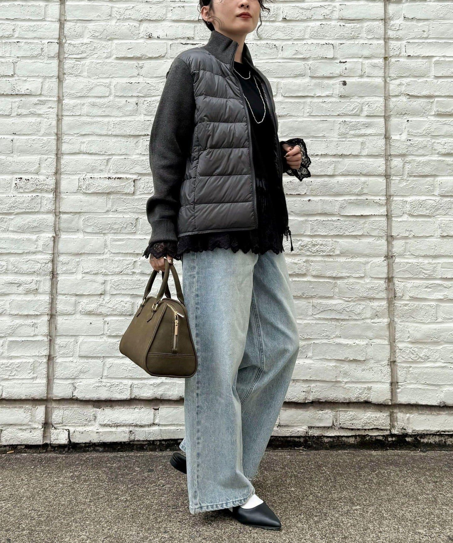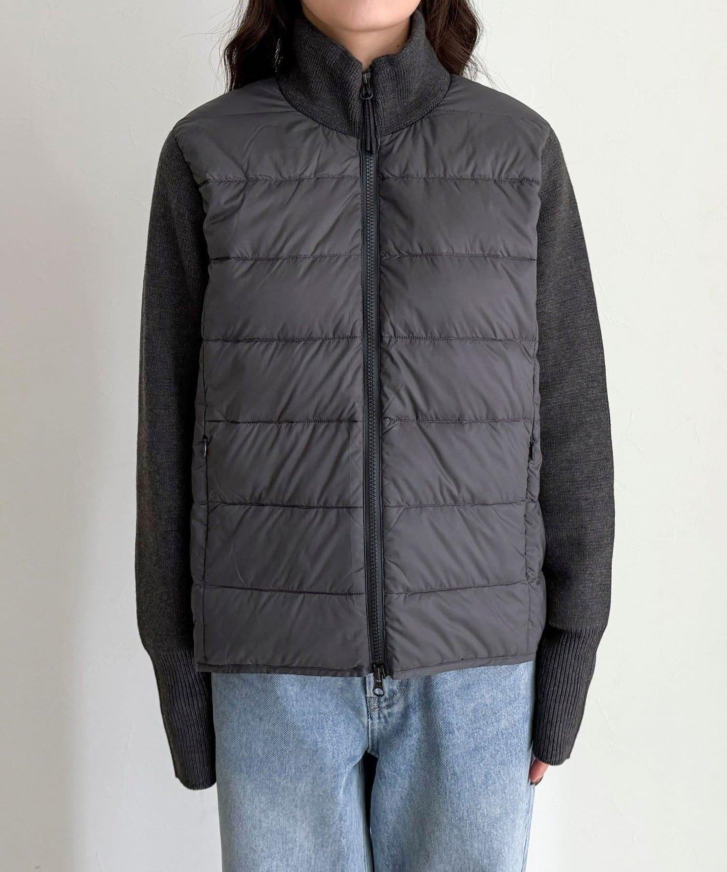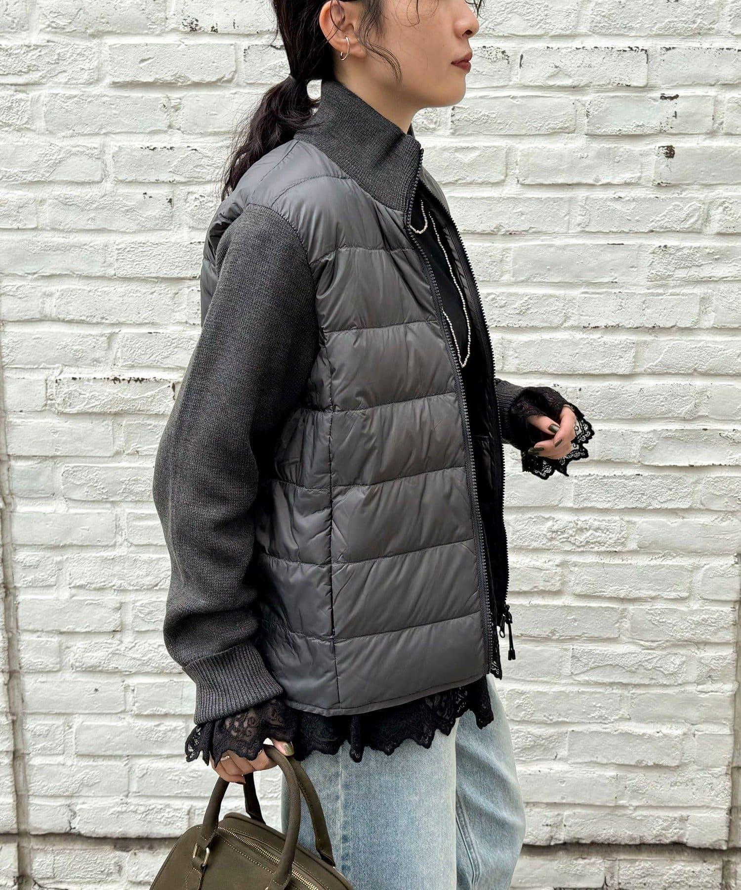 這是一種可以像開衫一樣編織的內搭羽絨服,頸部和袖子使用針織材料。