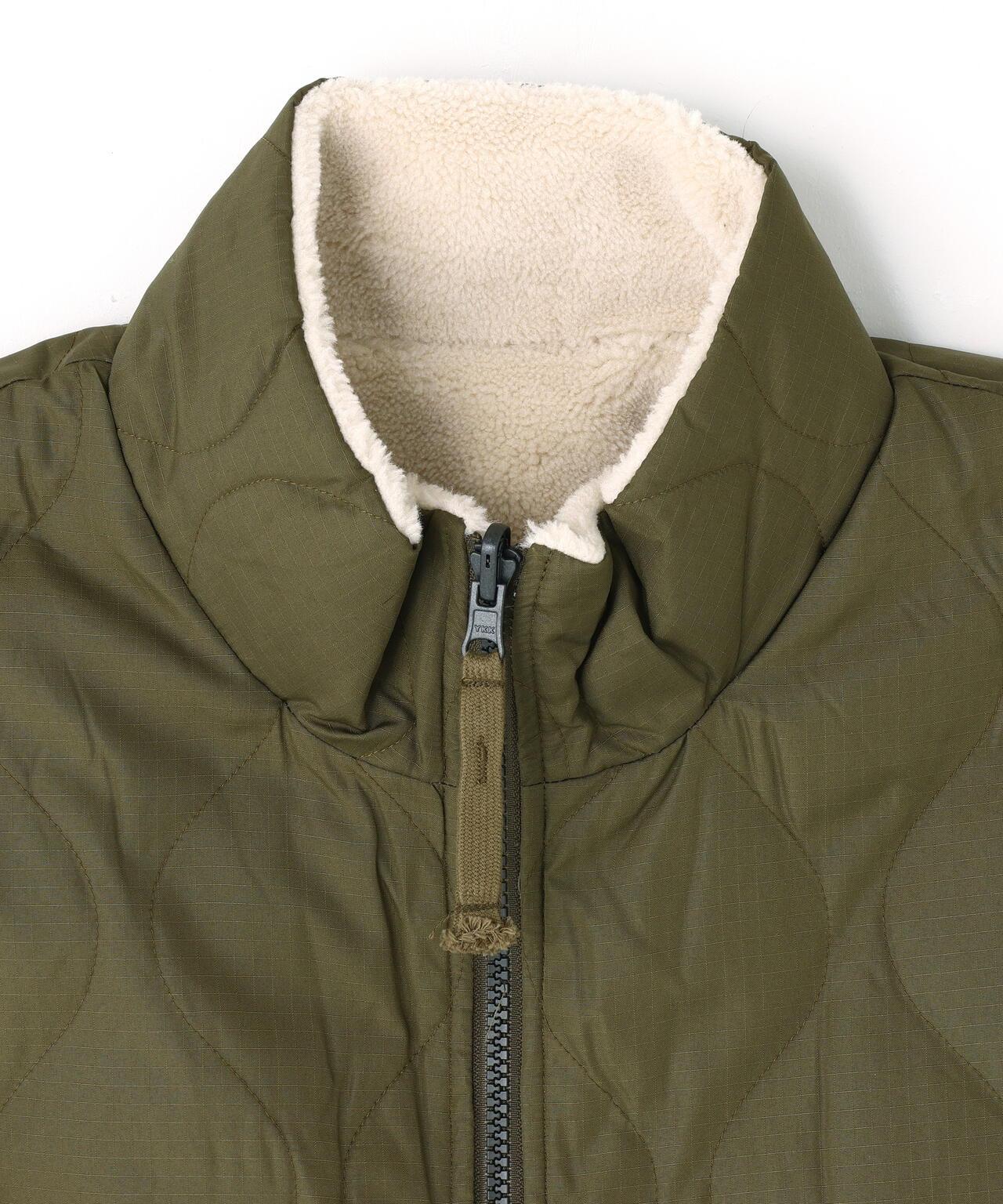 TAION [UNISEX] 軍用可翻轉高領羽絨馬甲(TAION-R002BML-1)軍用羽絨和蟒蛇絨馬甲,具有出色的保暖性,可翻轉規格,帶來兩種不同的外觀。正面採用經久耐用的防撕裂面料,800FP羽絨保暖性極佳,絲瓜絡絎縫羽絨拼接,盡顯軍裝風範。反面則採用了蓬鬆的蟒蛇頭以確保保暖性。兩側的開衩增加了活動範圍,支持輕鬆活動,方便將手放入下口袋,享受疊穿的樂趣。保暖耐穿的羽絨服,盡顯軍旅風味。同系列(MILITARY L