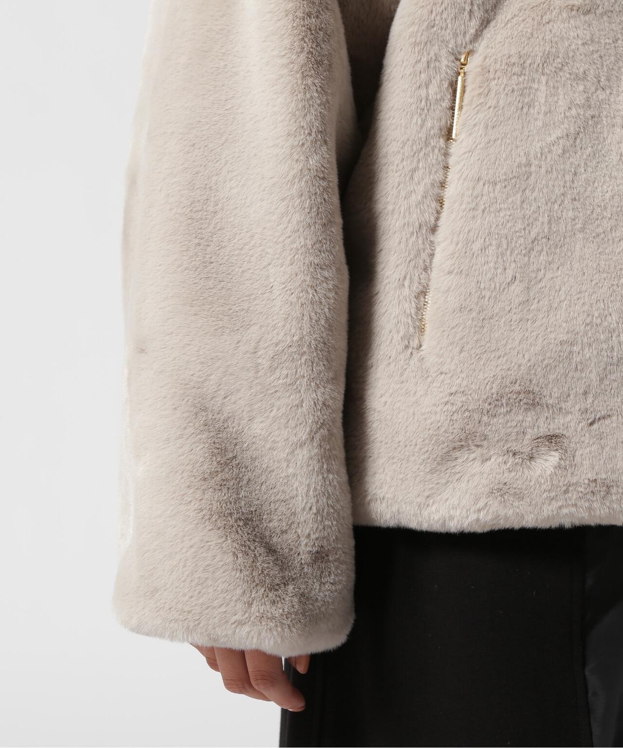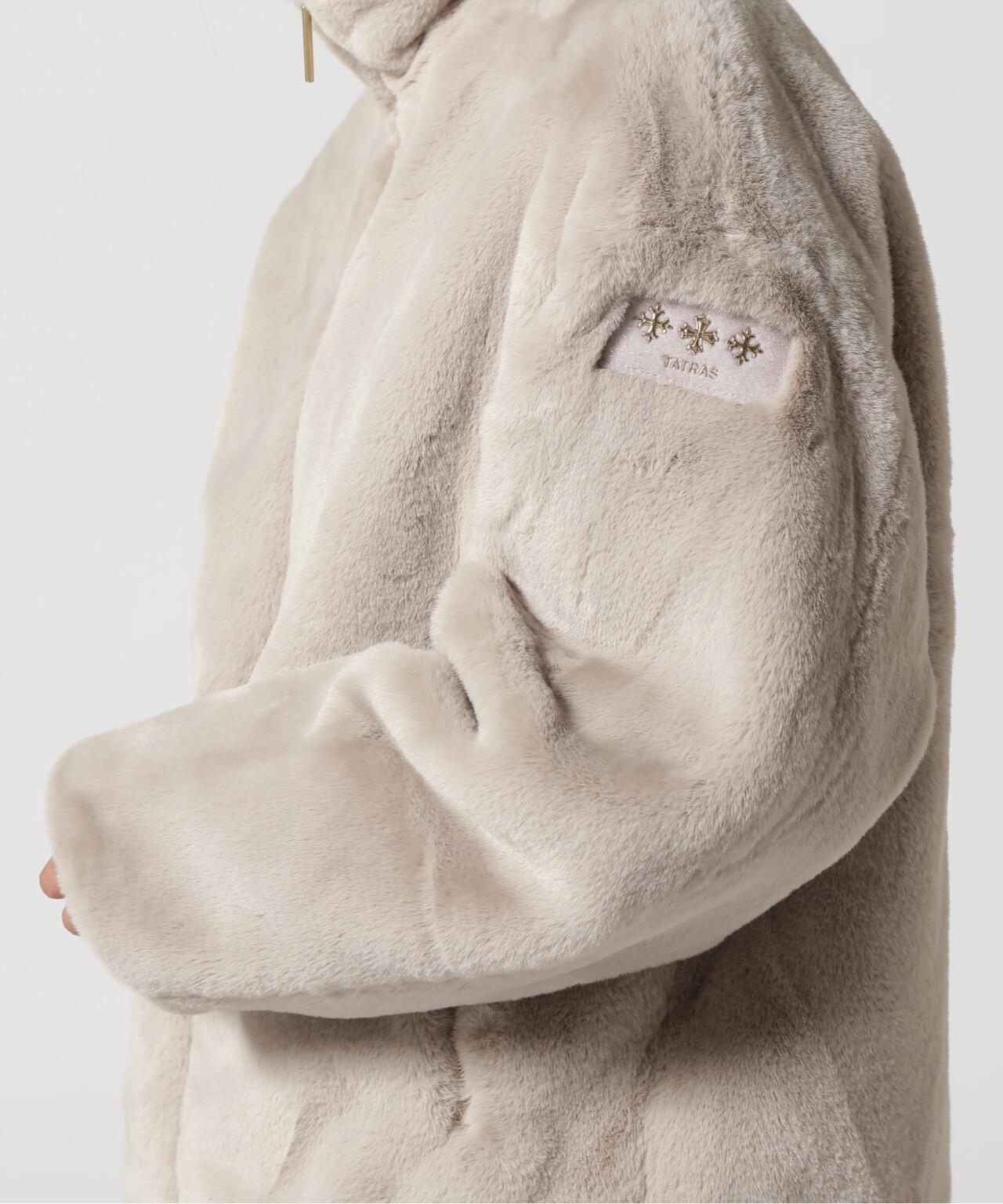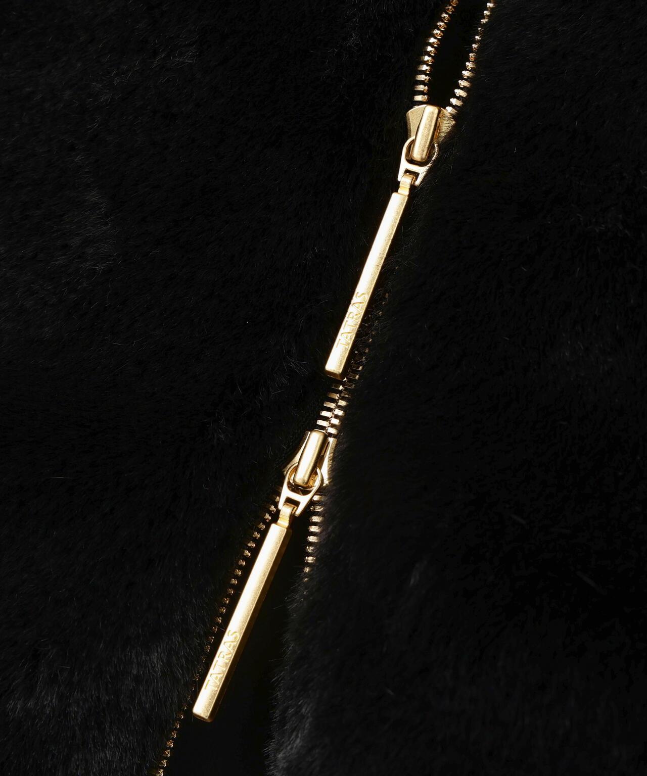 光澤環保毛皮面料罩衫。類似兔毛的面料由回收的聚酯紗線製成,色澤鮮豔,觸感細膩。尺寸略大,長度略長。厚實的袖子和下垂的肩部給人一種輕鬆的感覺。金色拉鍊和袖標。棍棒式拉鍊頭增添了優雅的奢華感。品牌理念是 "精緻舒適的生活"。品牌理念是 "精緻舒適的生活"。