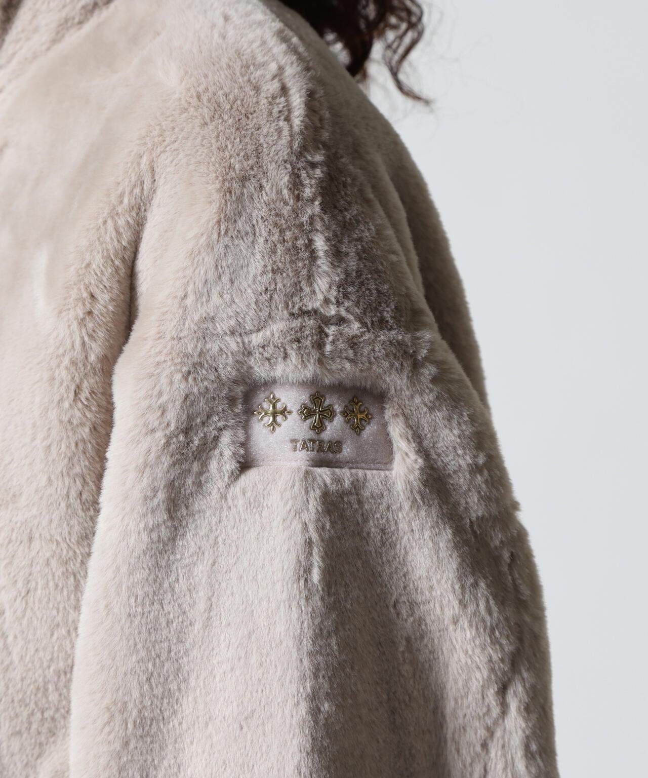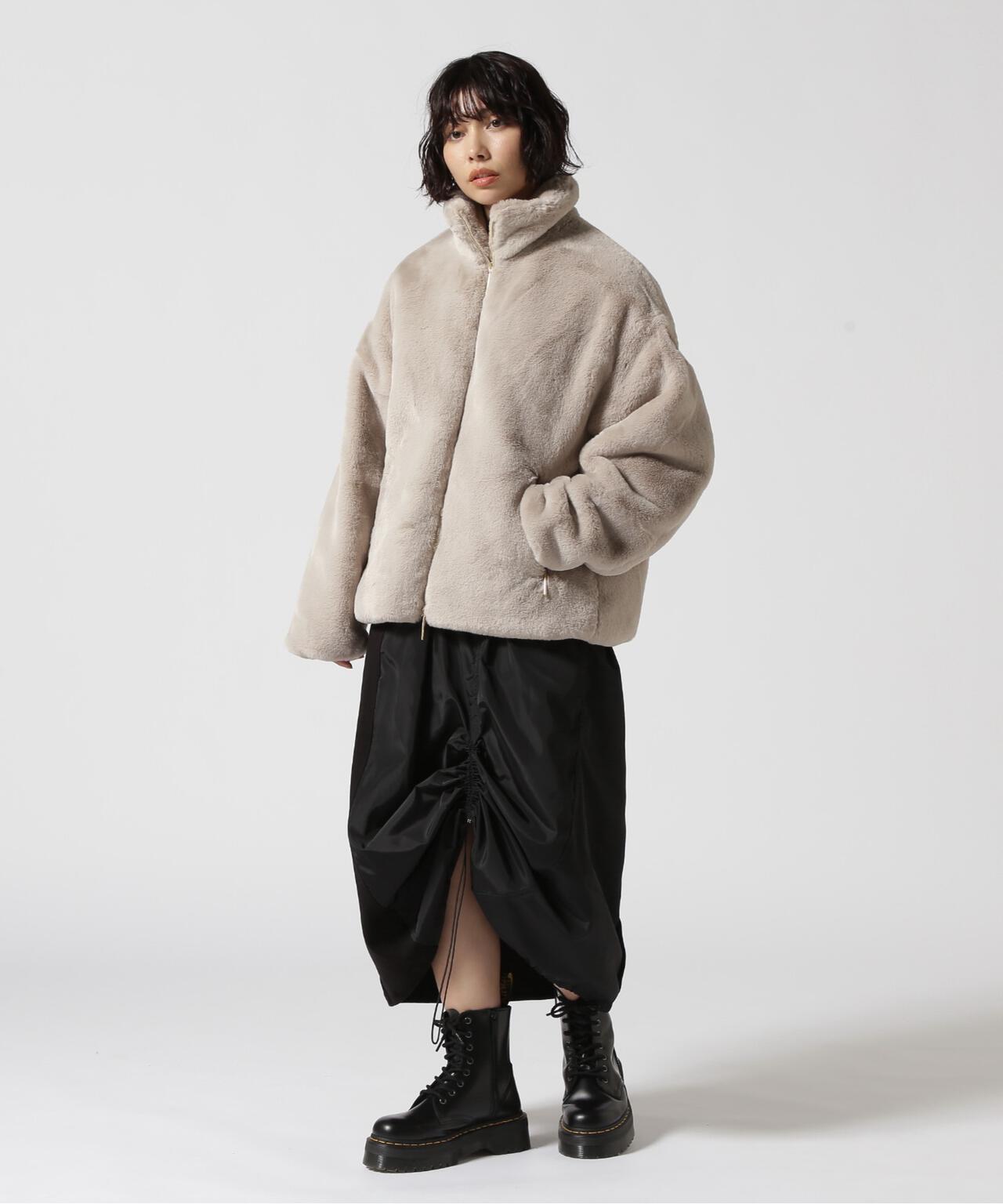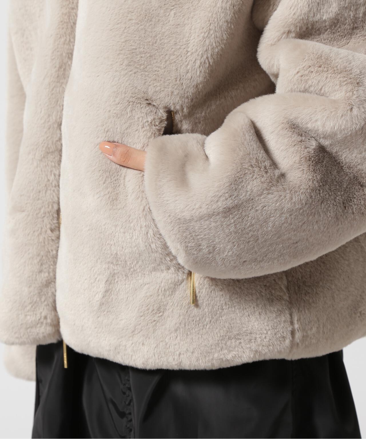光澤環保毛皮面料罩衫。類似兔毛的面料由回收的聚酯紗線製成,色澤鮮豔,觸感細膩。尺寸略大,長度略長。厚實的袖子和下垂的肩部給人一種輕鬆的感覺。金色拉鍊和袖標。棍棒式拉鍊頭增添了優雅的奢華感。品牌理念是 "精緻舒適的生活"。品牌理念是 "精緻舒適的生活"。