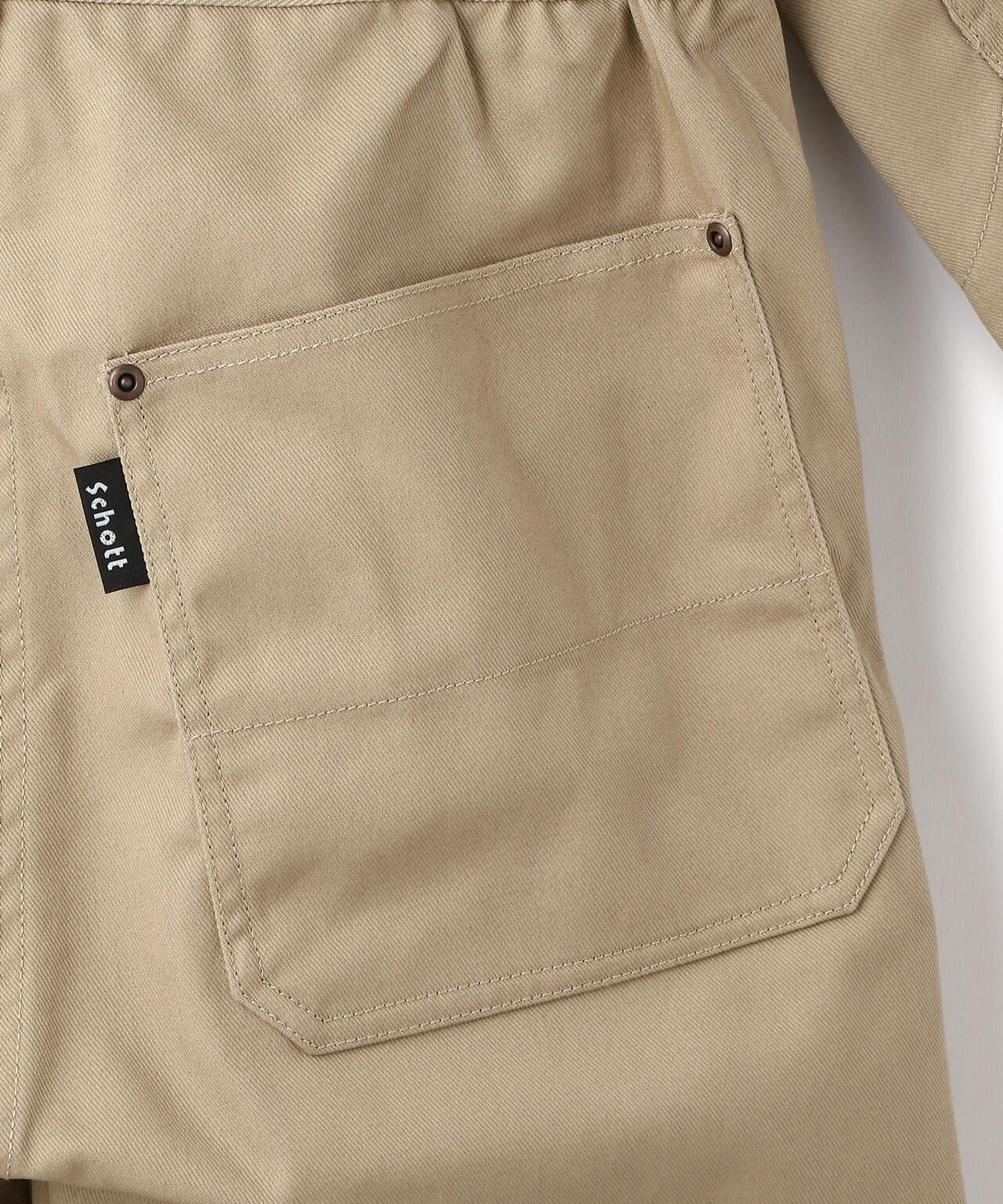 本季,TC 的 Katsuragi 採用粗斜紋織法,經久耐用,厚實結實。自古以來,Katsuragi 就被廣泛應用於工裝領域,因為雨露很容易從它上面流下。之所以使用這種材料,是因為它是一種更顯眼的材料,因此更適合休閒裝。典型的工裝連體服幾乎是👍以品牌的形式出現。它是一款適合用單獨出售的徽章進行定製的單品,也是一款適合將其纏繞在腰間並進行整理的單品,穿著起來出奇的方便。肖特的歷史可以說是騎手夾克的代名詞,1913 年由歐文-肖特(Irving Schott)和傑克-肖特(Jack Schott)兄弟在紐約創立。 👍初,它只是一家生產雨衣的工廠,但在 1928 年,它成為了世界上👍的雨衣生產商。