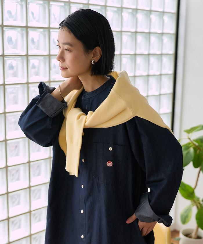 Tencel denim 無領 襯衫連衣裙