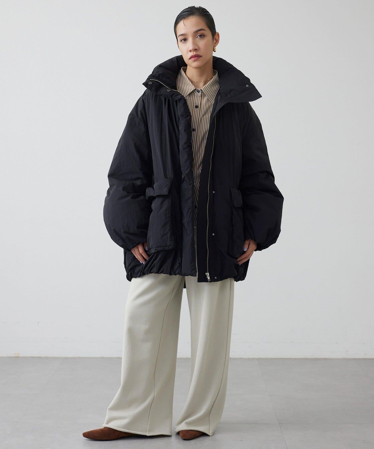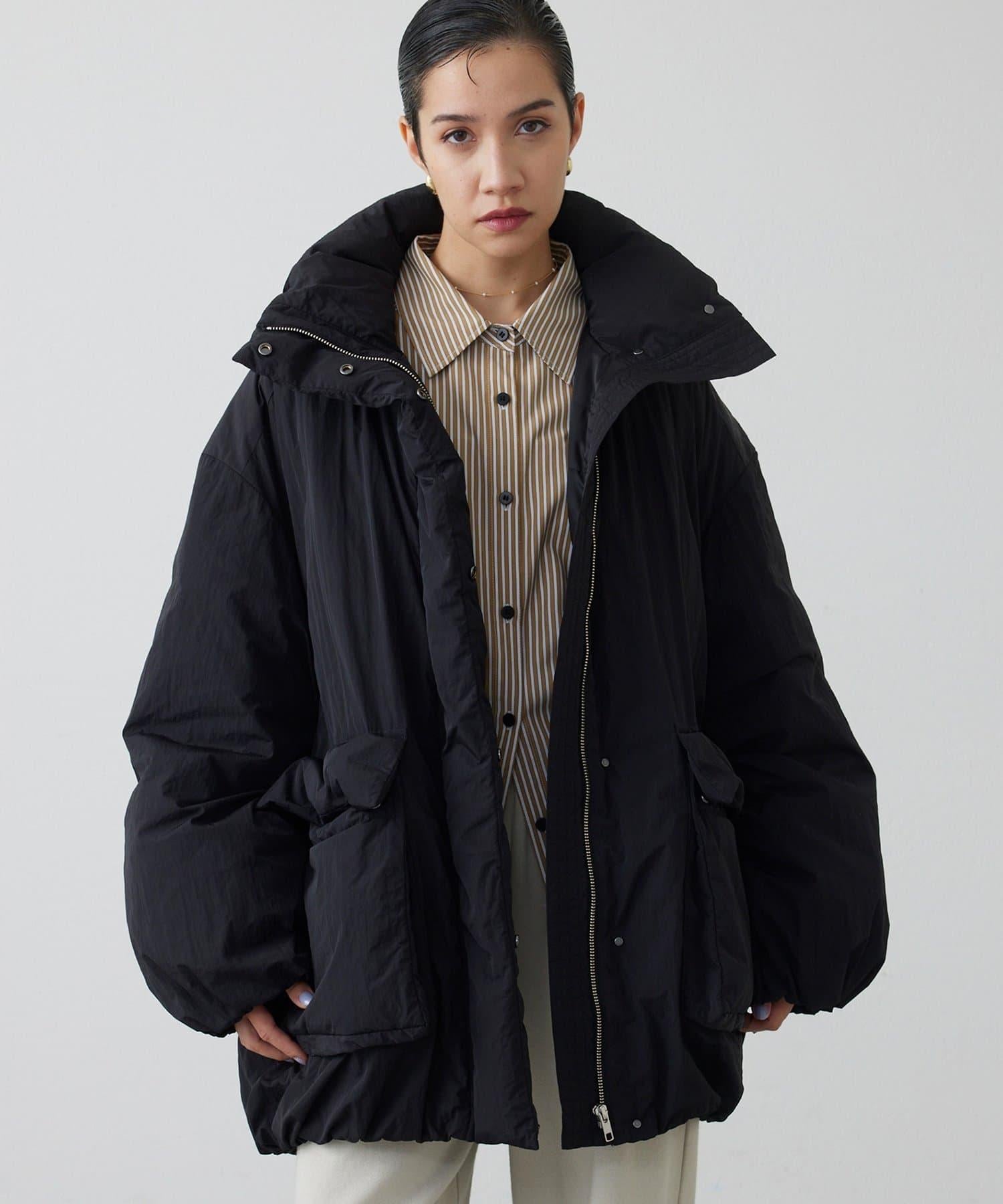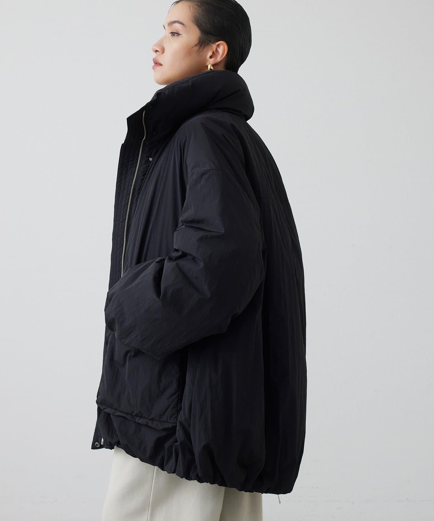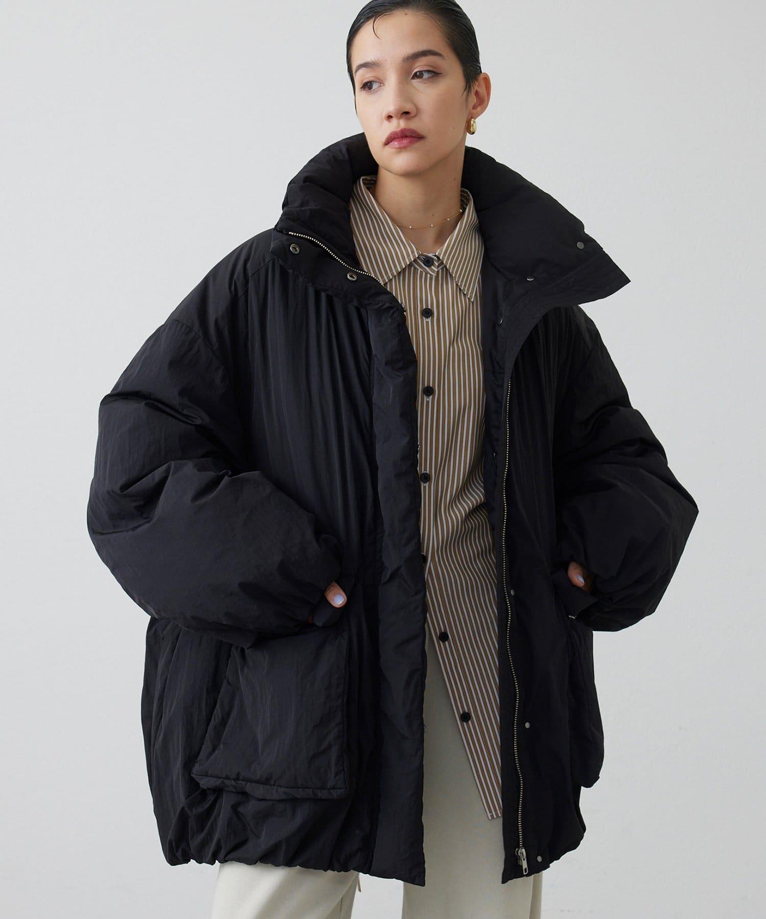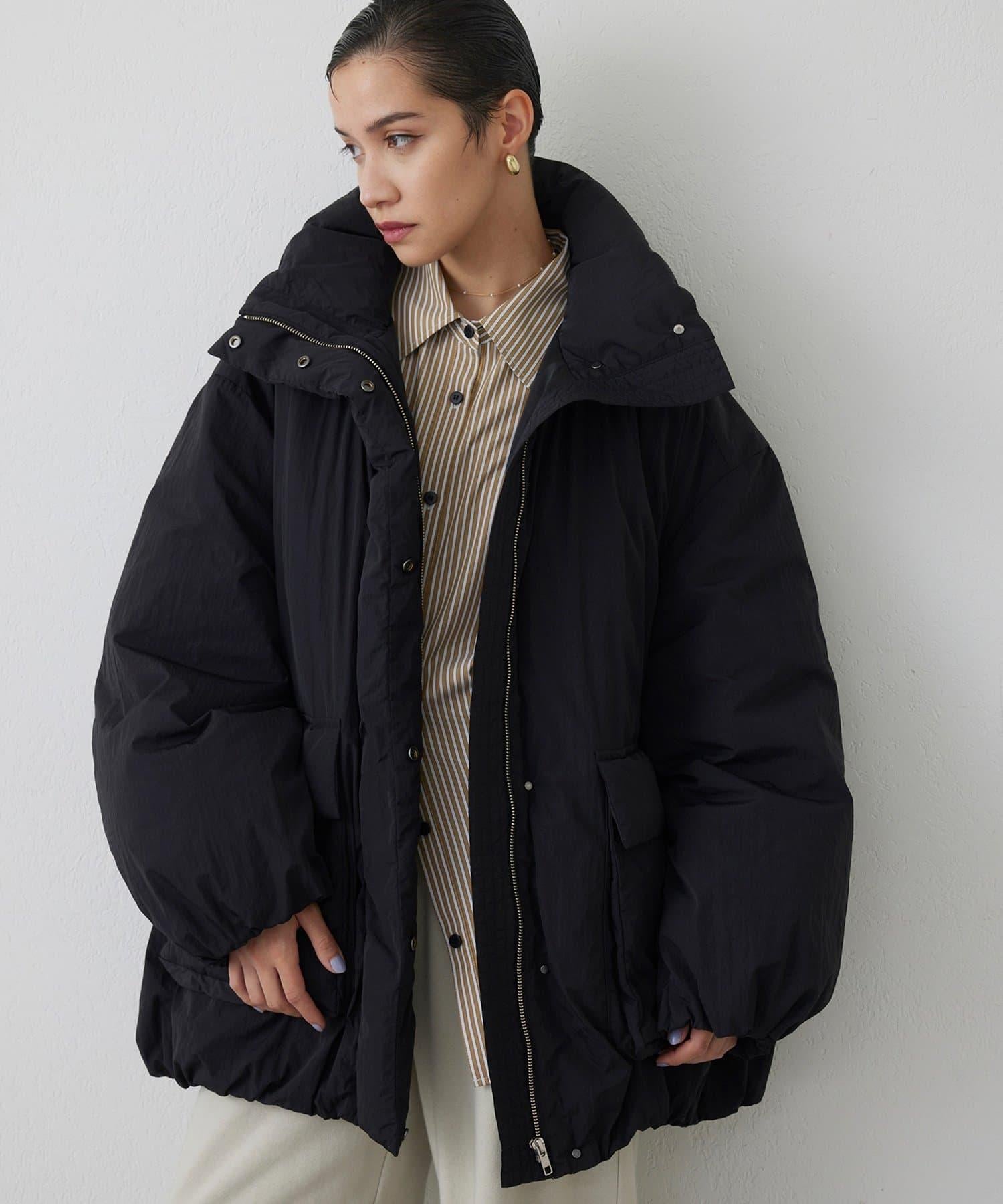 下垂的肩部和簡潔的立領營造出一種立體平衡感,防止出現蓬鬆感。