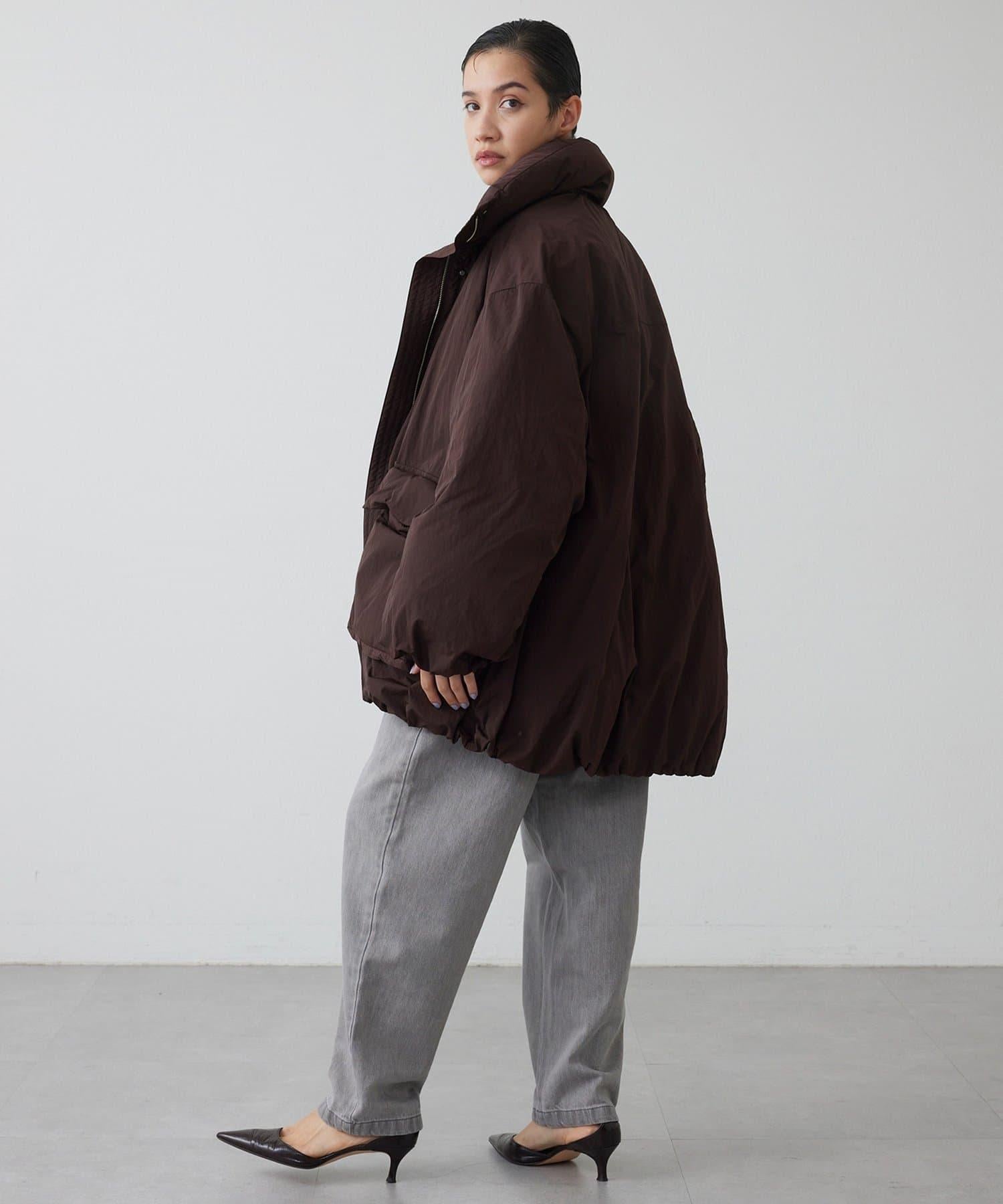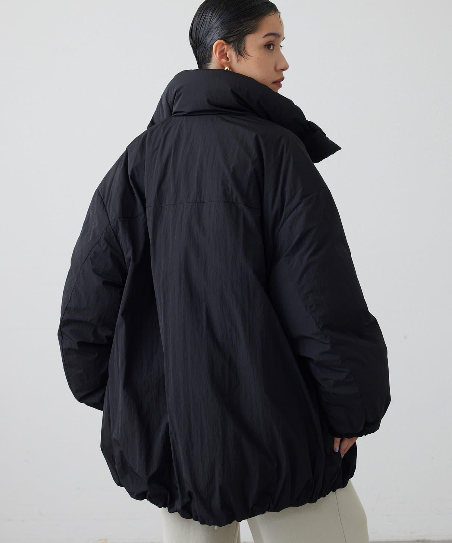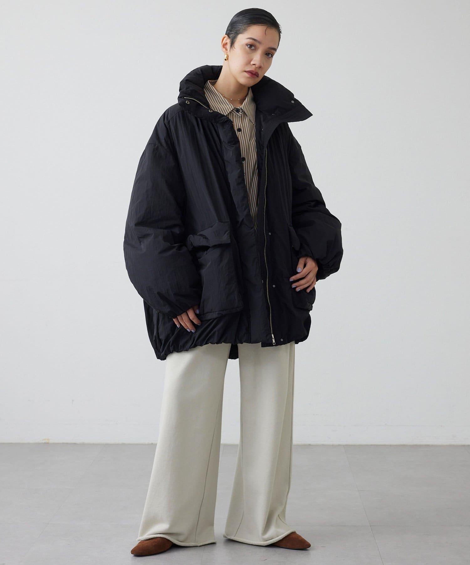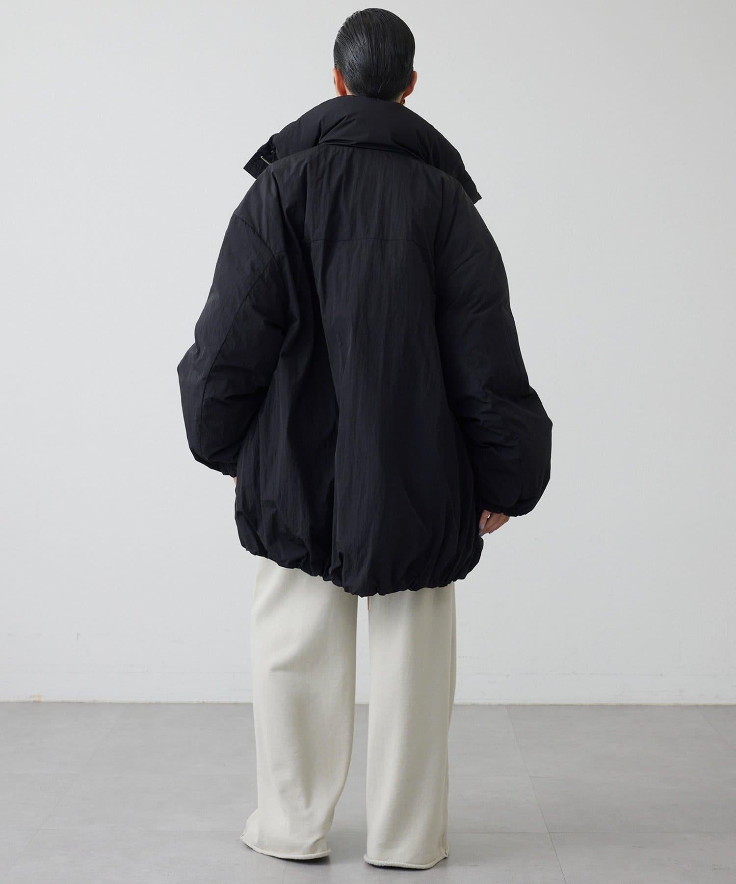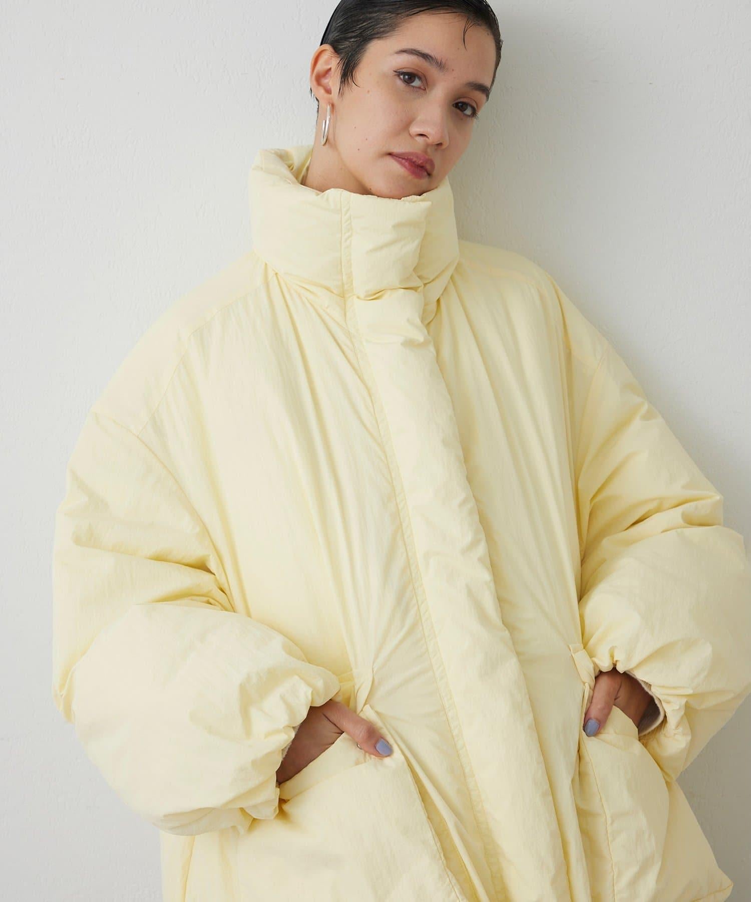 下垂的肩部和簡潔的立領營造出一種立體平衡感,防止出現蓬鬆感。