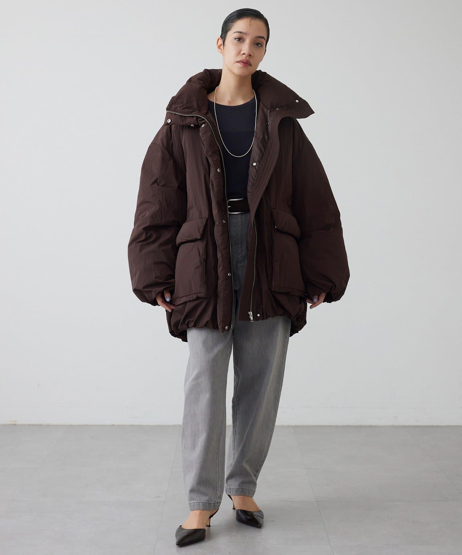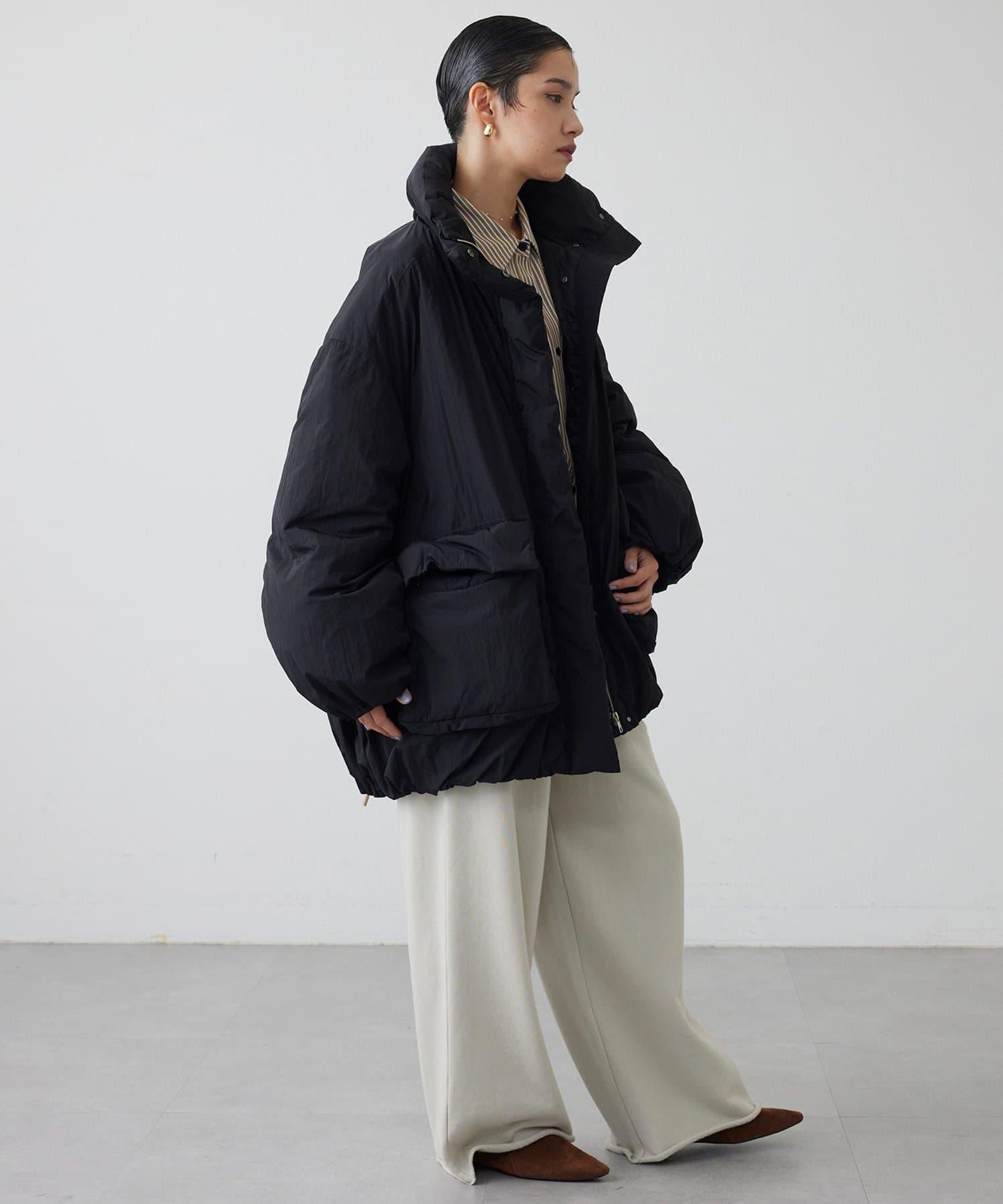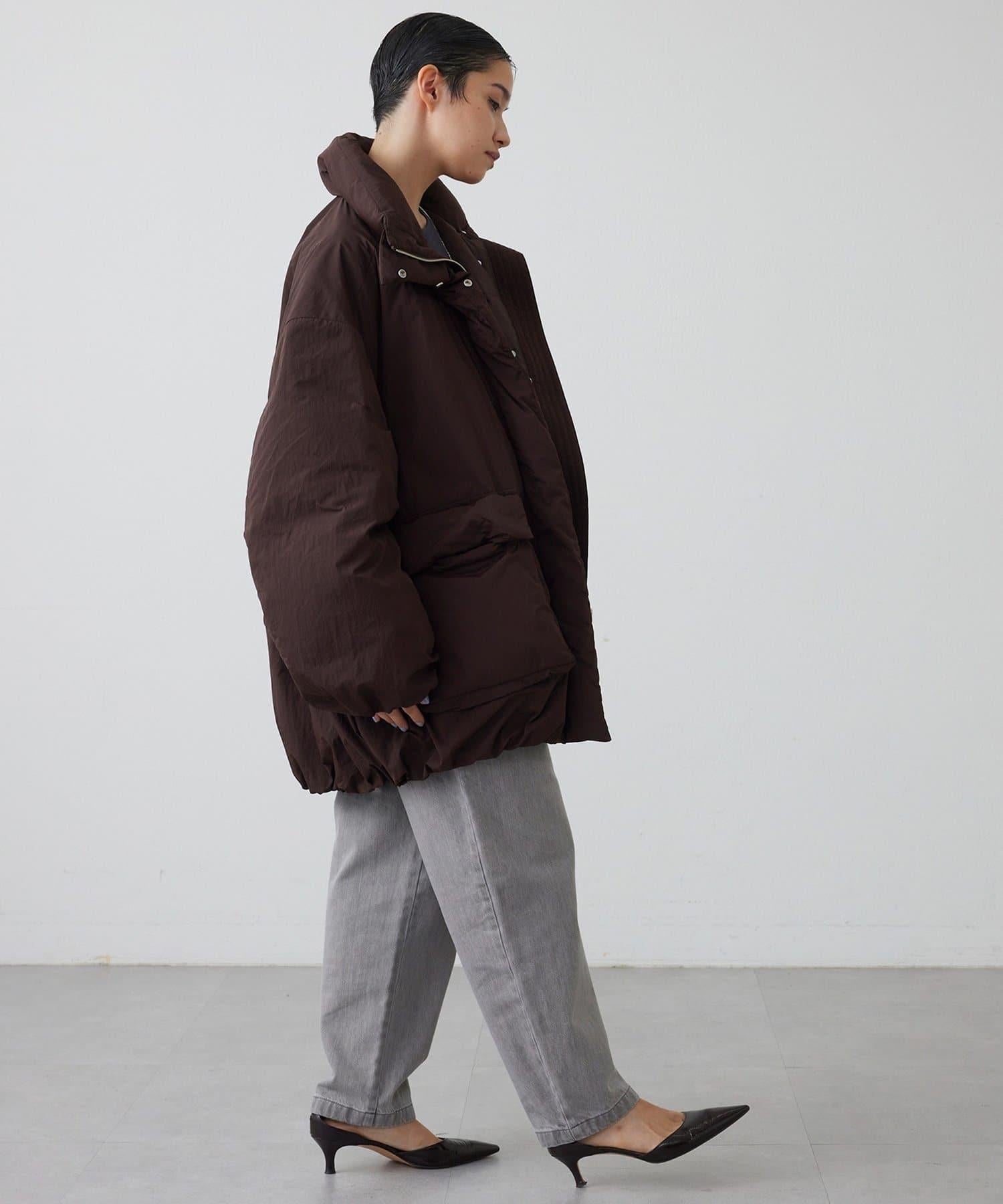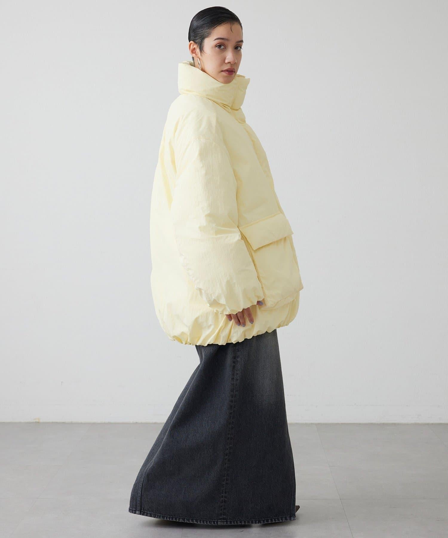 下垂的肩部和簡潔的立領營造出一種立體平衡感,防止出現蓬鬆感。