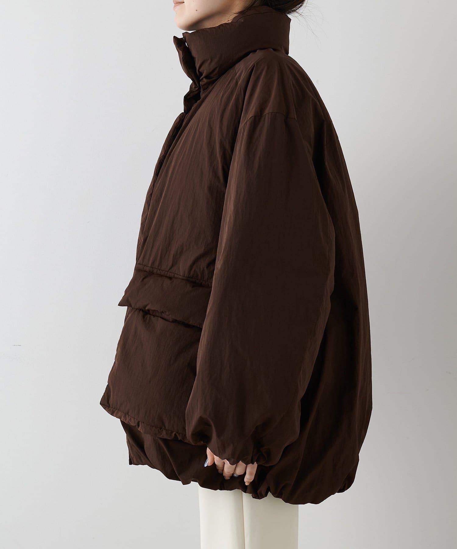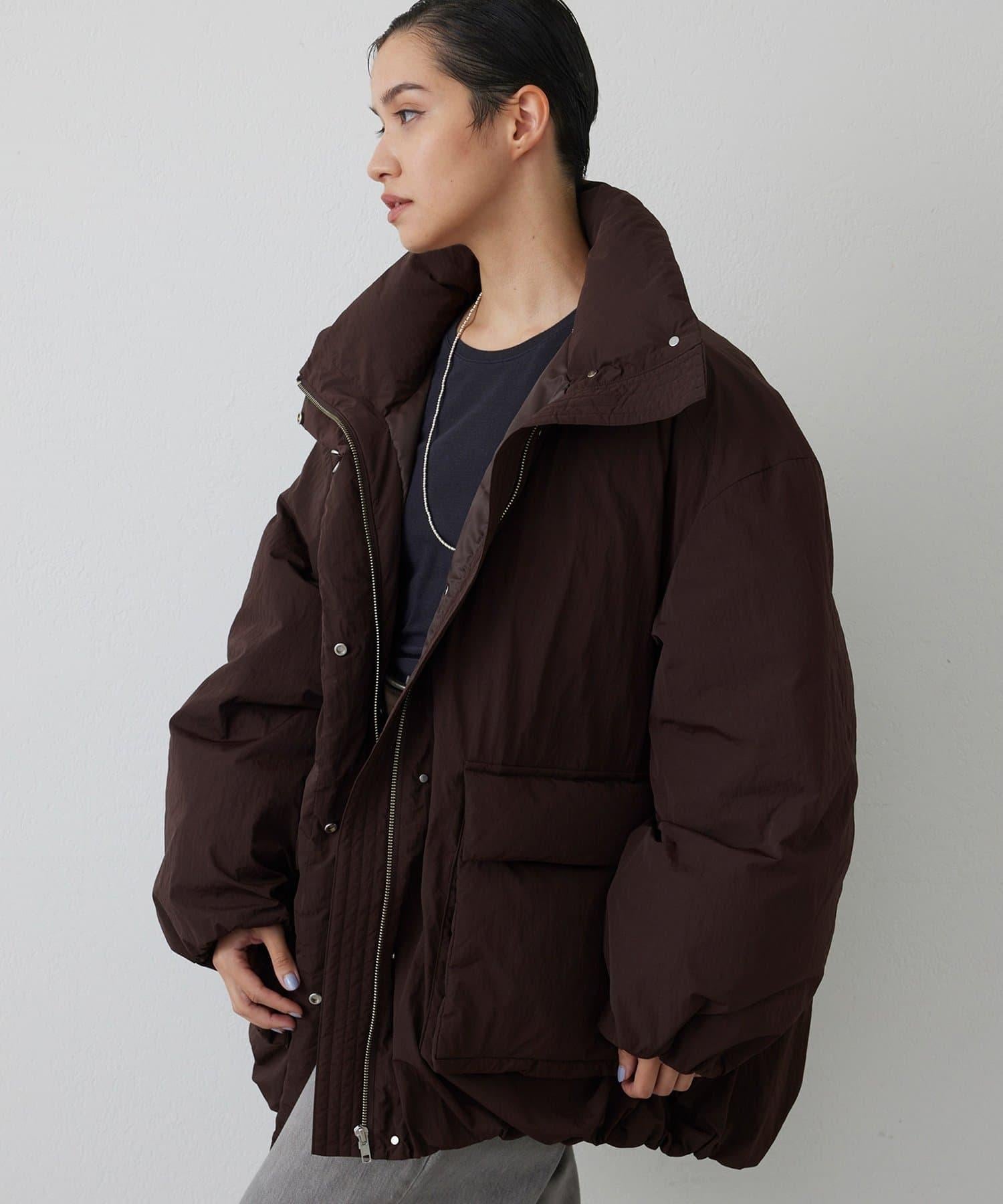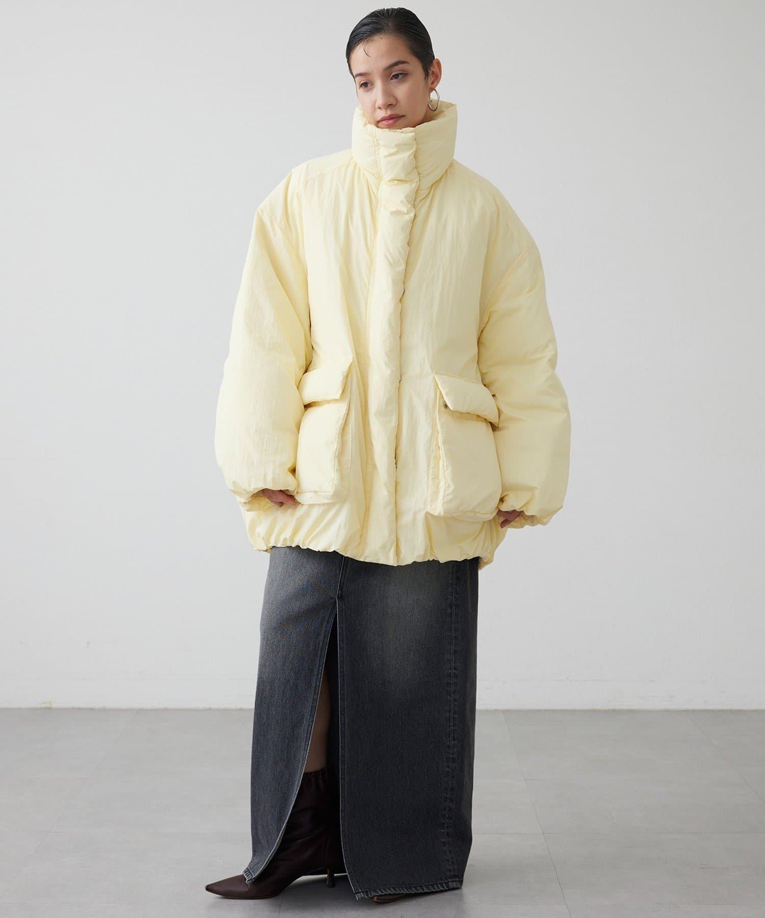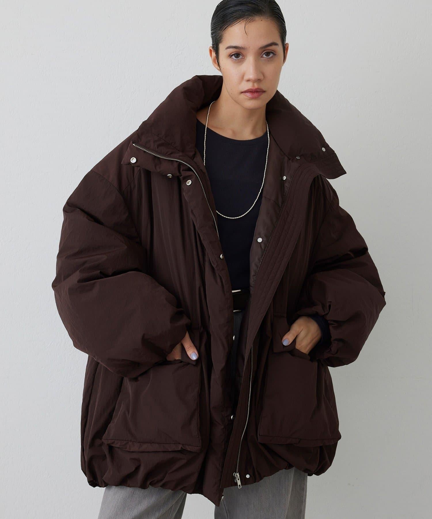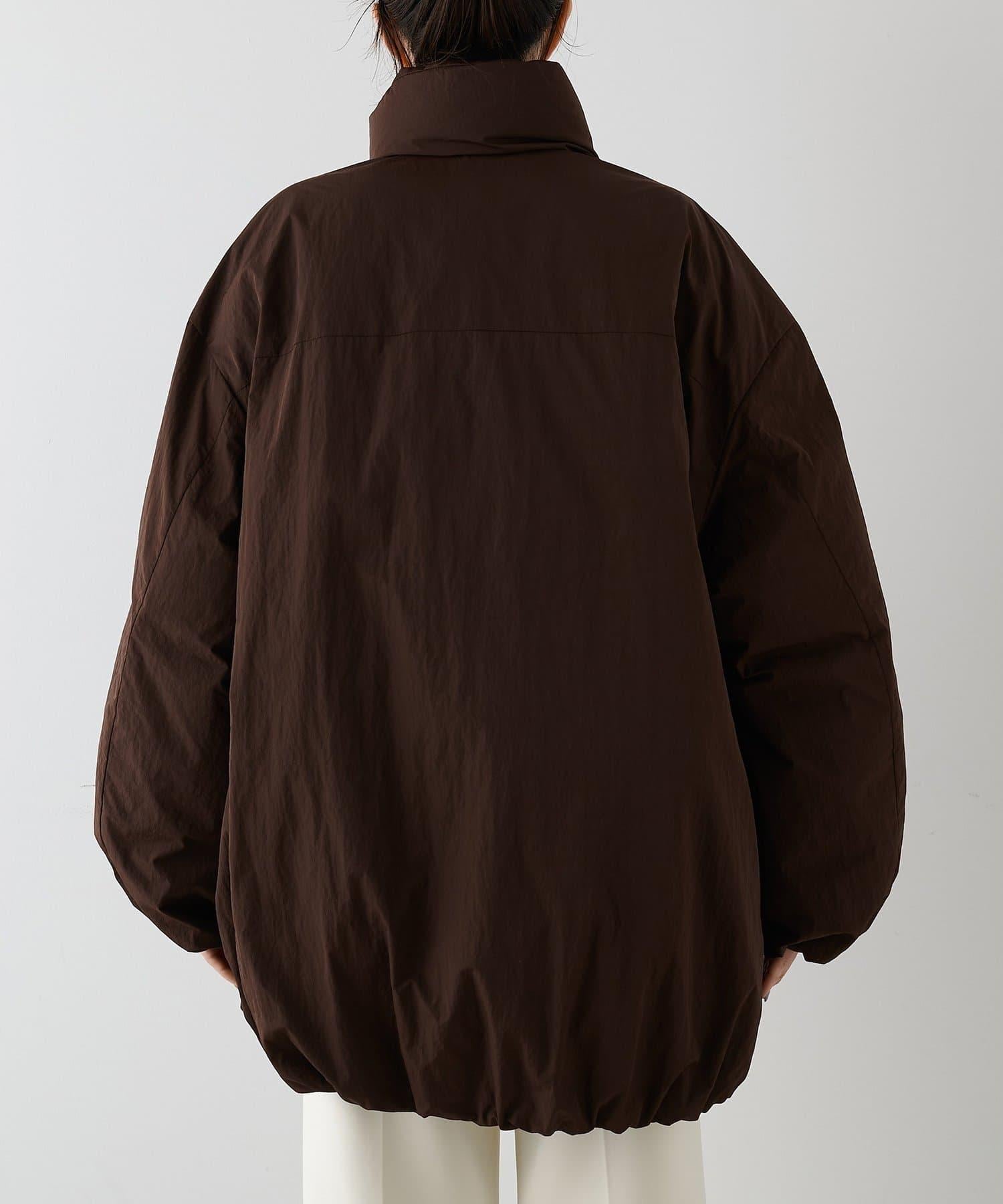 下垂的肩部和簡潔的立領營造出一種立體平衡感,防止出現蓬鬆感。
