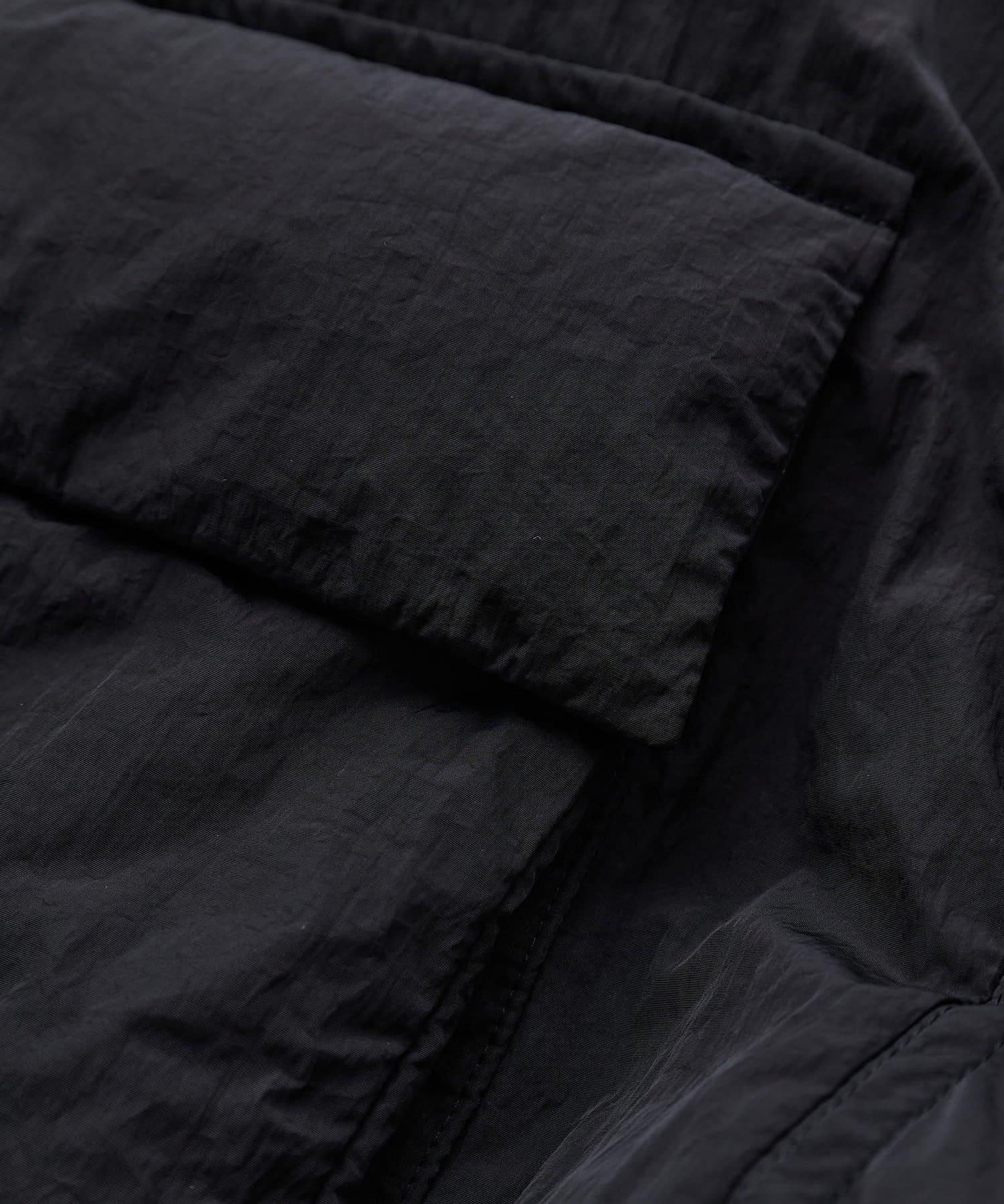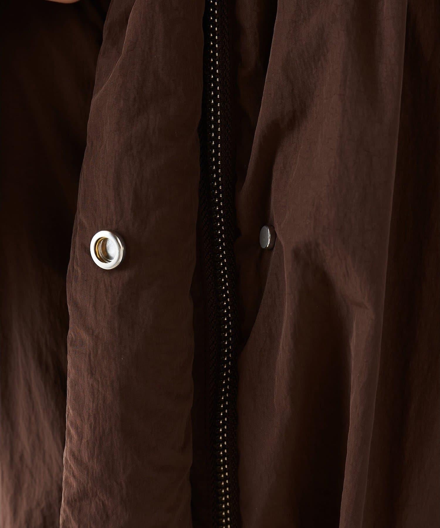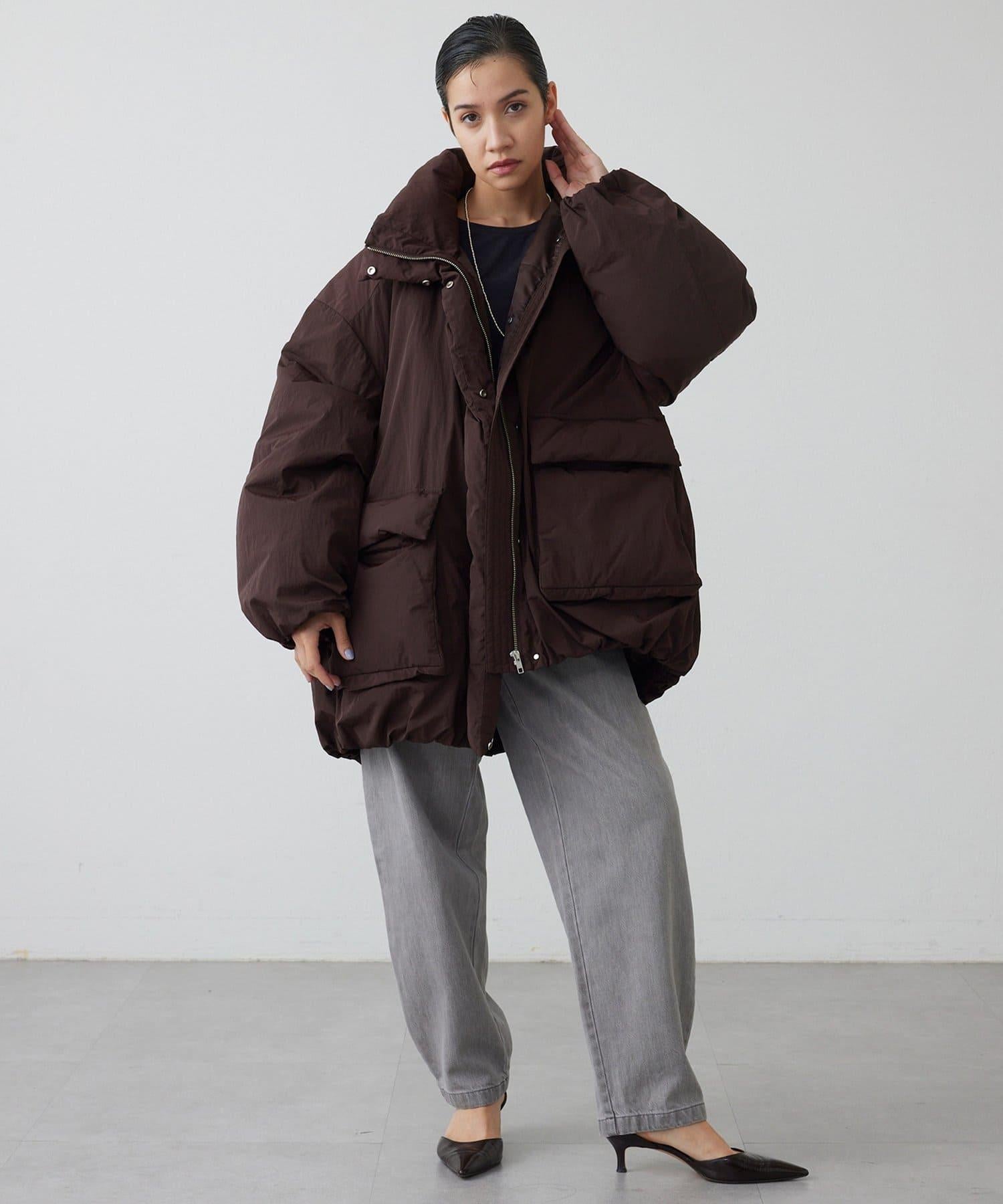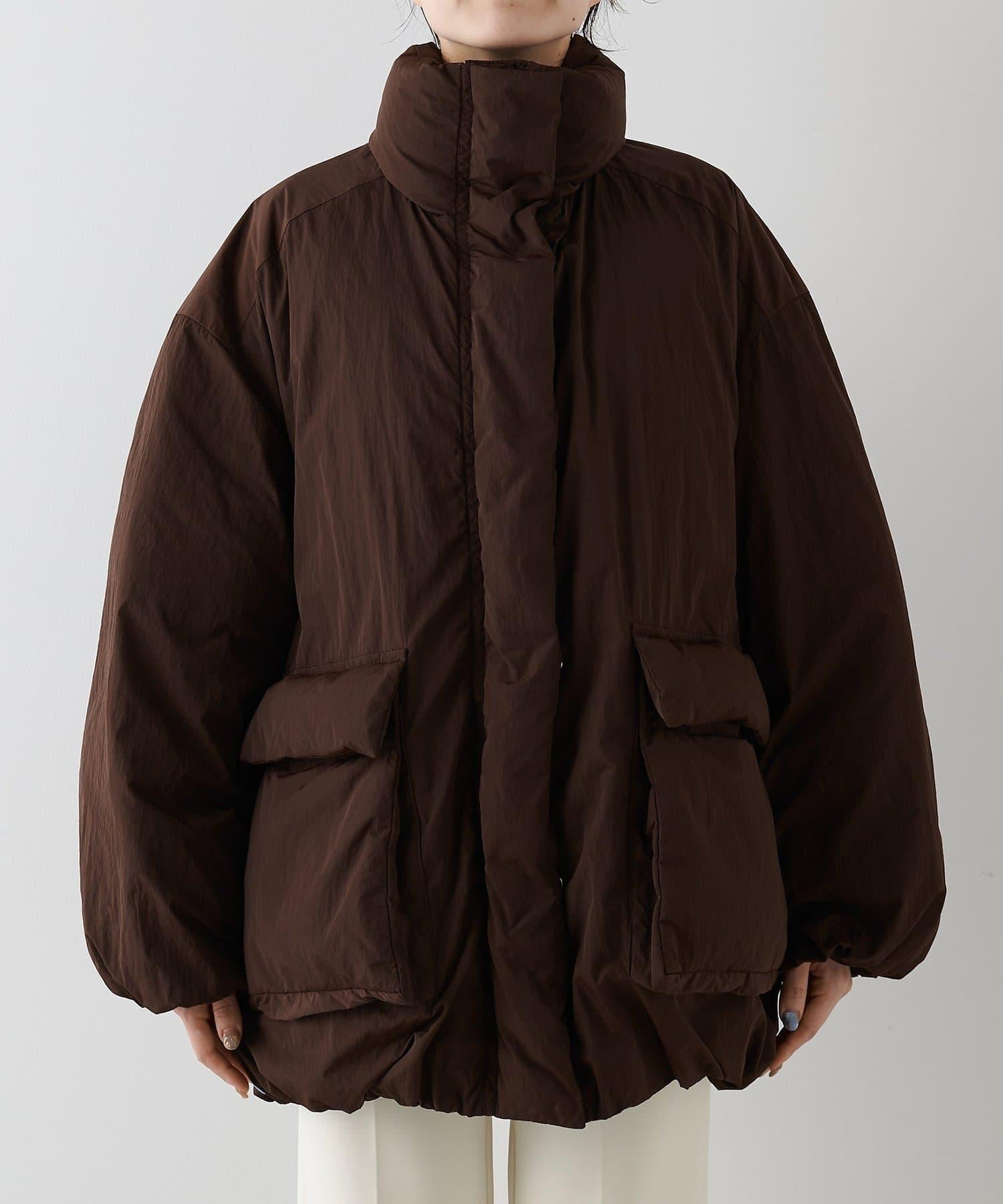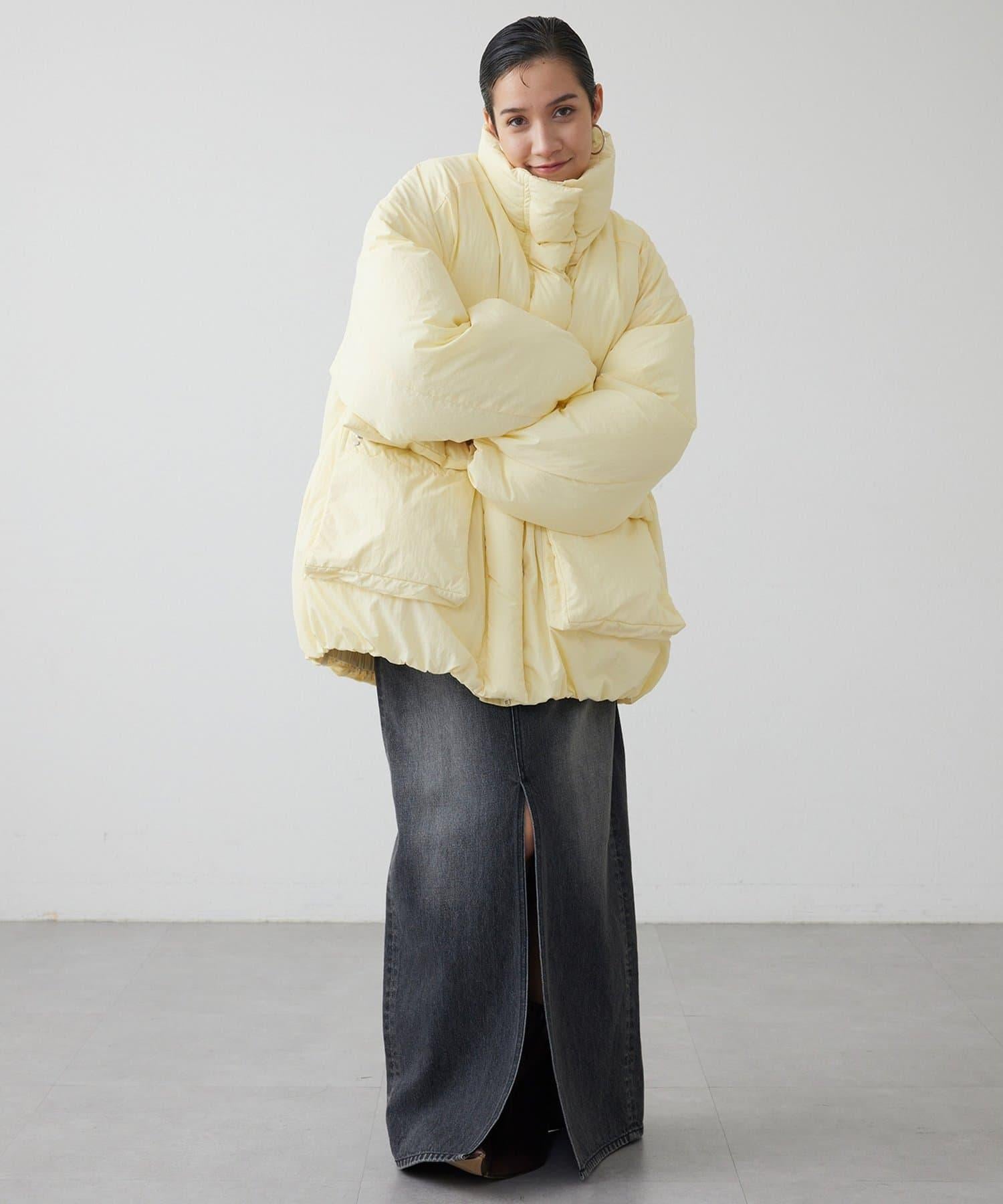 下垂的肩部和簡潔的立領營造出一種立體平衡感,防止出現蓬鬆感。