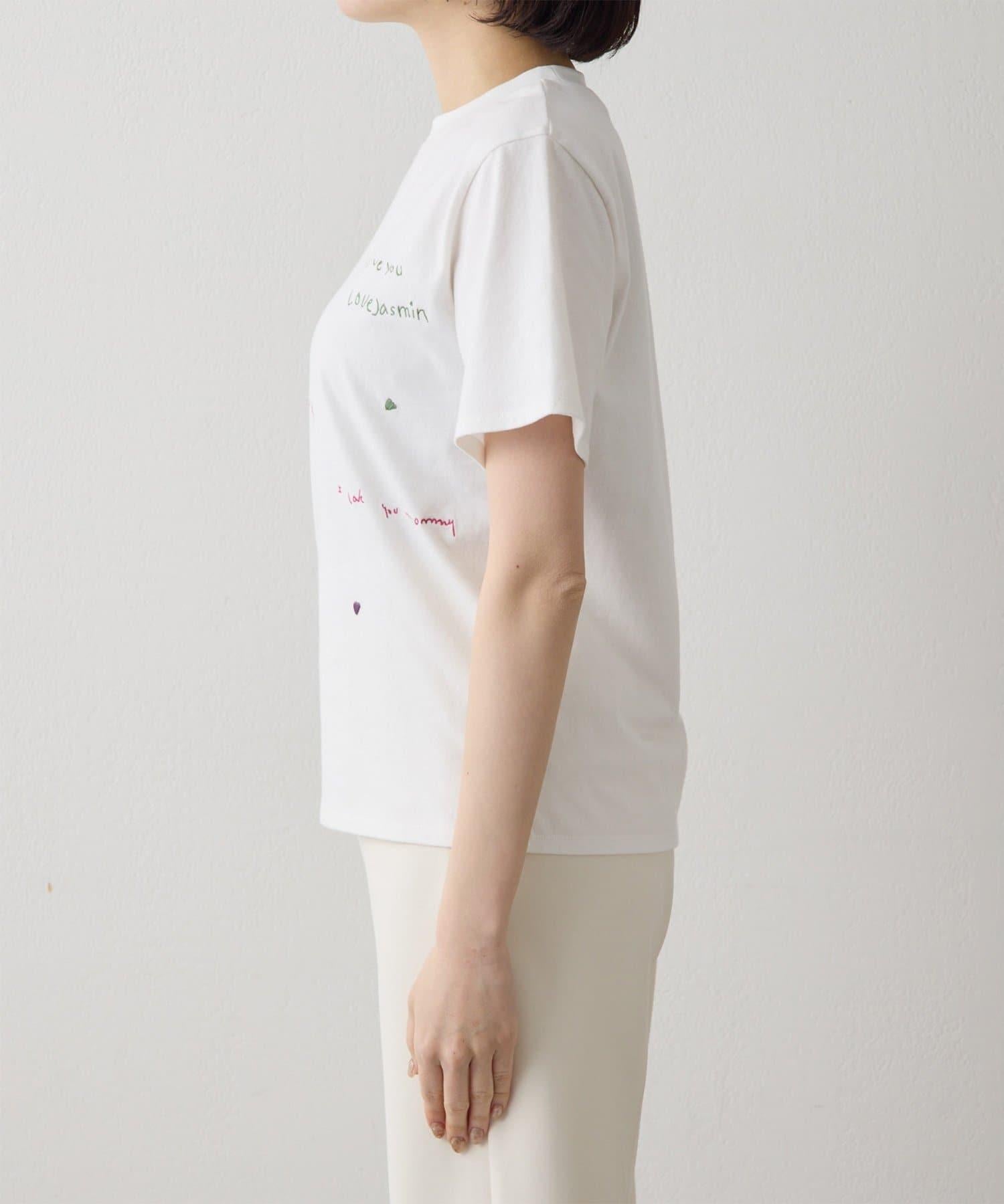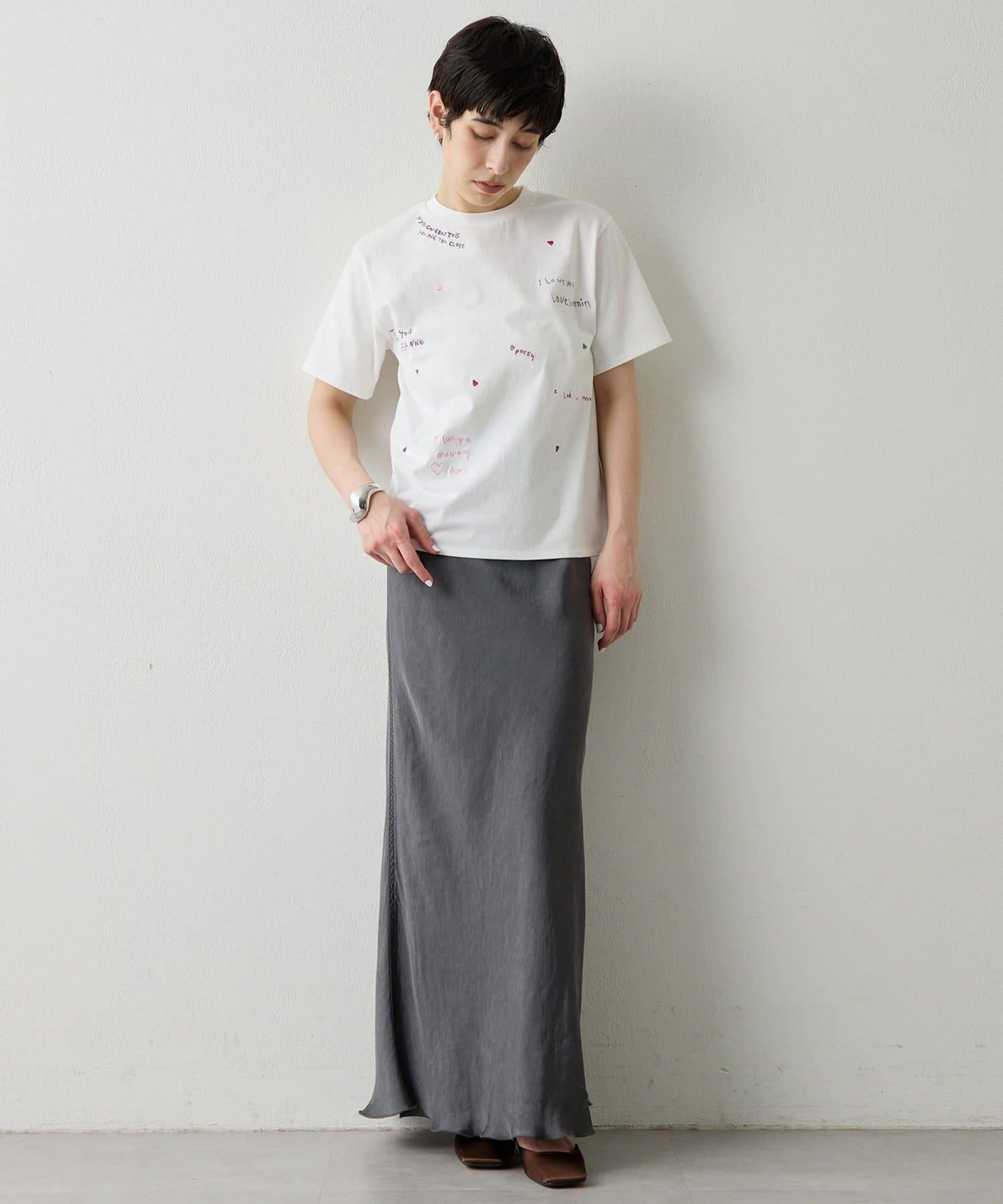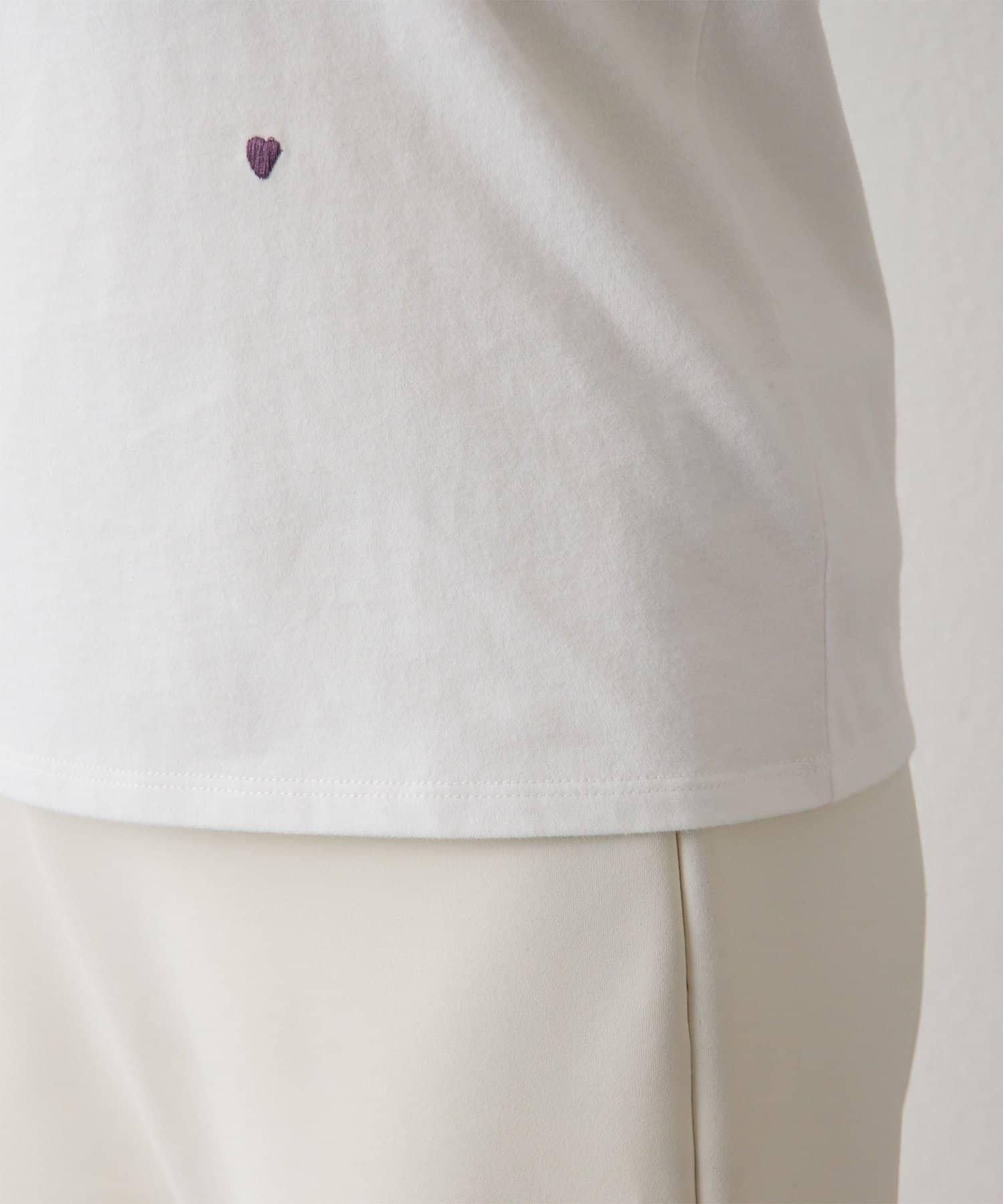 短袖 T 恤上繡有彩色信息和心形刺繡。