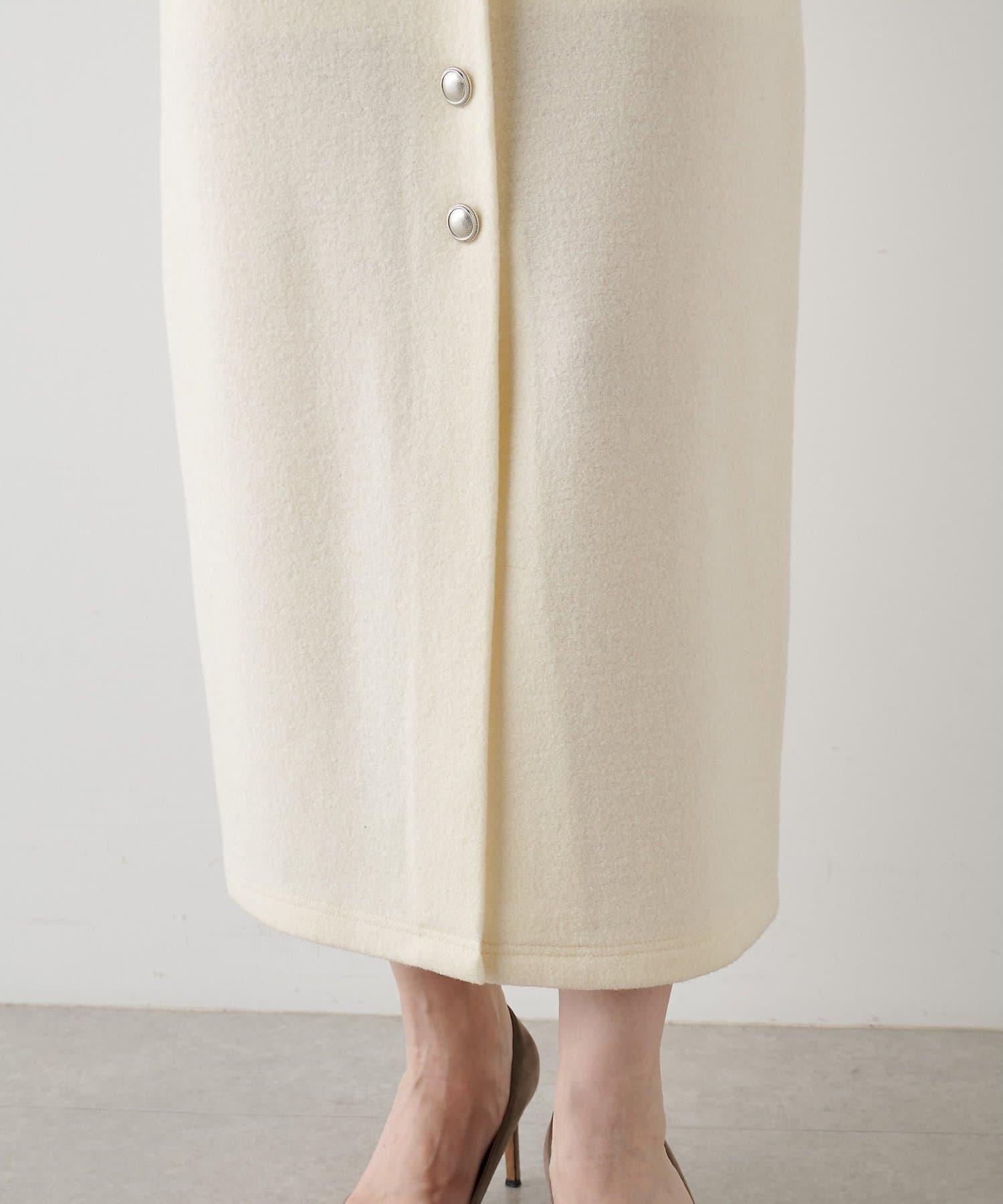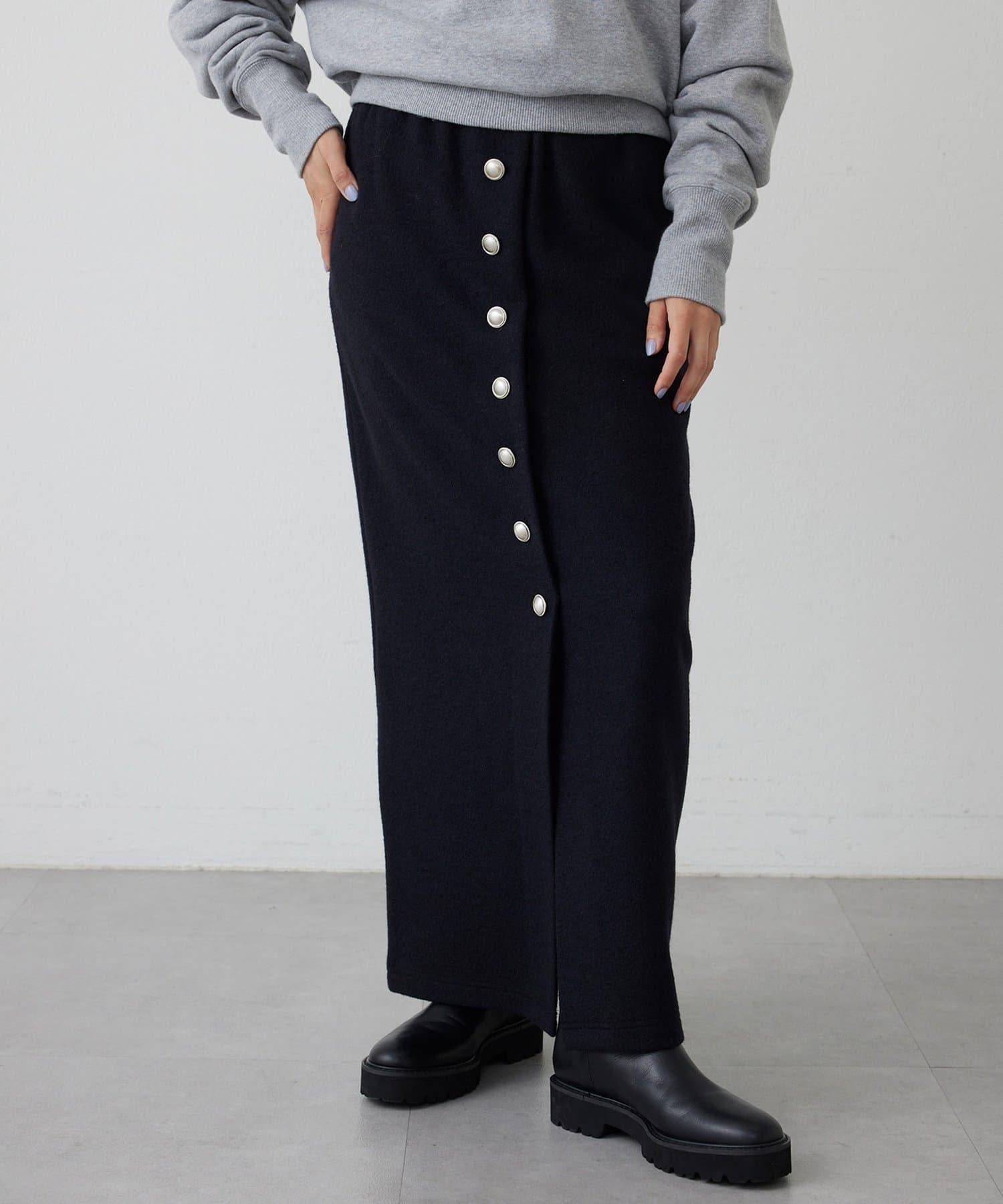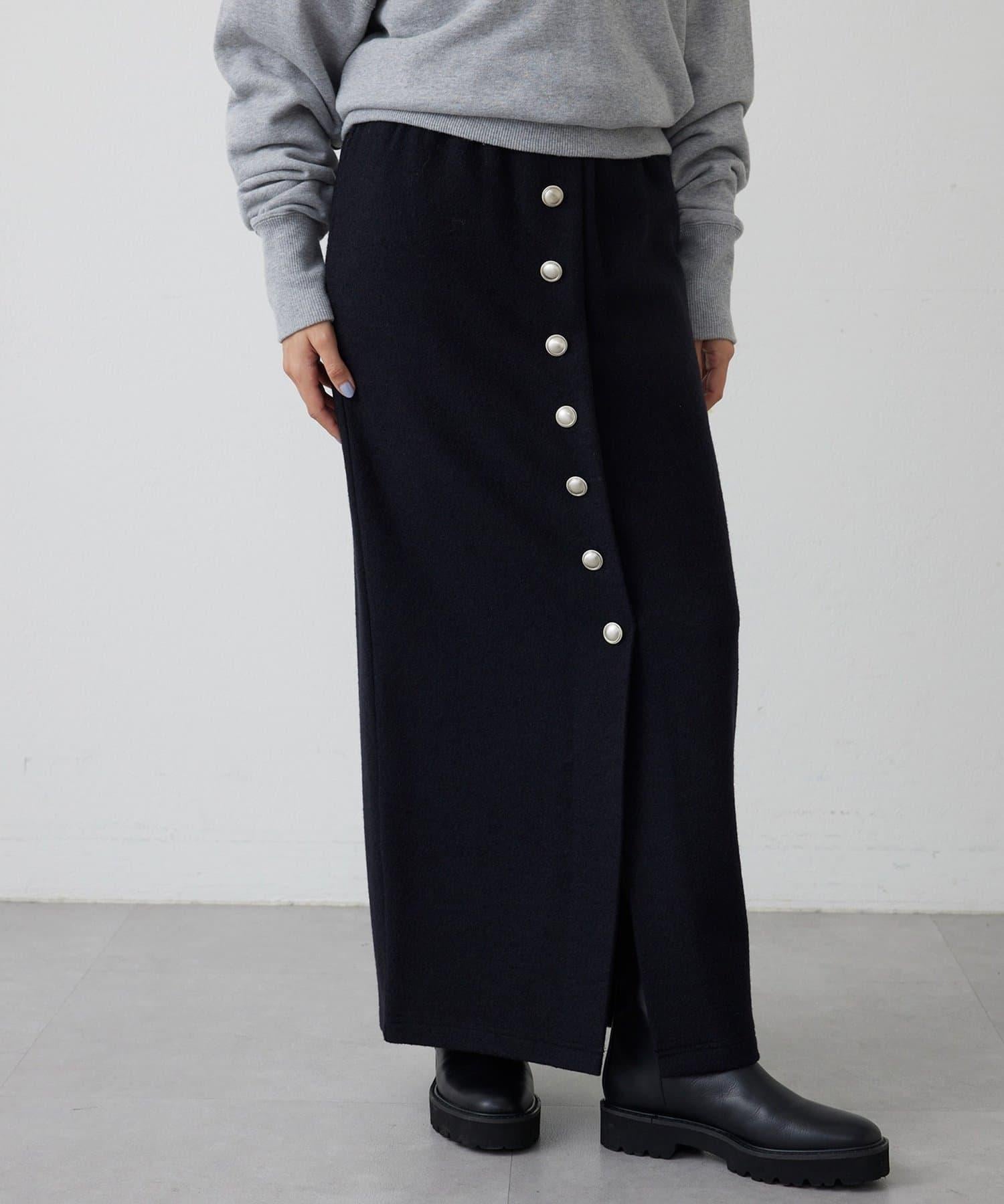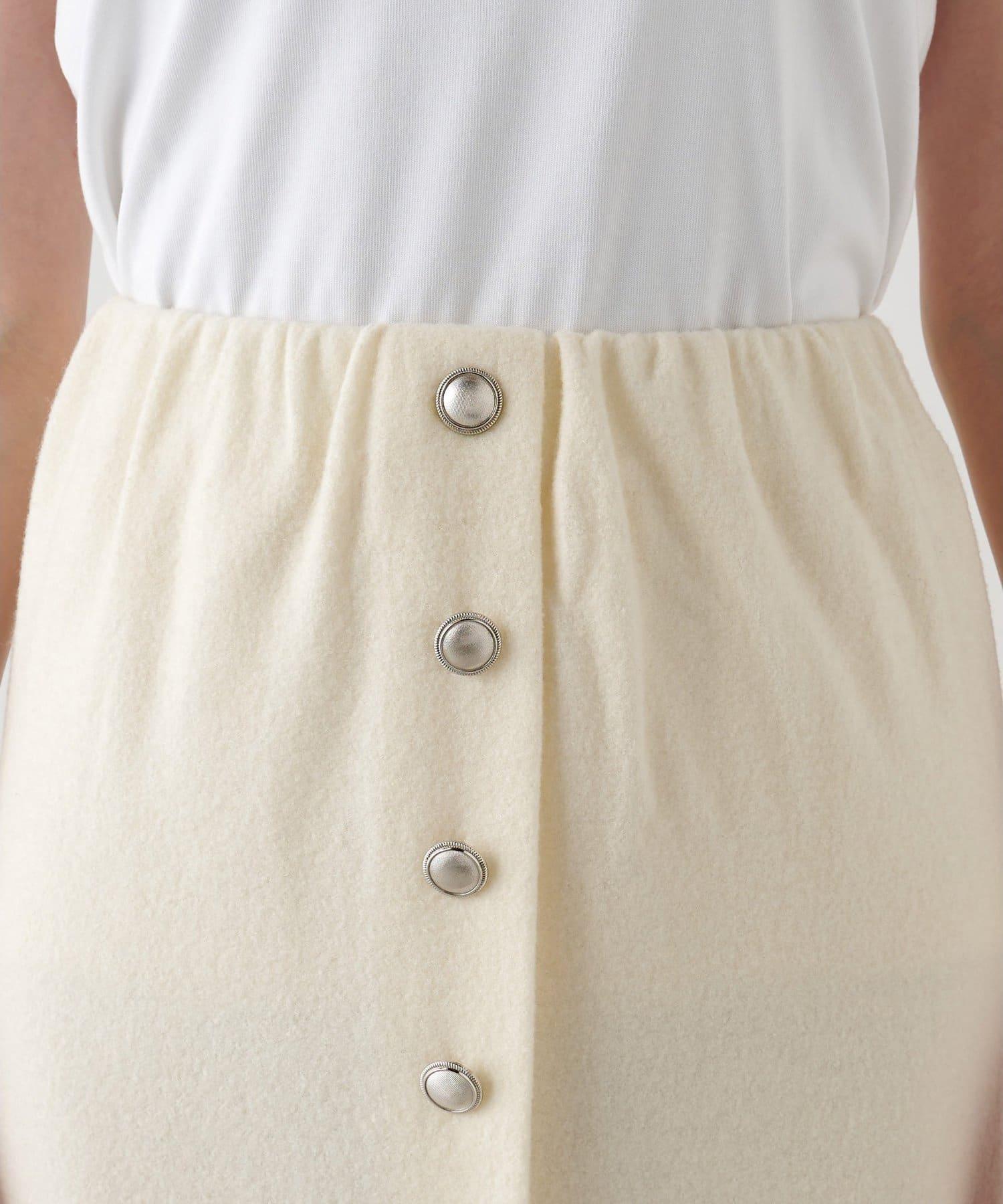 緊身裙,秋冬款式,配有醒目的金屬紐扣。
