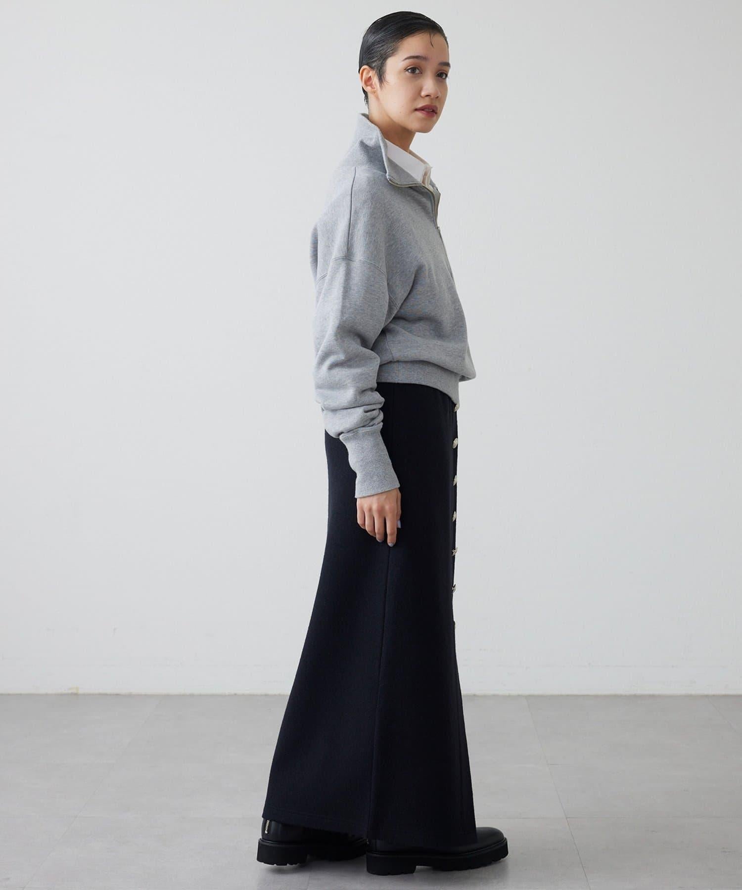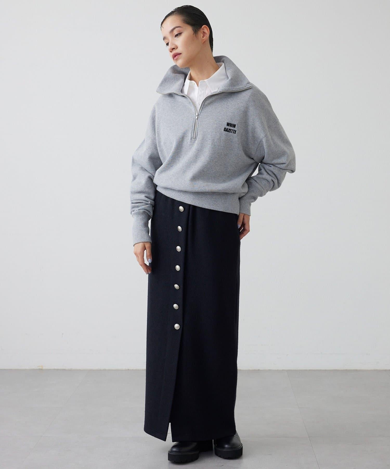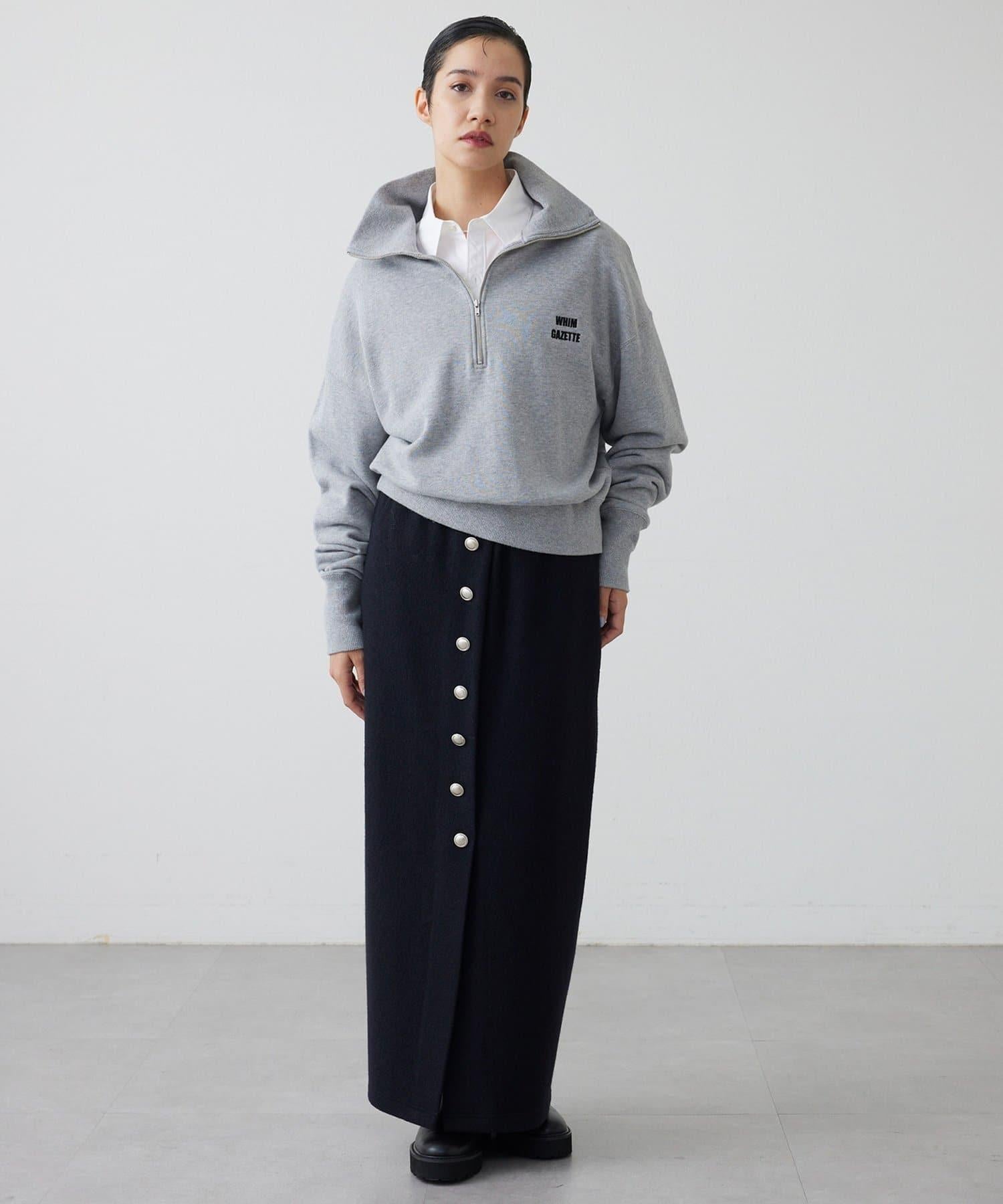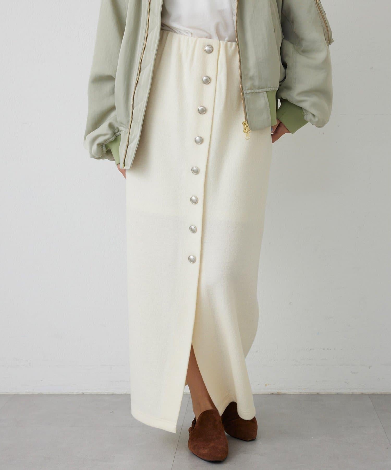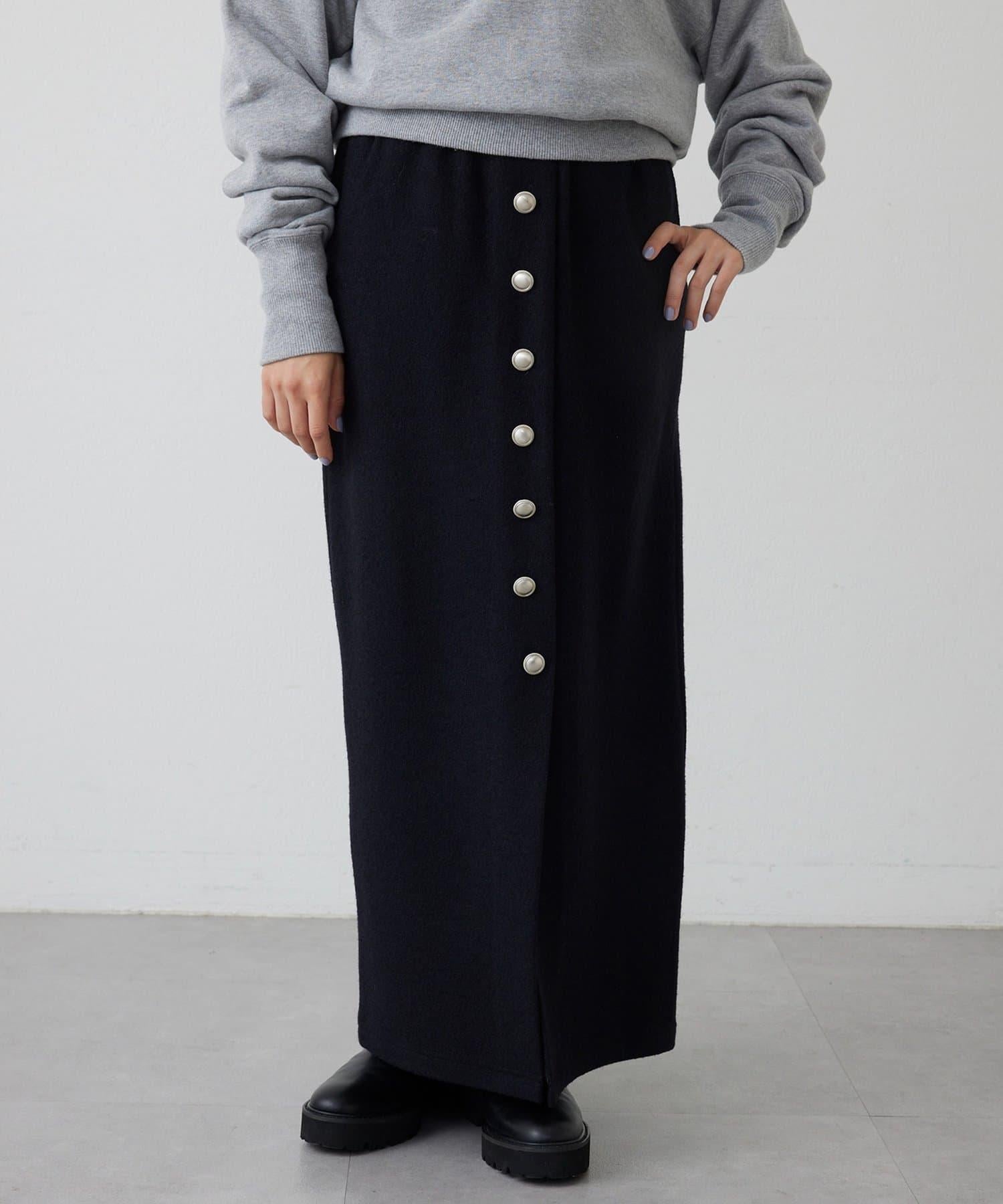 緊身裙,秋冬款式,配有醒目的金屬紐扣。