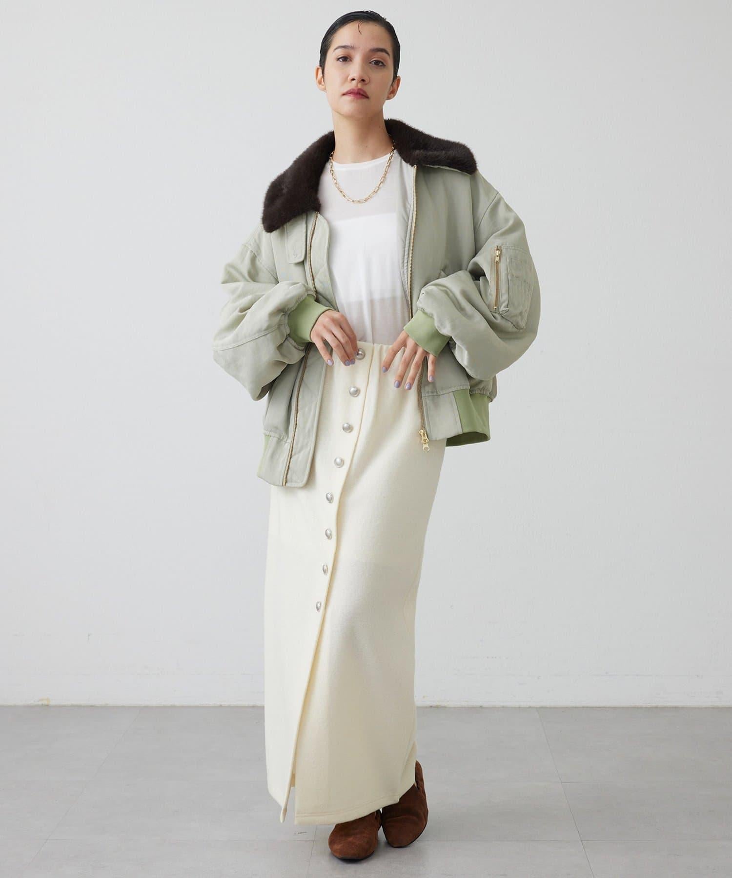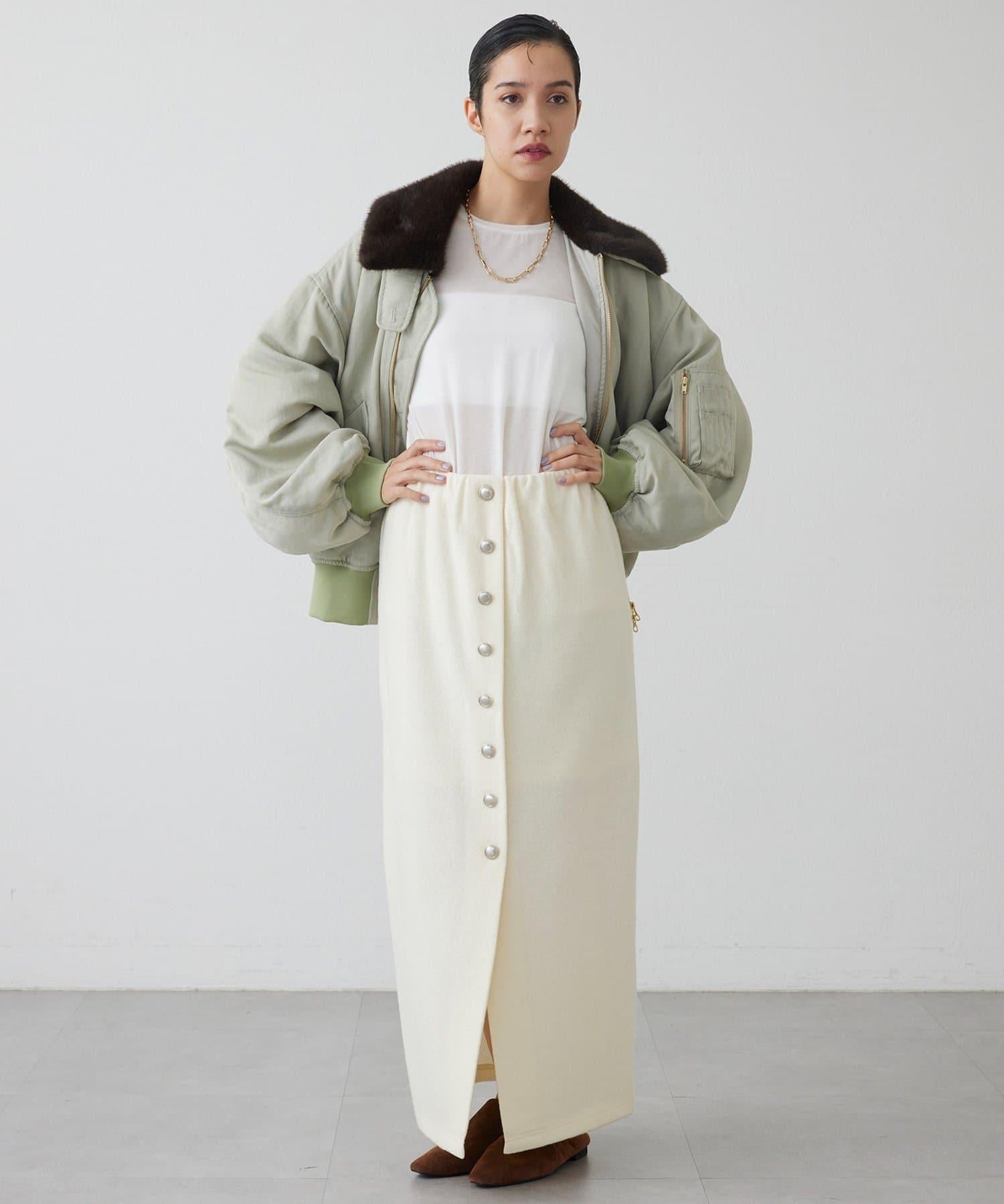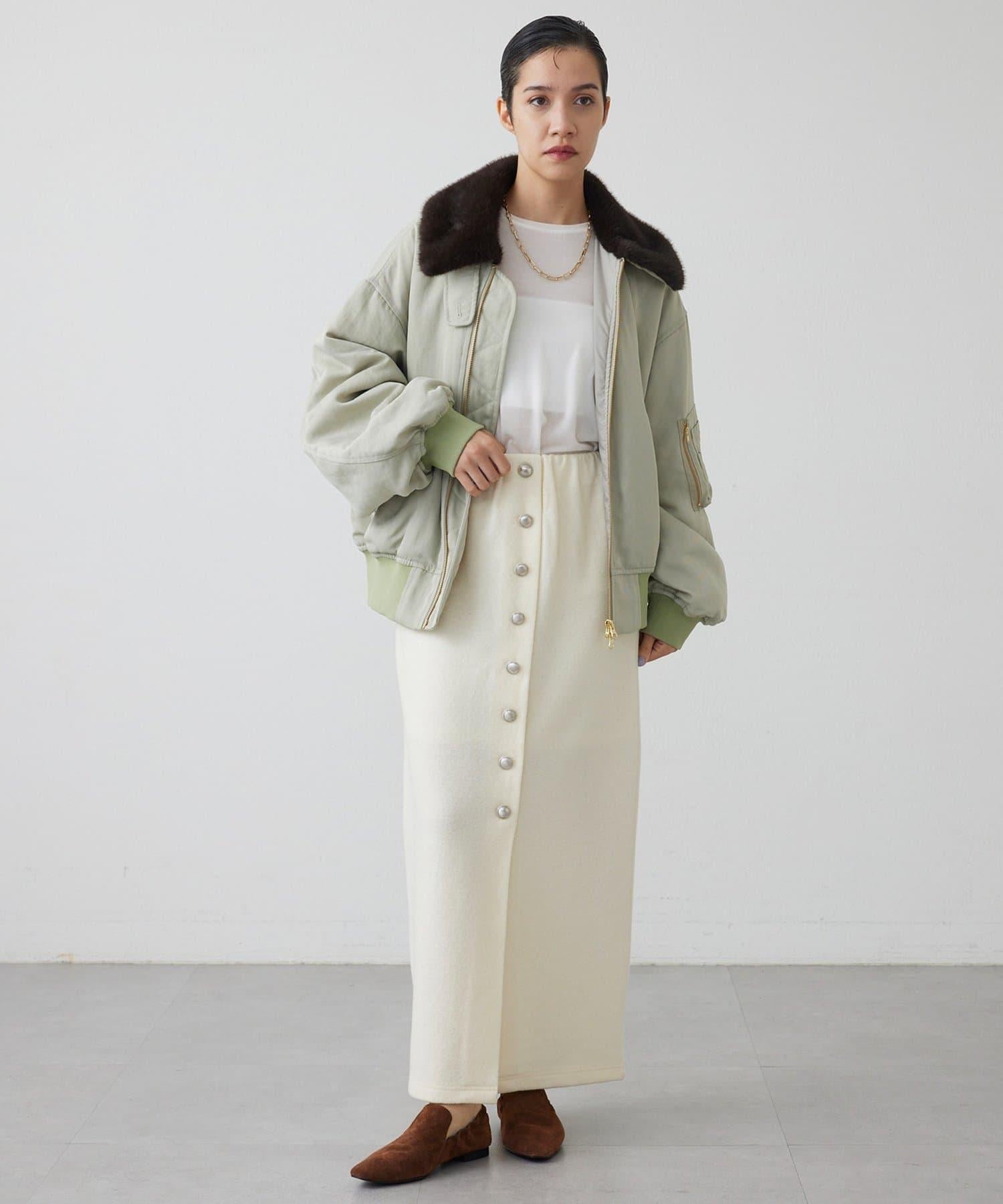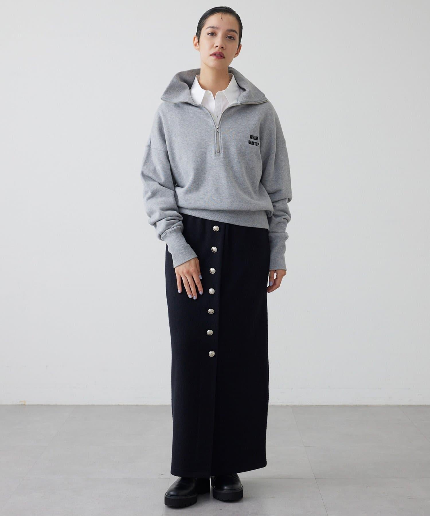 緊身裙,秋冬款式,配有醒目的金屬紐扣。