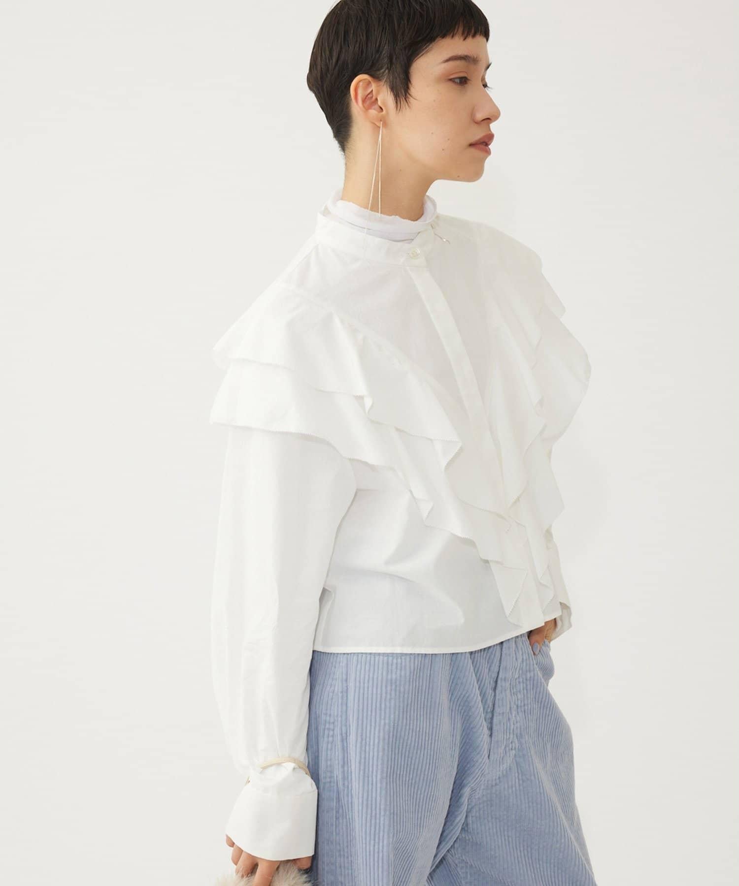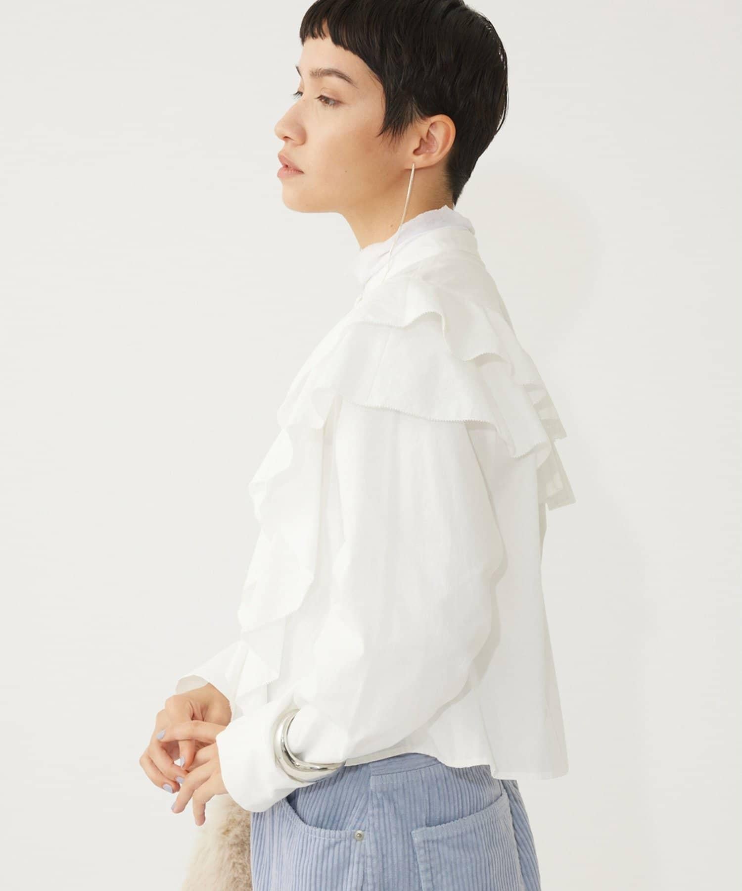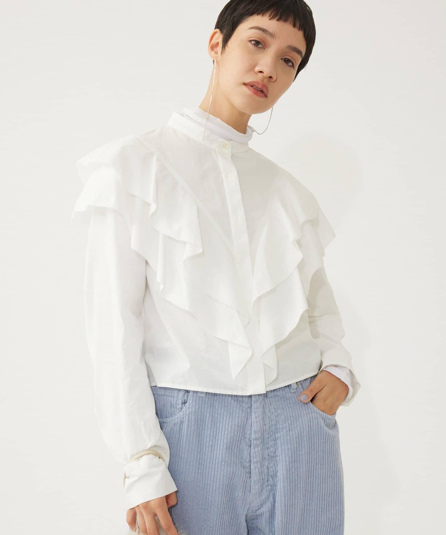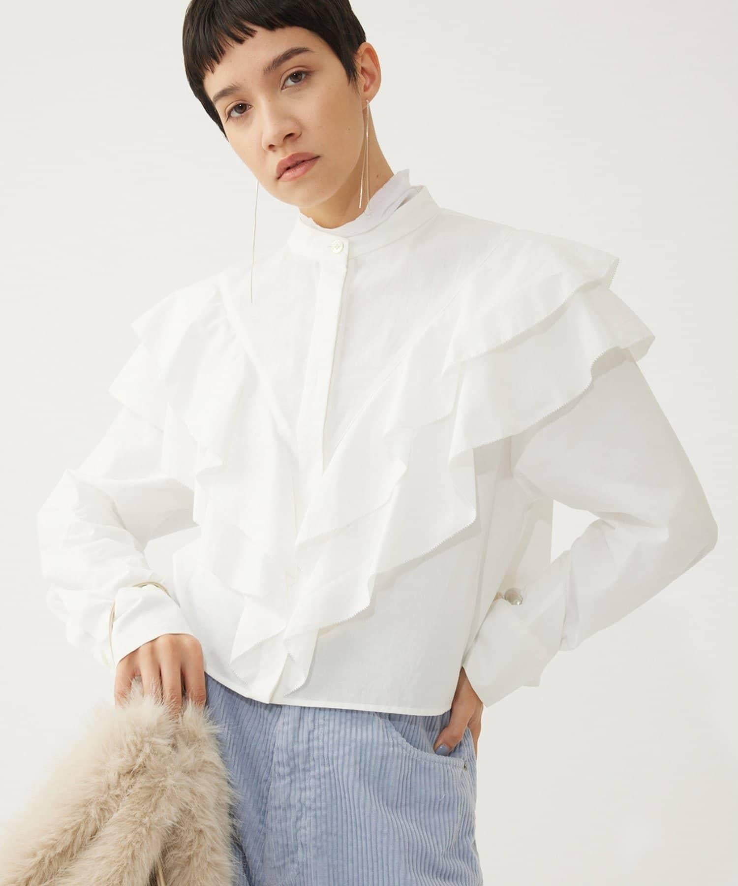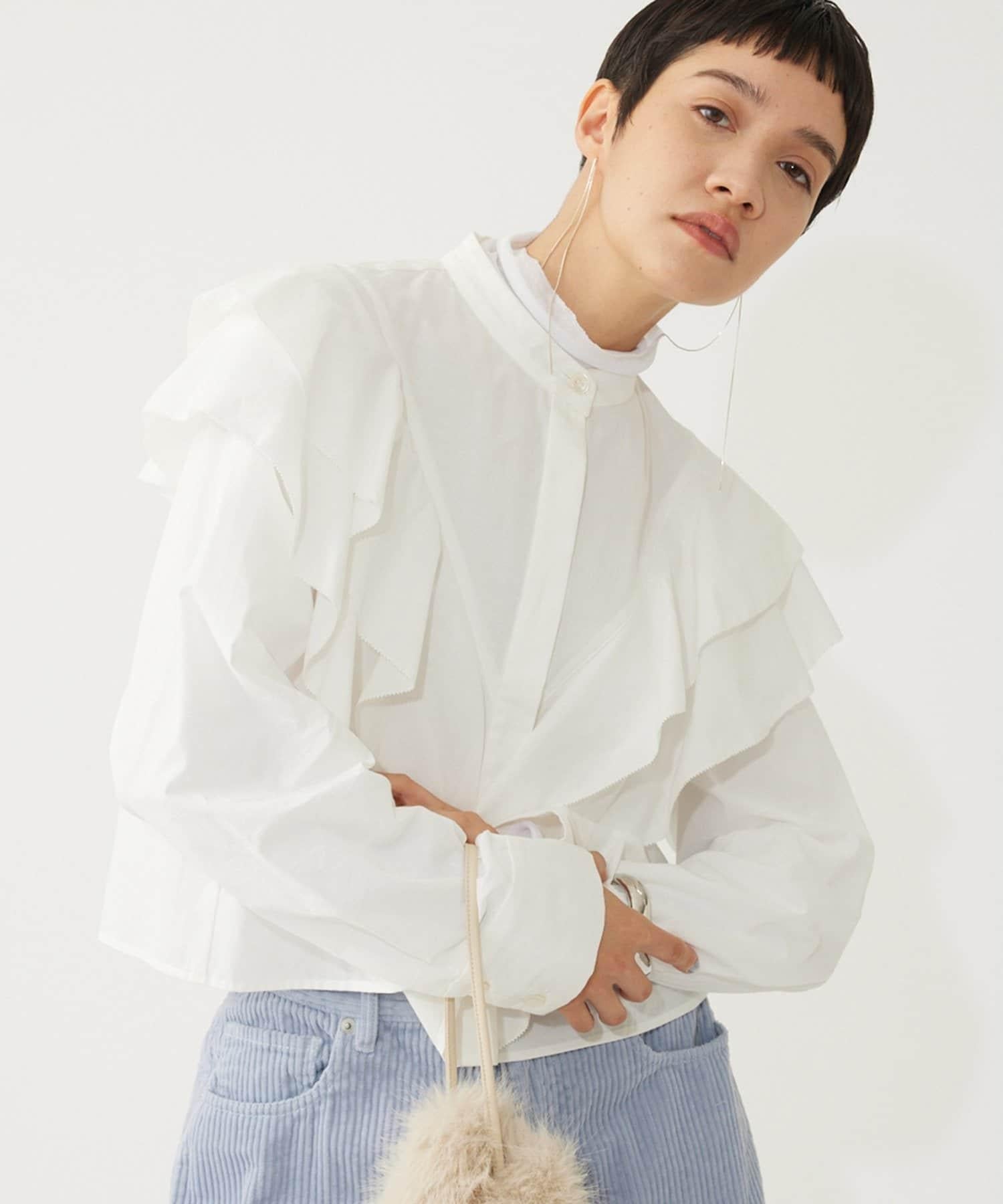 從肩部到全身都有大量荷葉邊的華麗上衣。