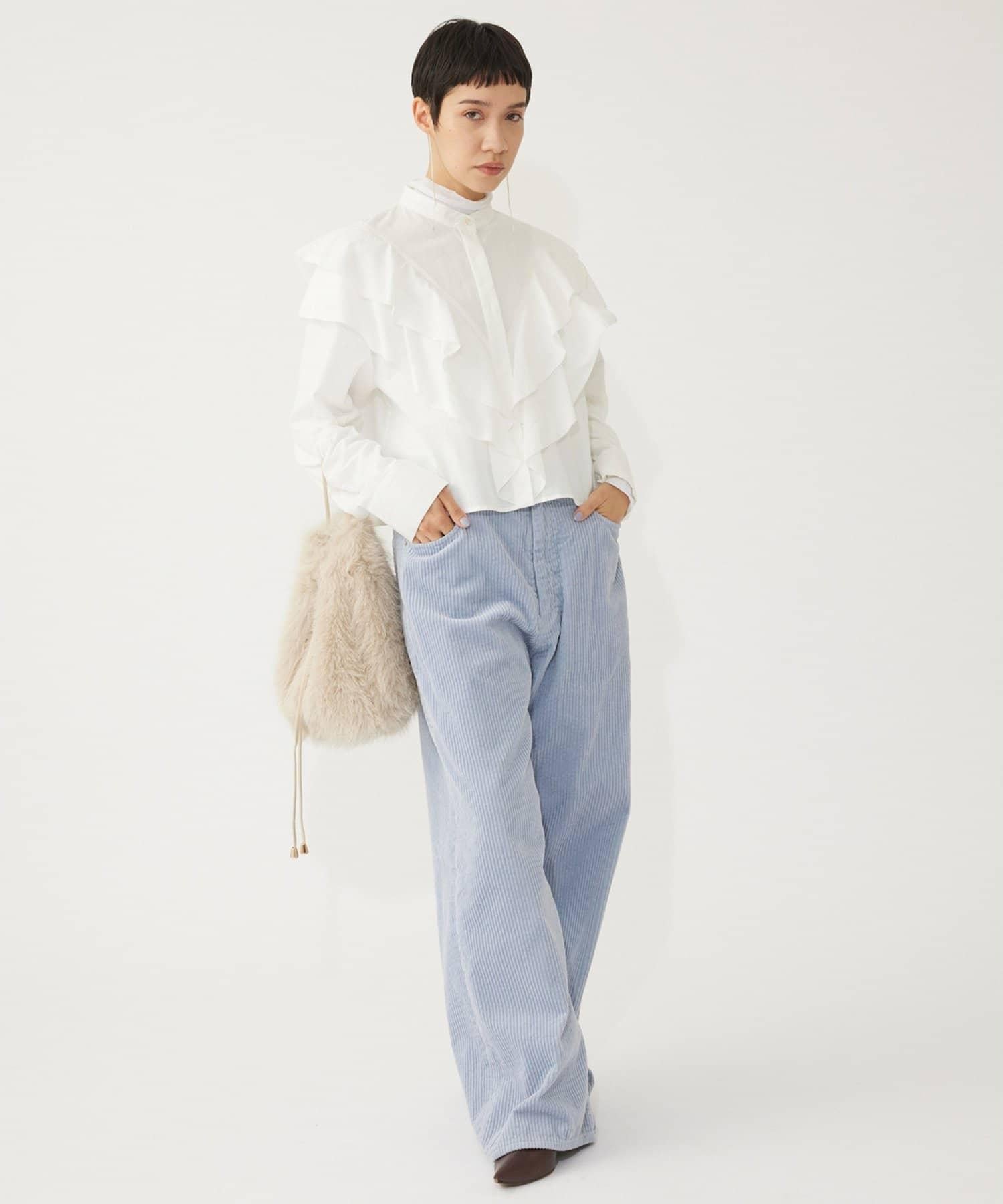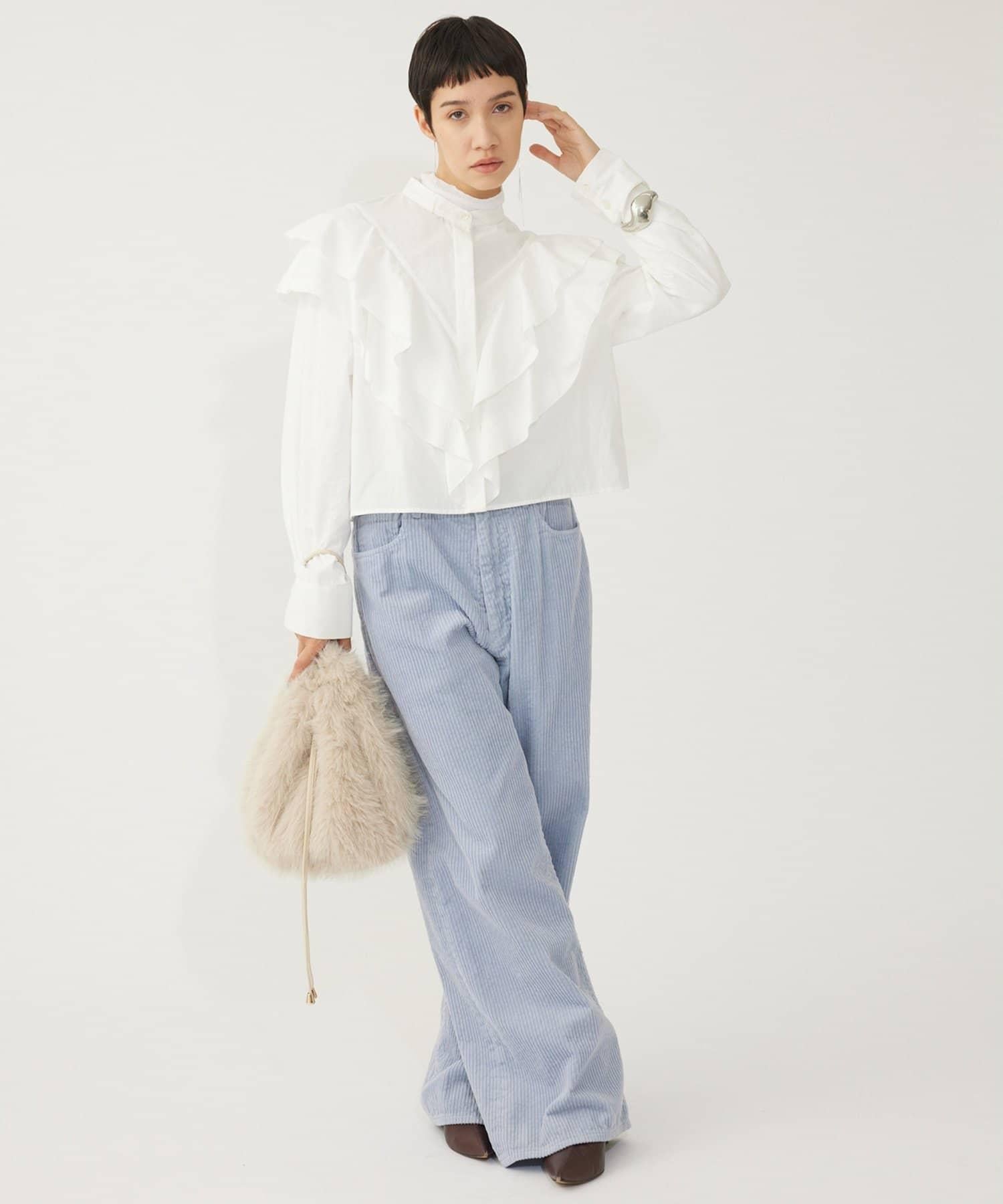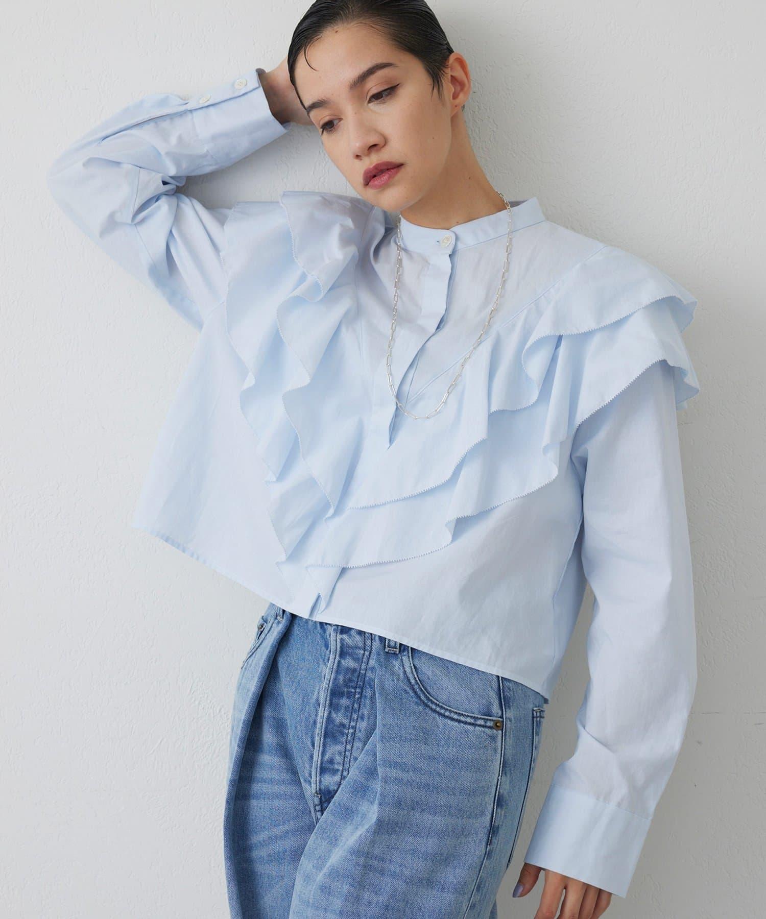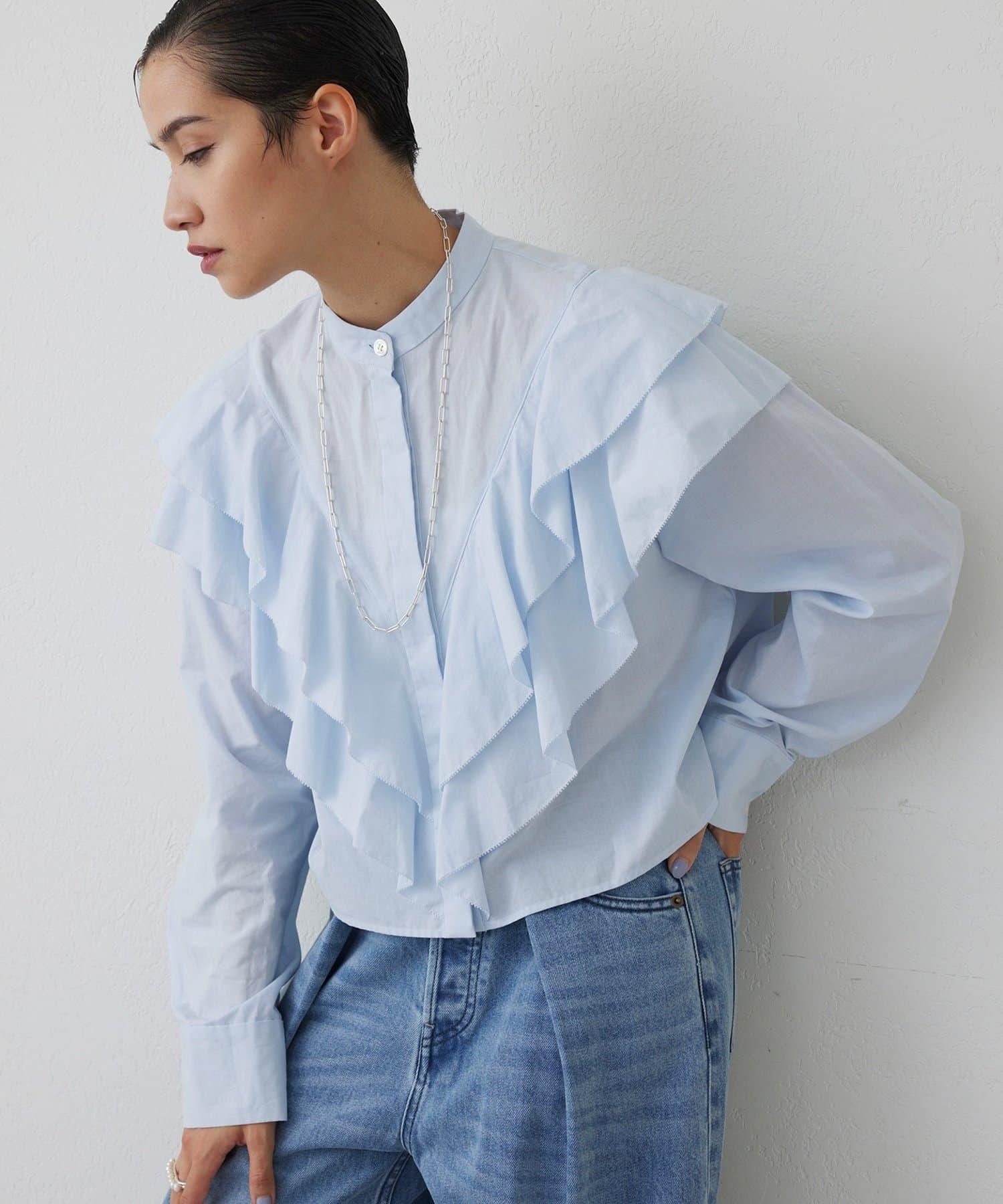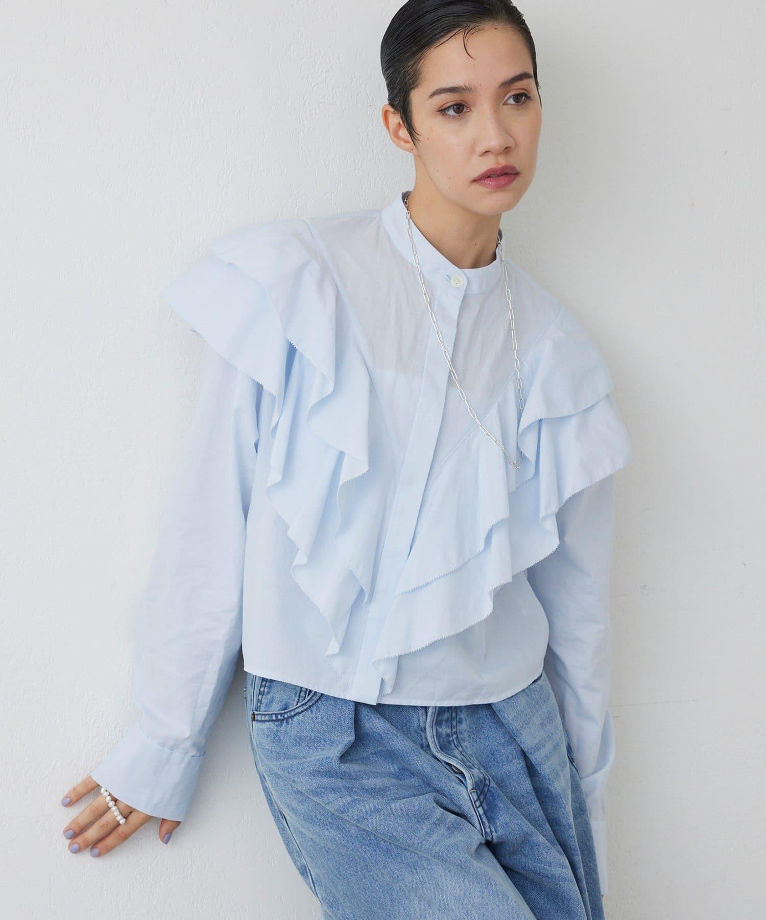 從肩部到全身都有大量荷葉邊的華麗上衣。