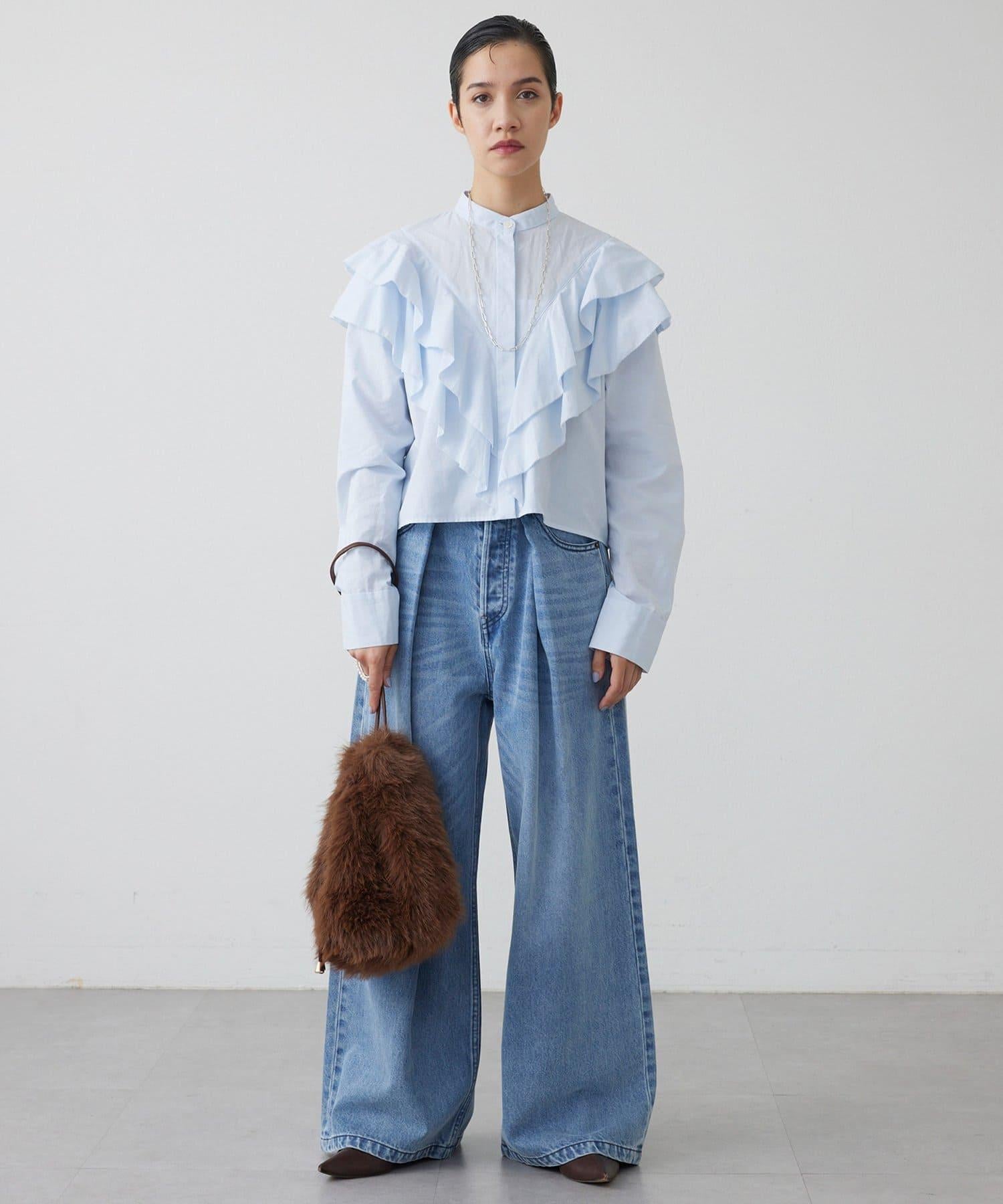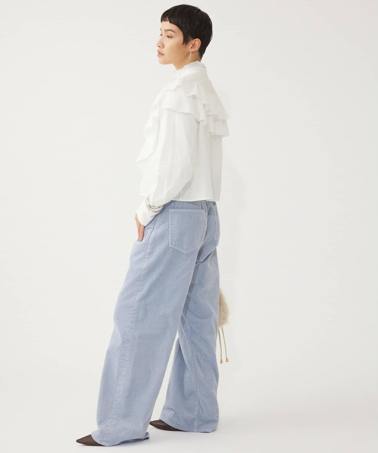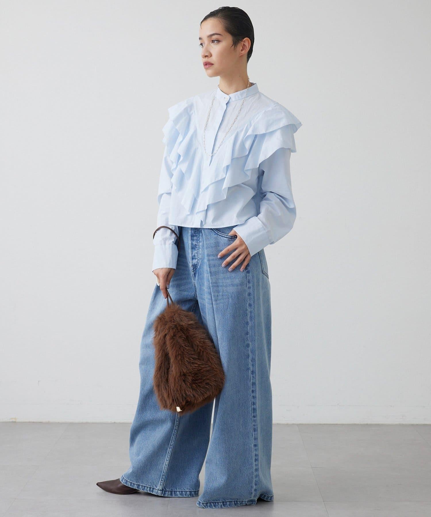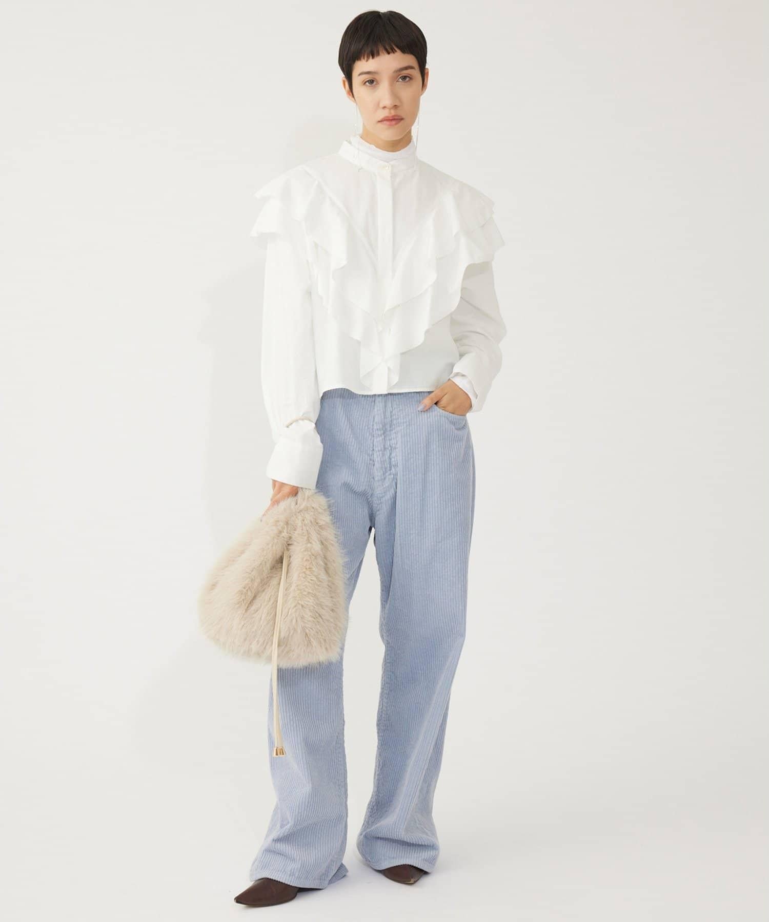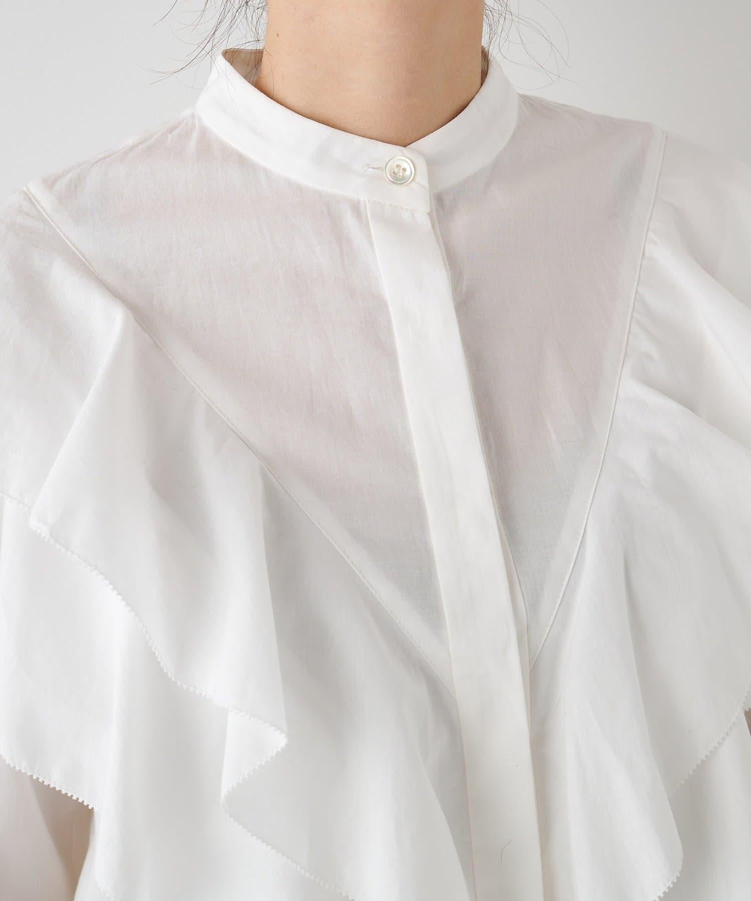 從肩部到全身都有大量荷葉邊的華麗上衣。