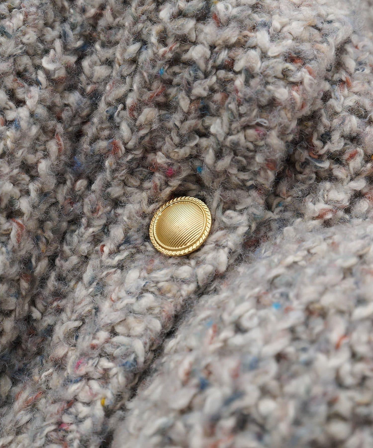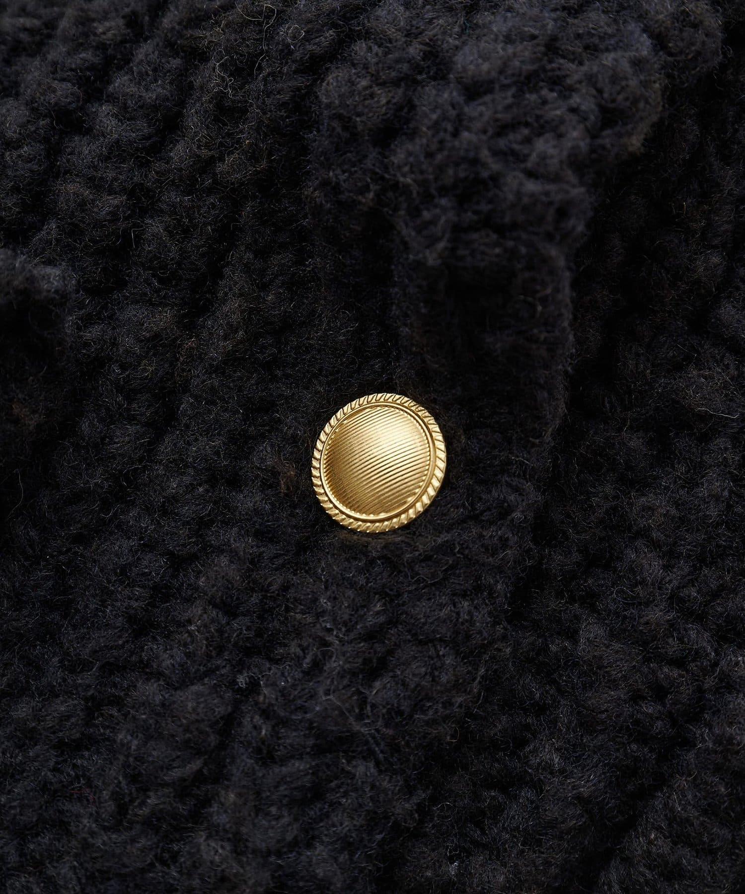 正面的金色紐扣和大口袋更突出了這款單品的特點,使其與簡單的下裝完美搭配。