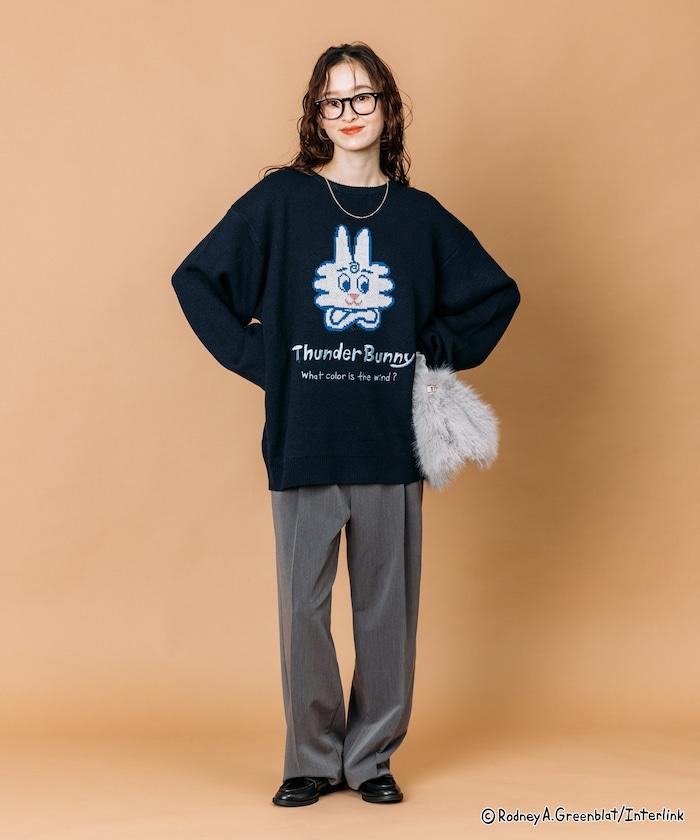 Thunder Bunny / 《Thunder Bunny》特別款寬鬆版型提花圓領針織衫【限量】