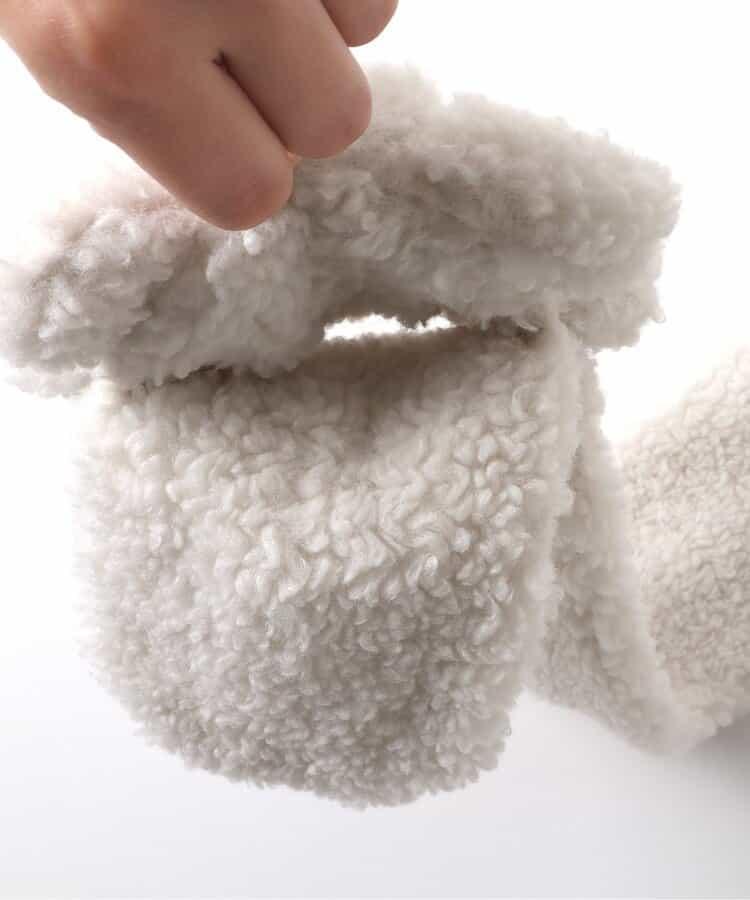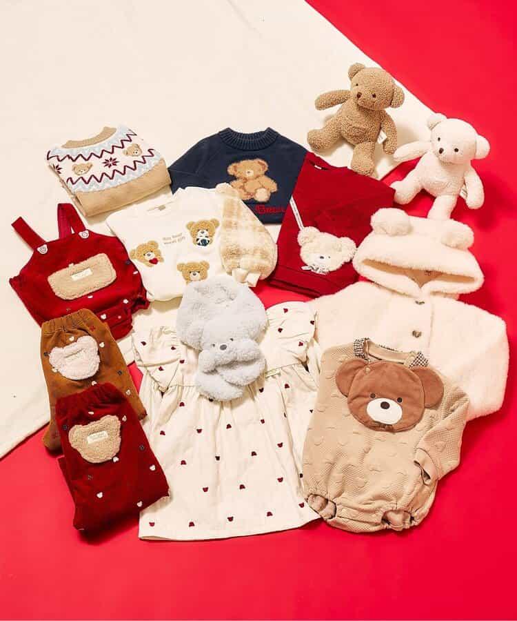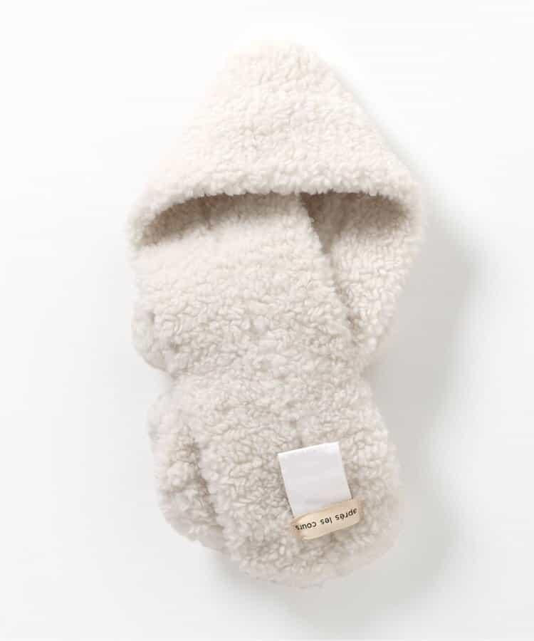 又大又蓬鬆的小熊圍巾極具衝擊力。