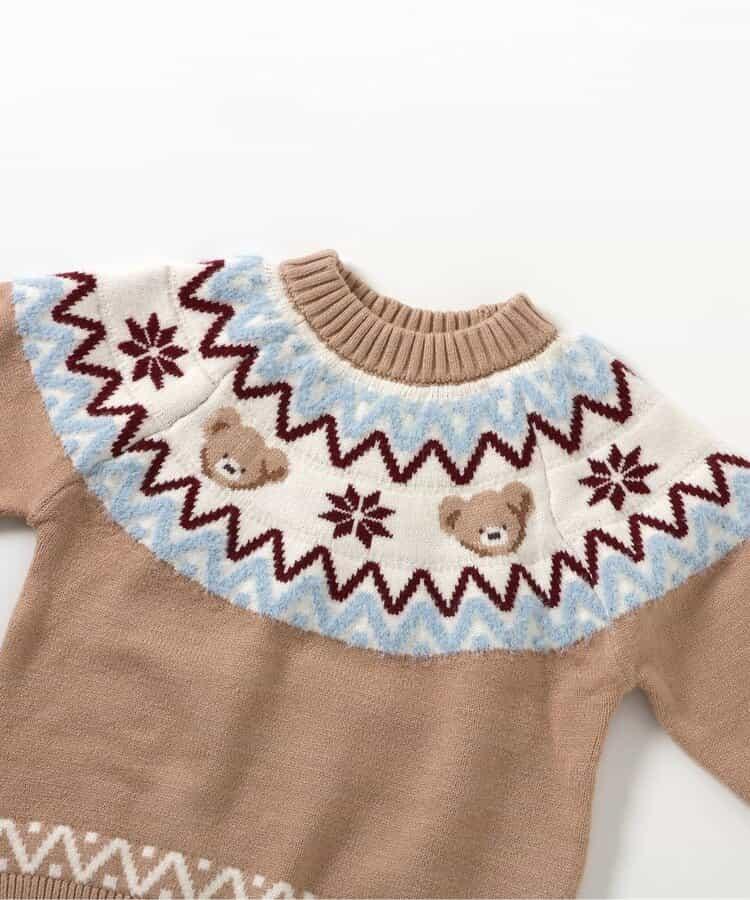 以毛茸茸的小熊為特色的針織品在寒冷的季節裡既溫暖又實用。