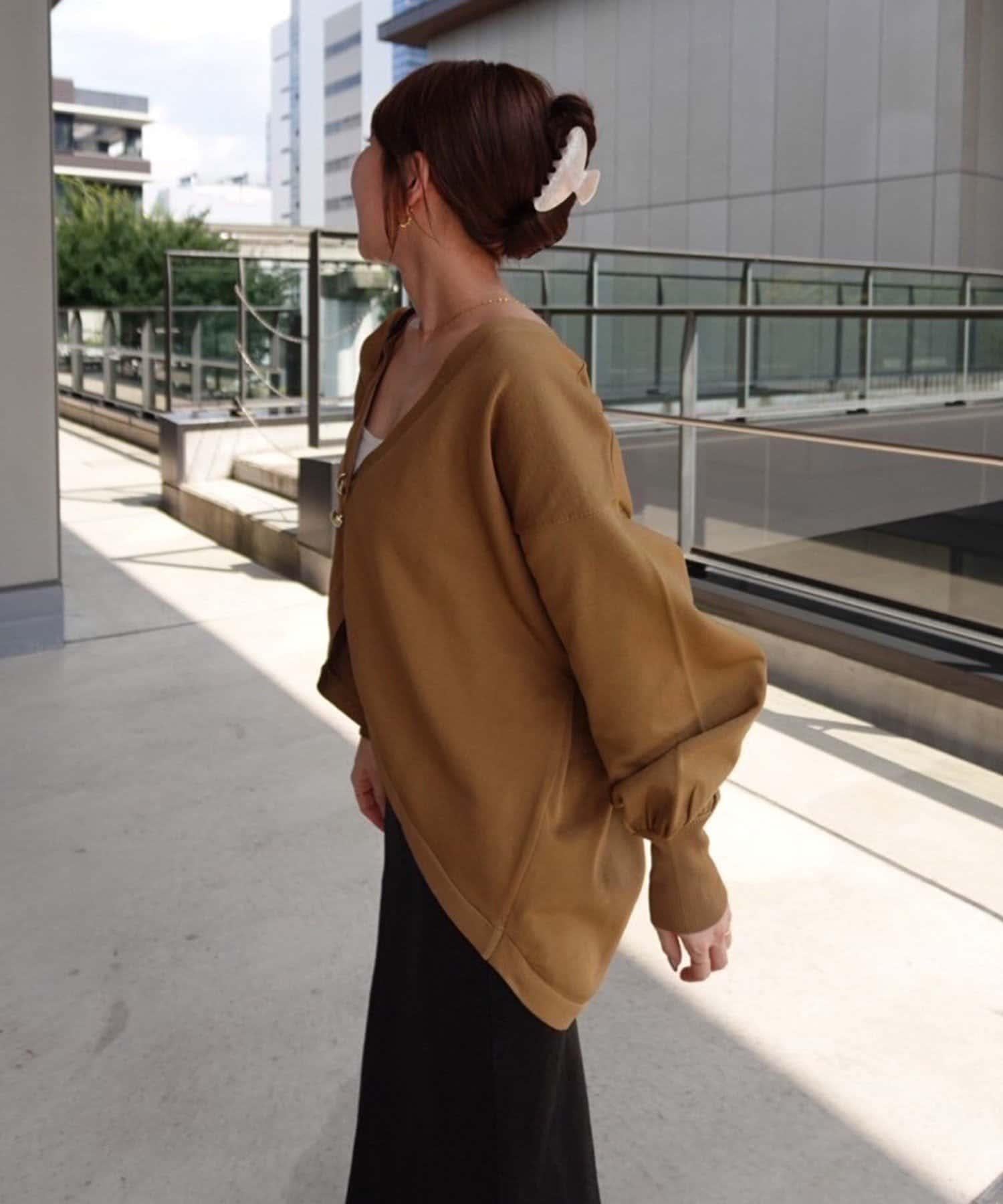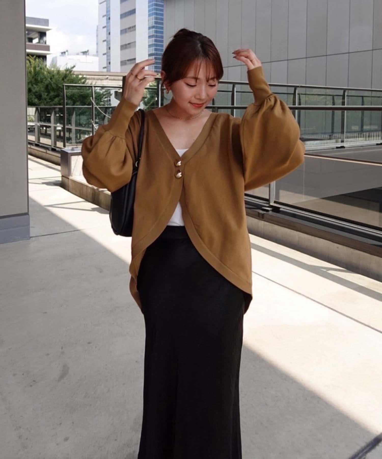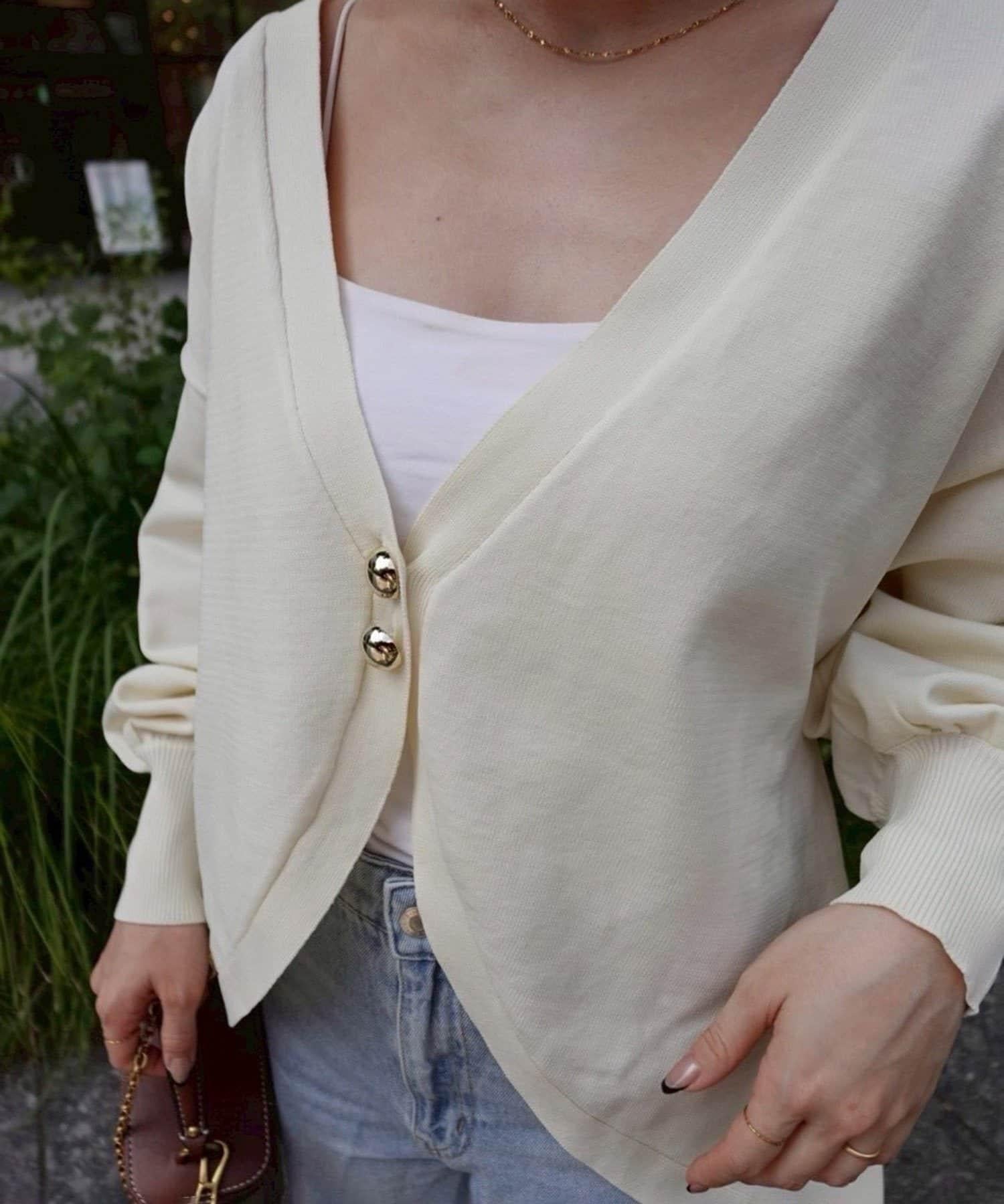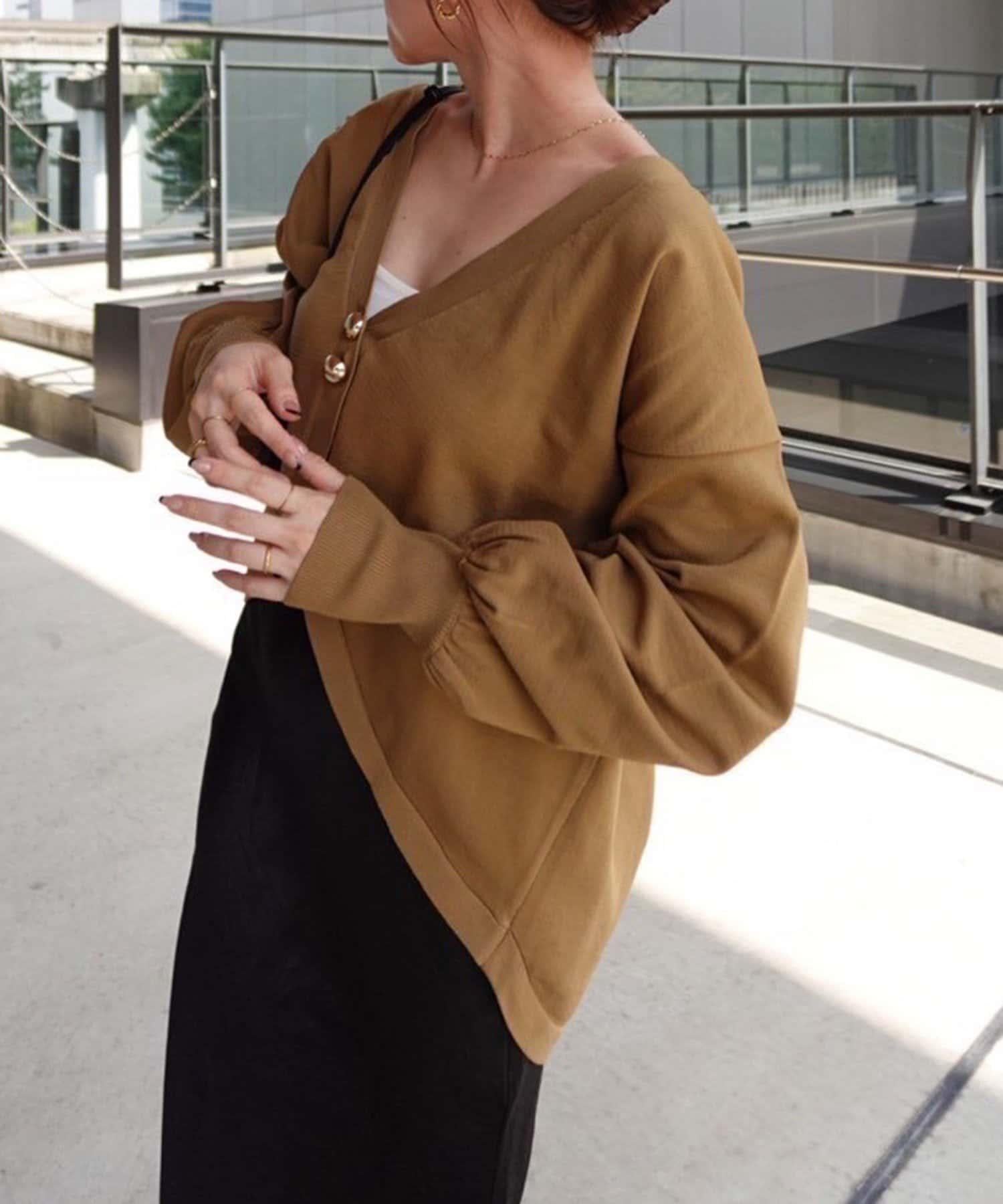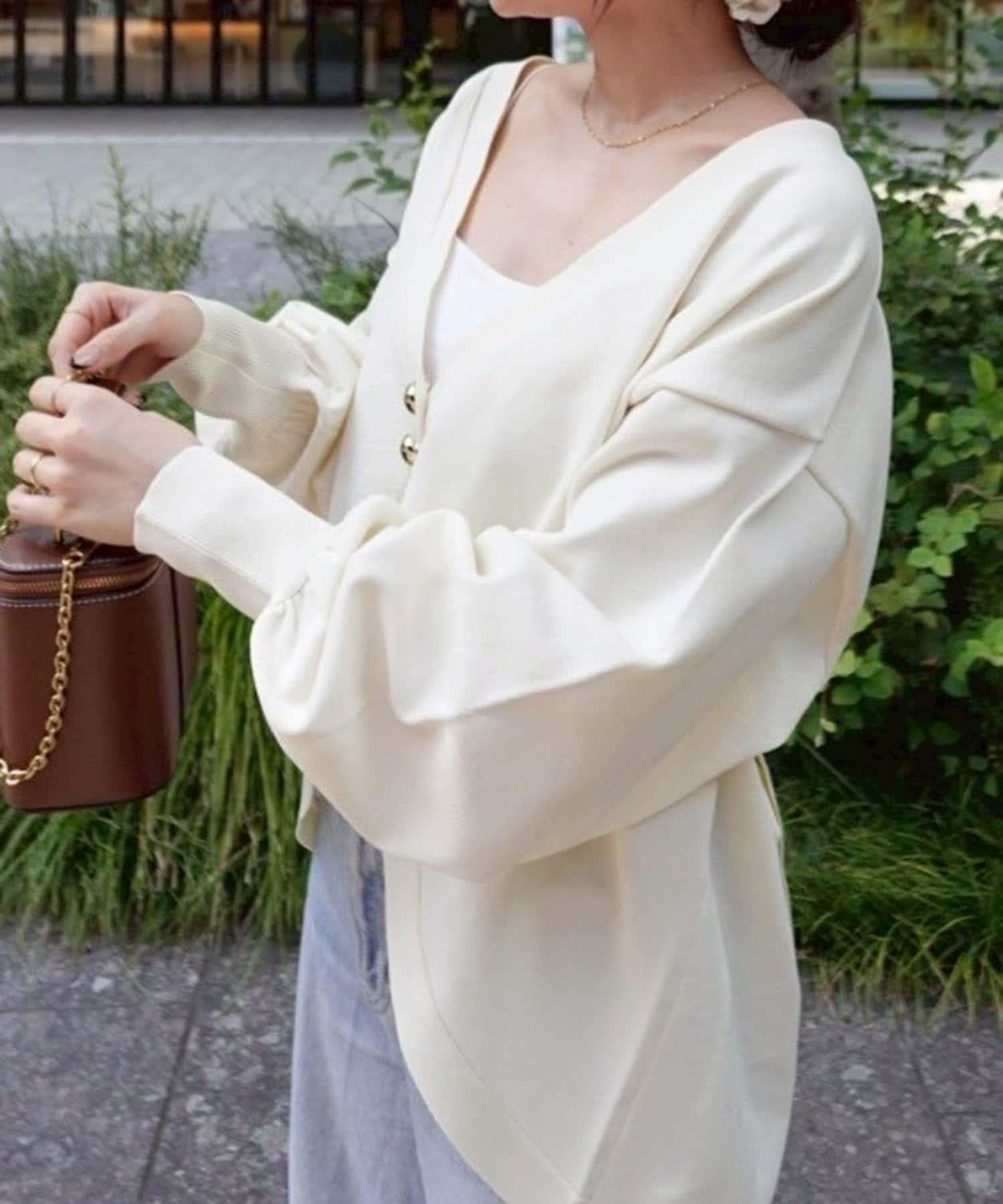 V 字領口使臉部看起來乾淨利落,袖子的空間很大,給人一種舒適的感覺。