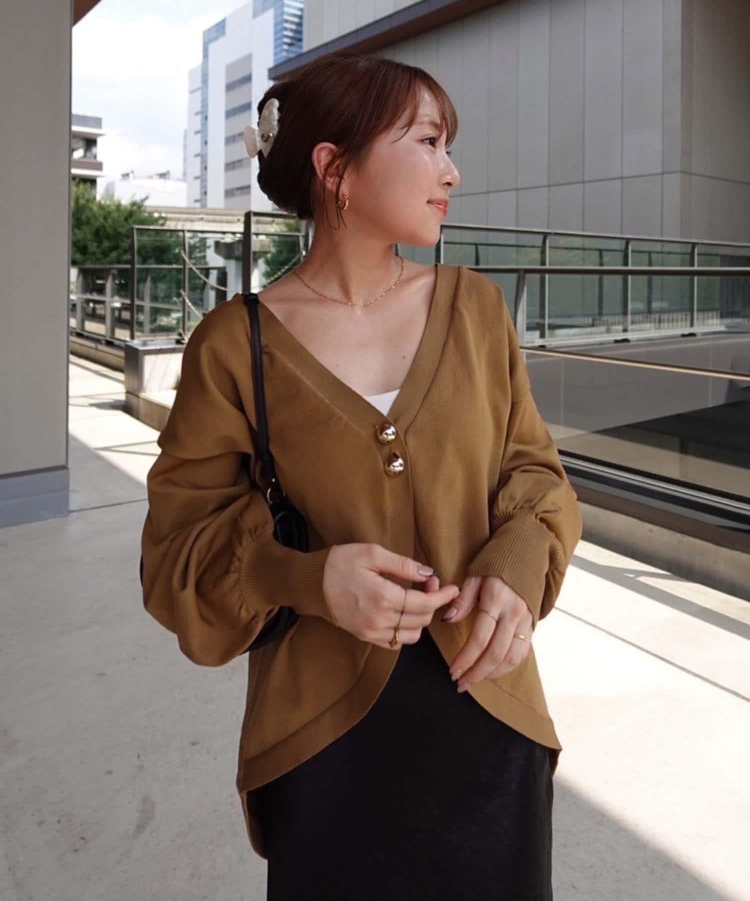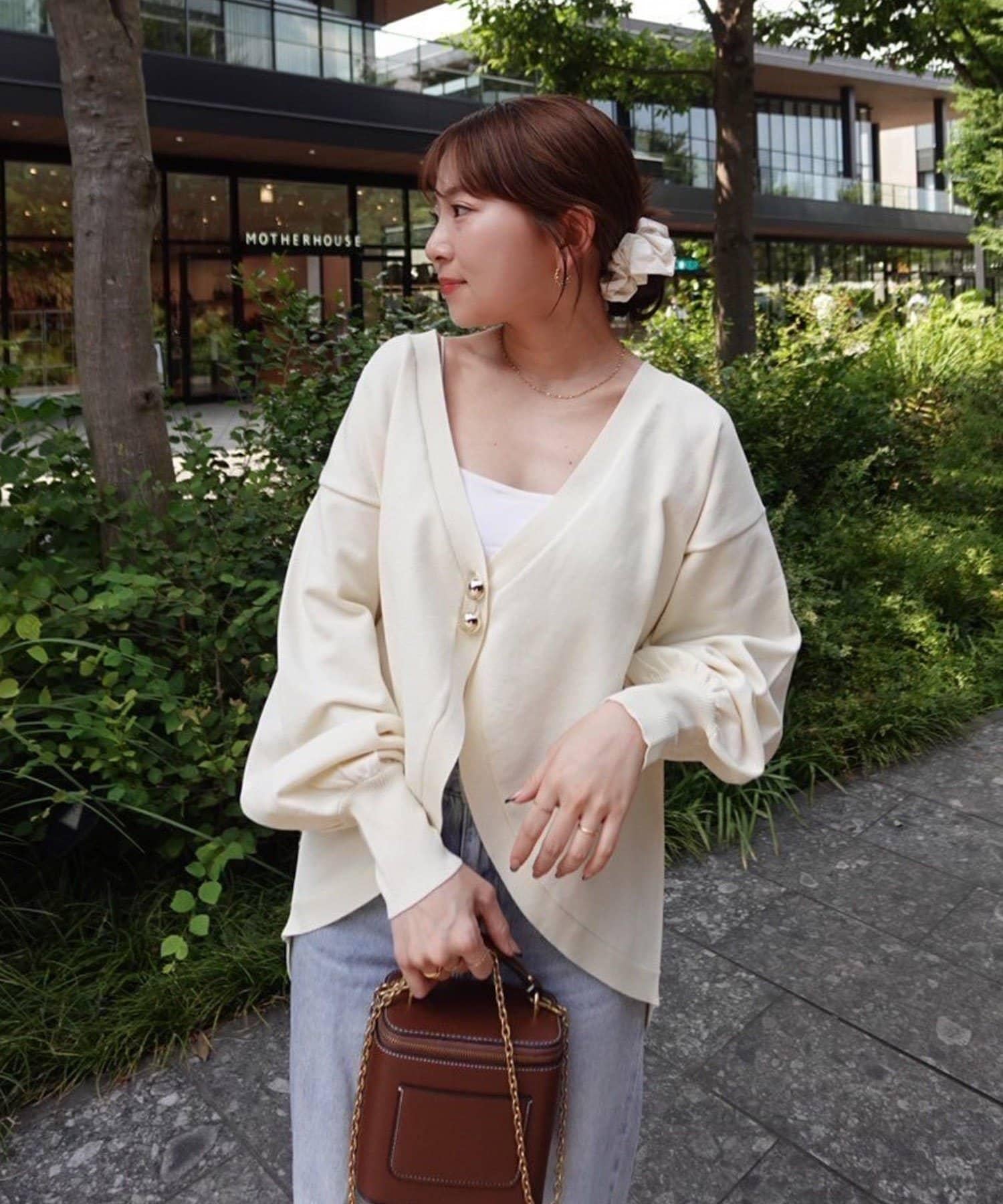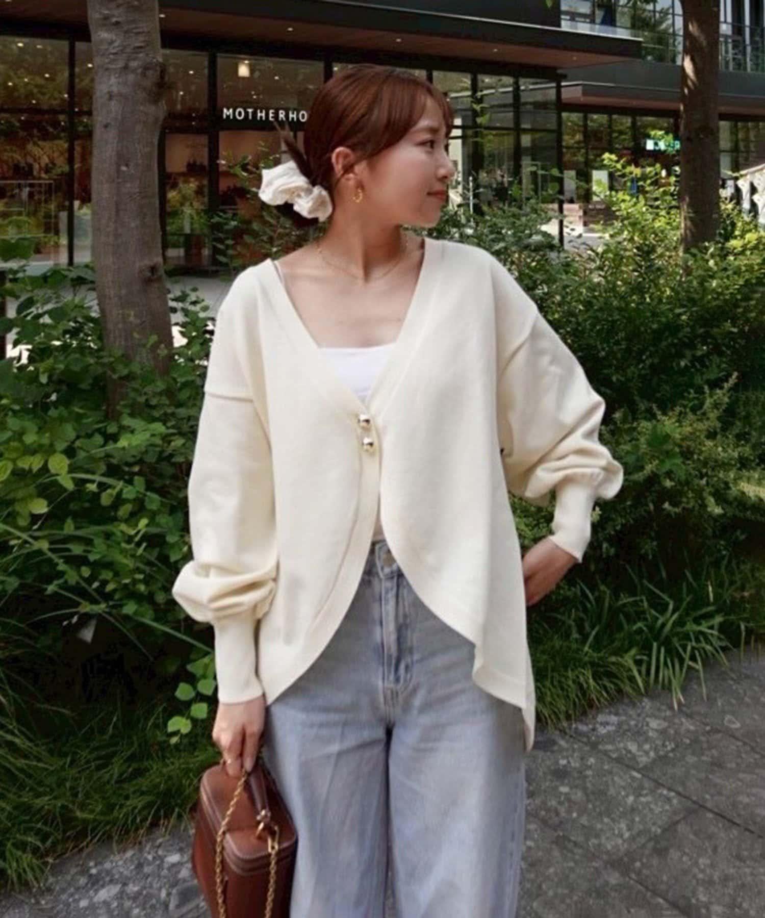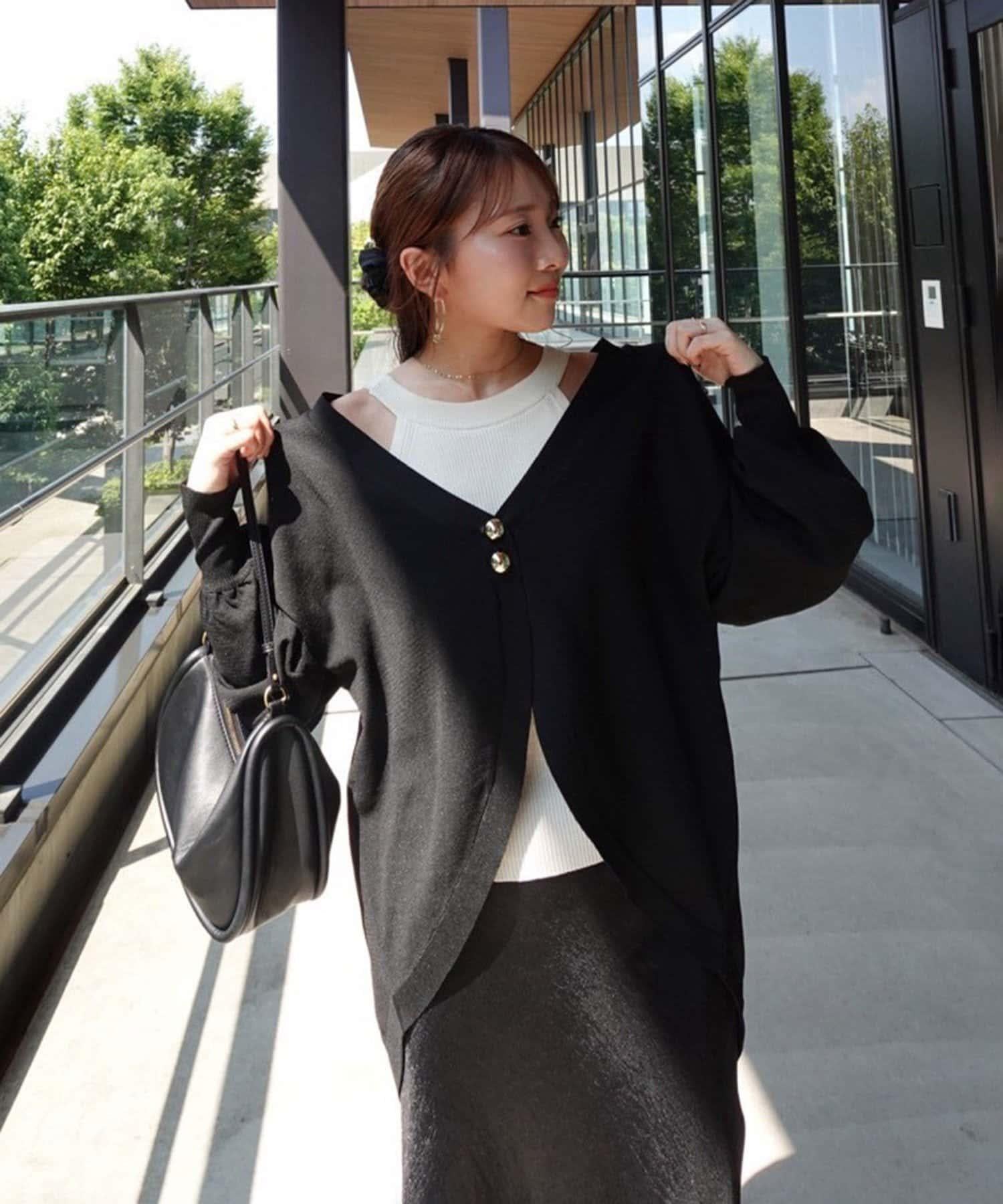 V 字領口使臉部看起來乾淨利落,袖子的空間很大,給人一種舒適的感覺。