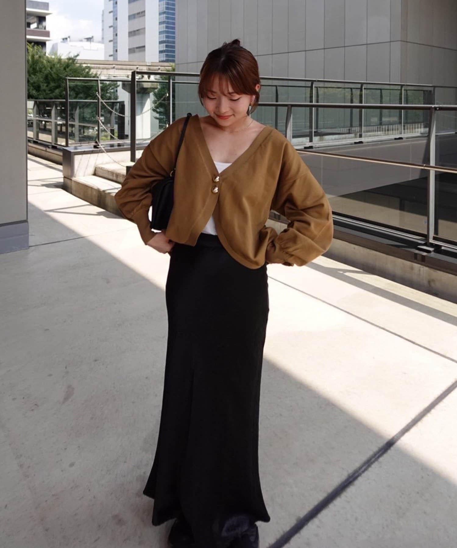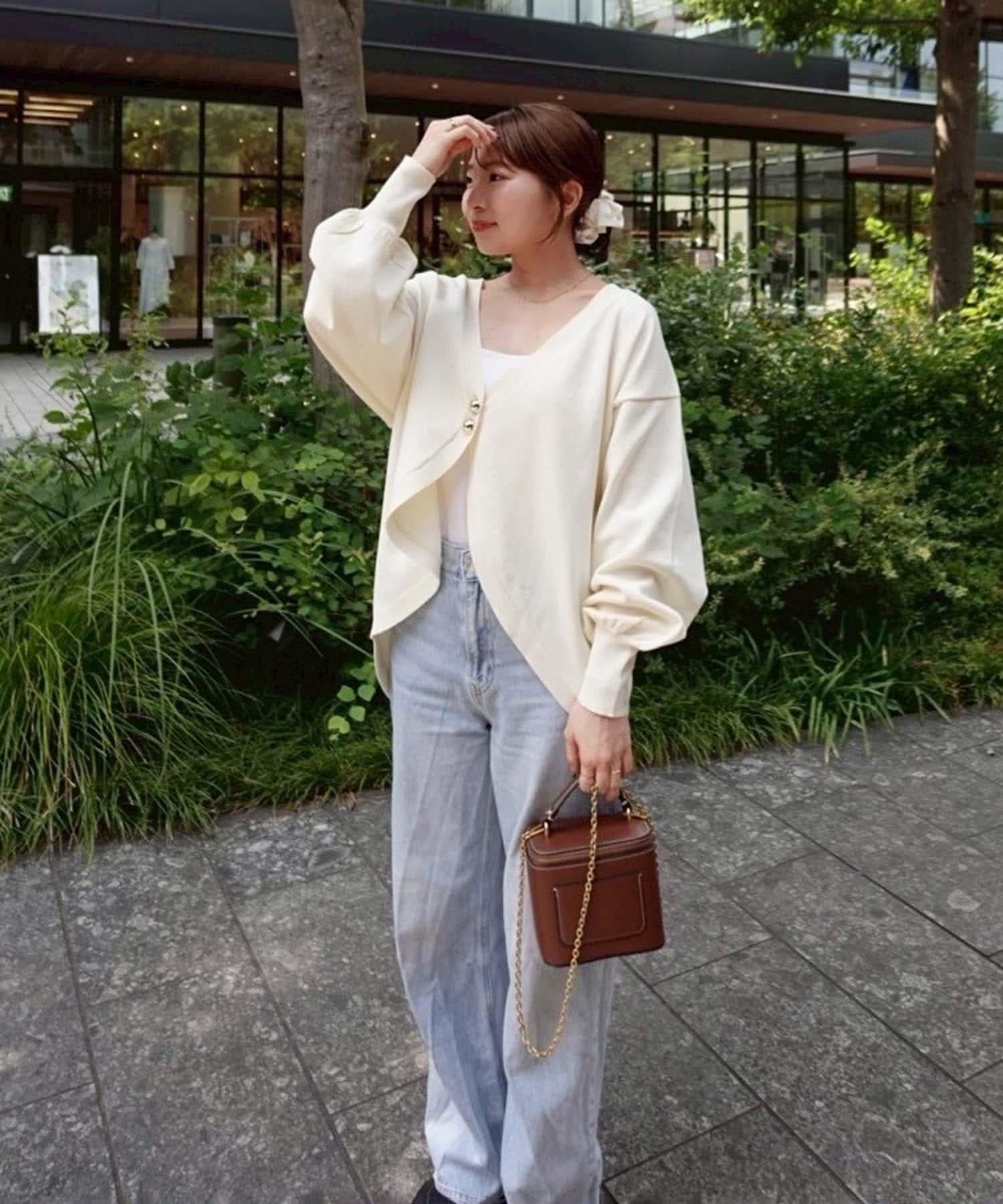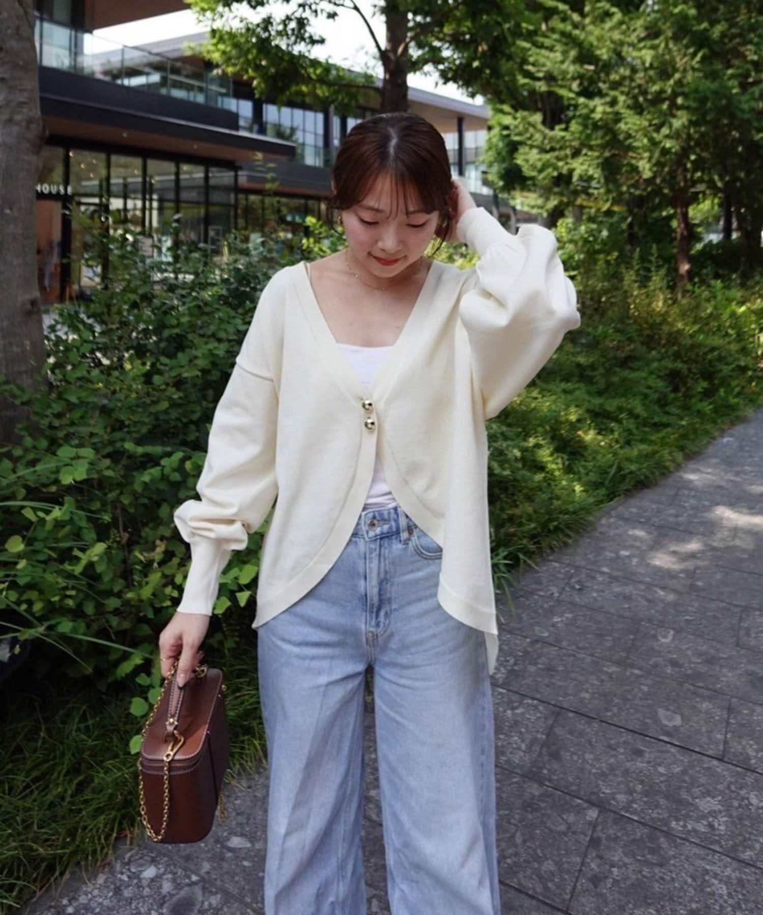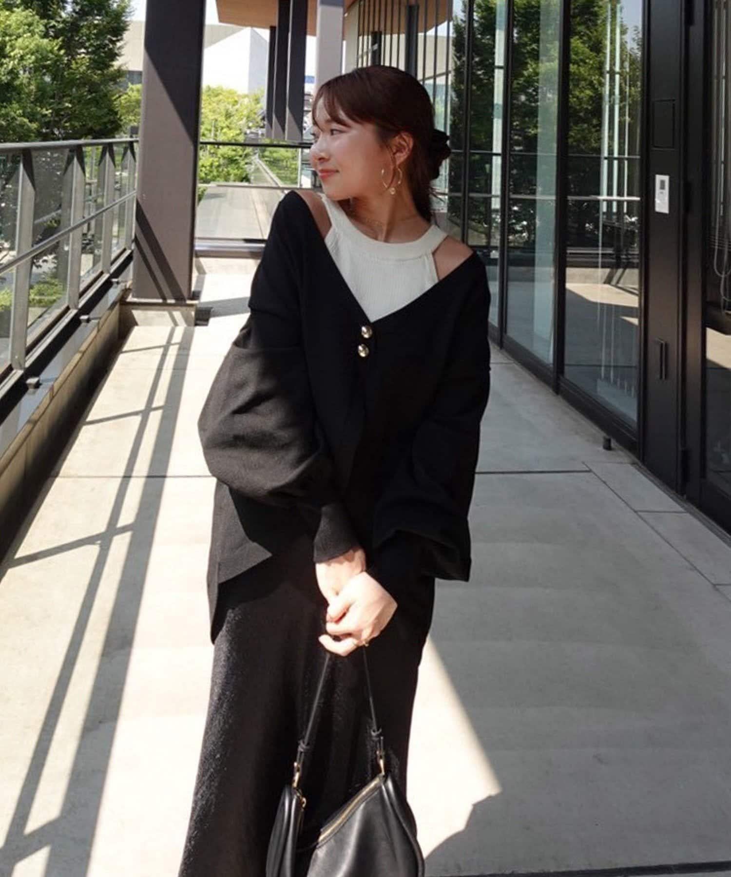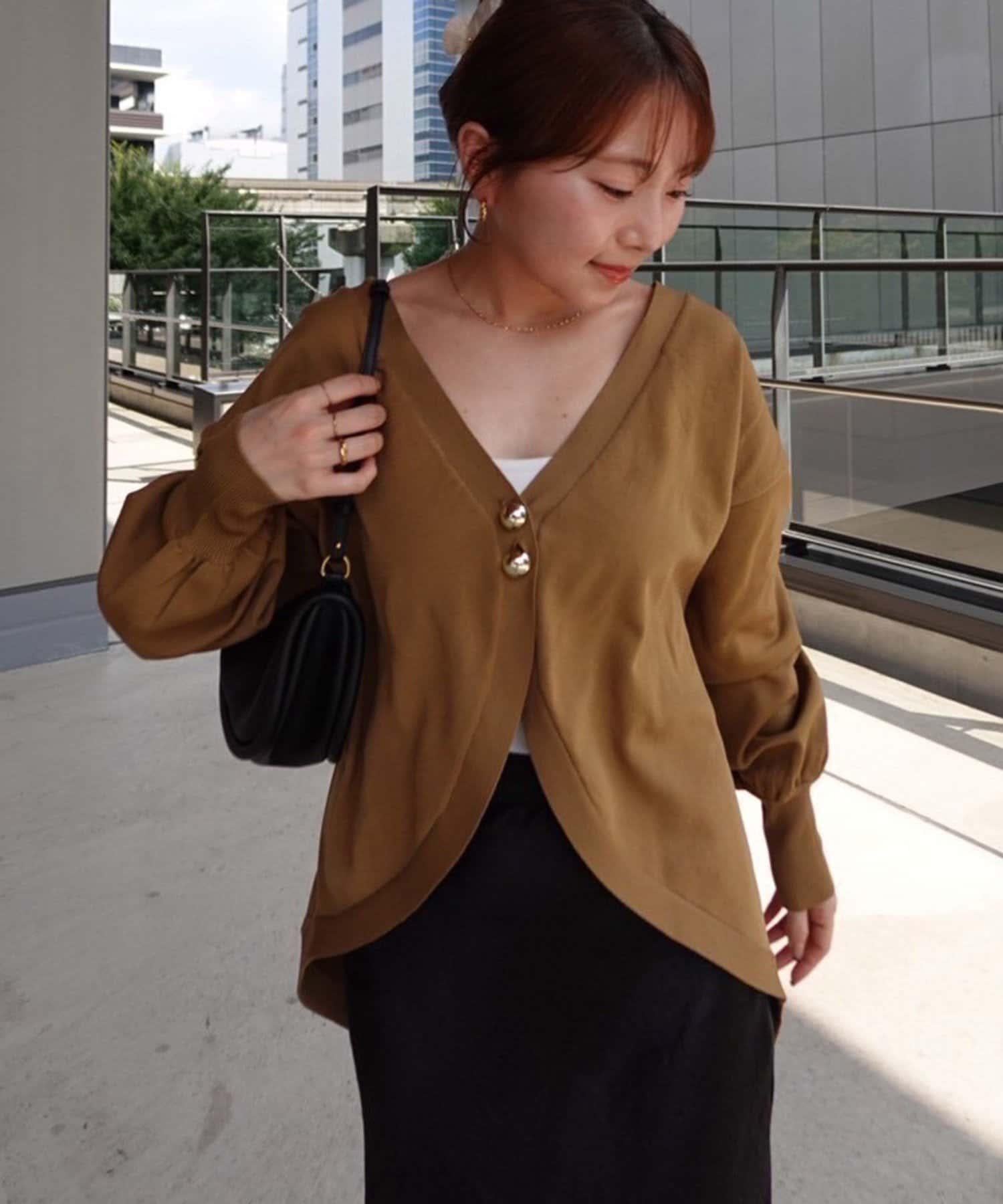 V 字領口使臉部看起來乾淨利落,袖子的空間很大,給人一種舒適的感覺。