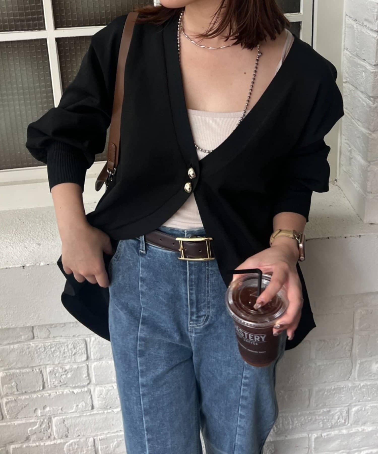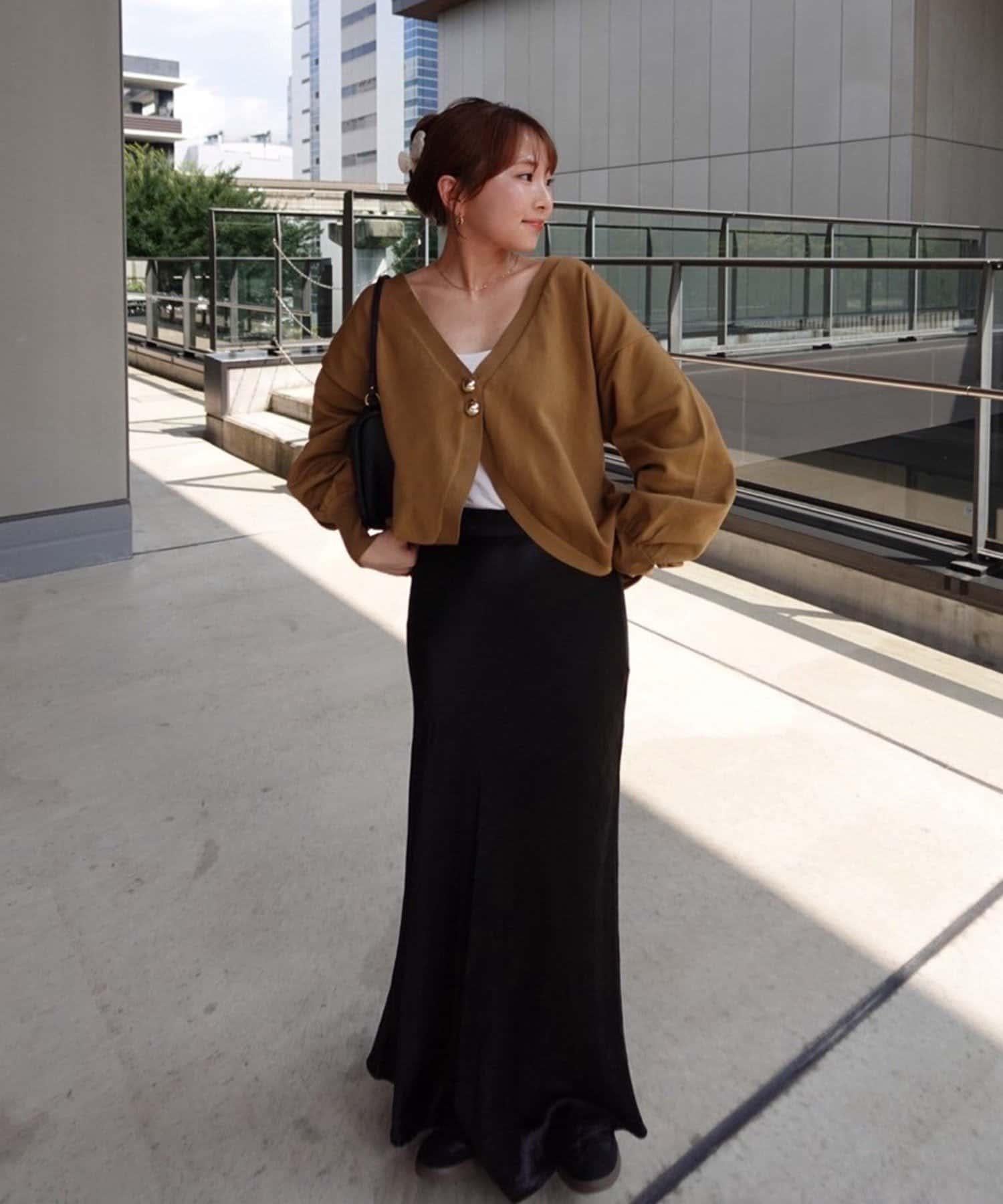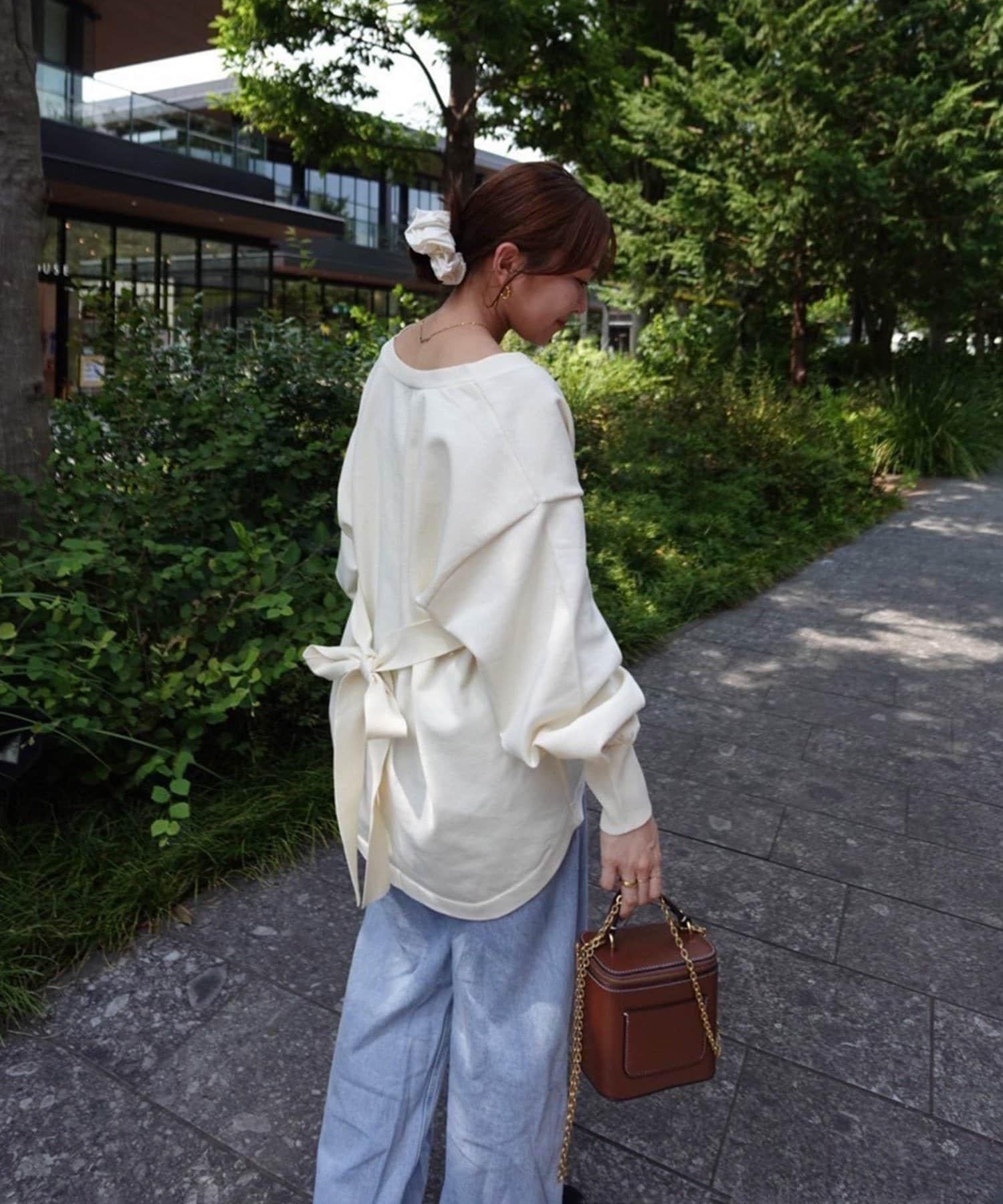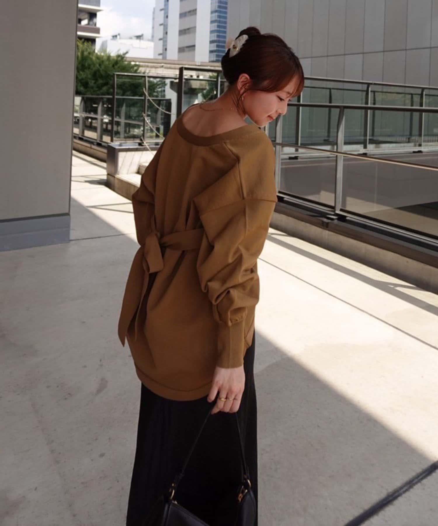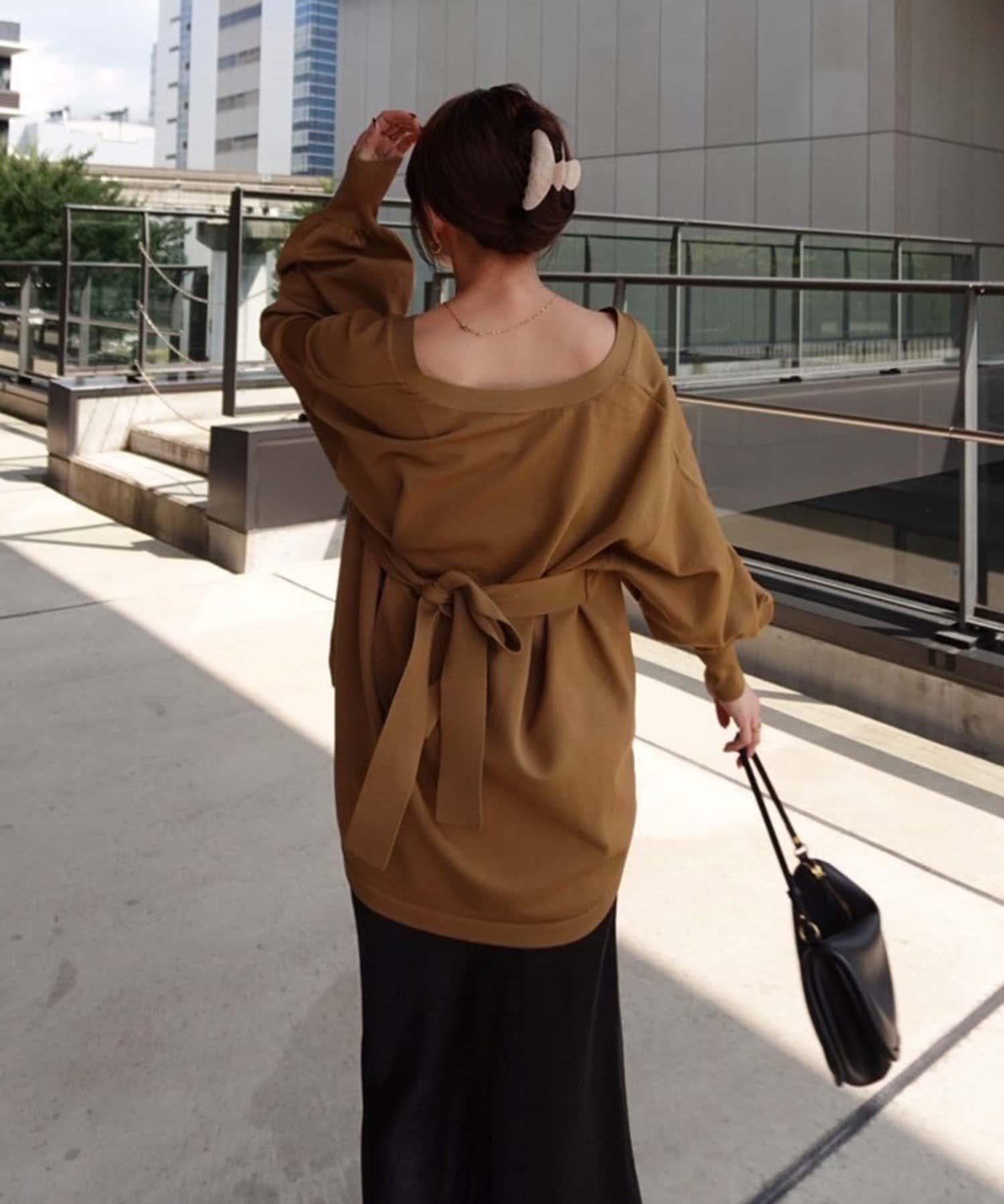 V 字領口使臉部看起來乾淨利落,袖子的空間很大,給人一種舒適的感覺。