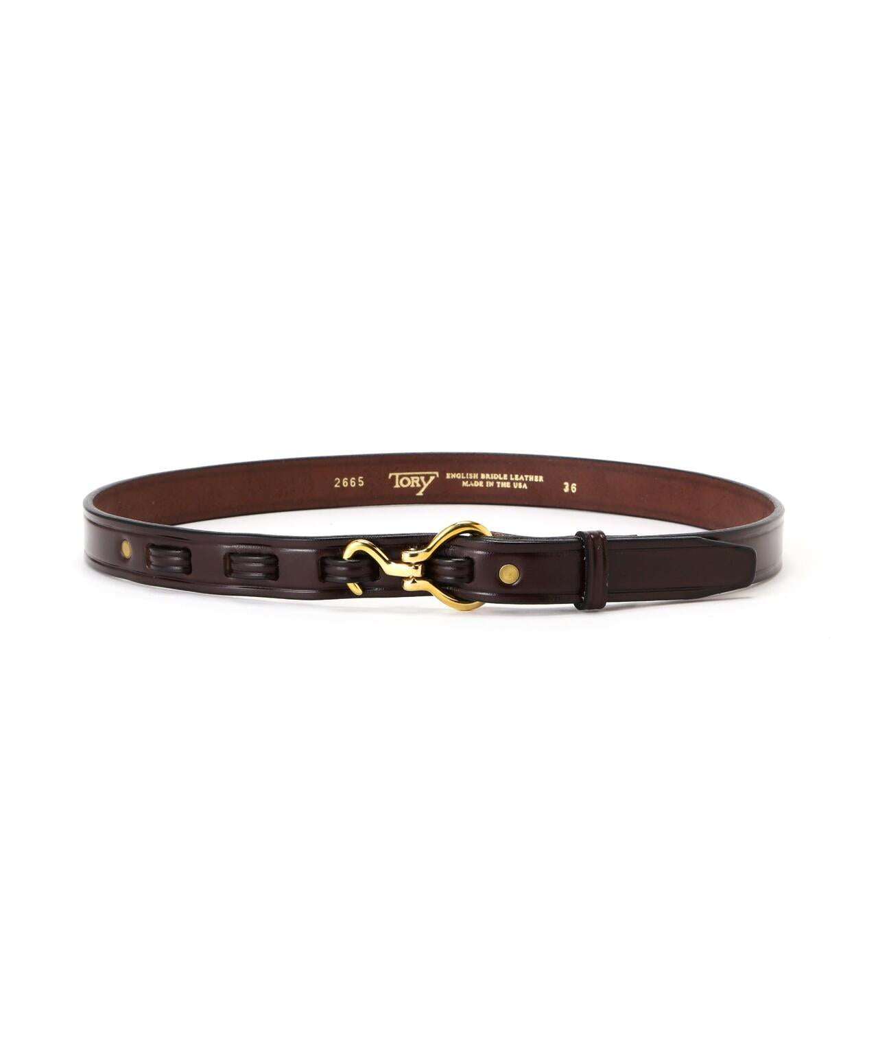 TORY LEATHER 黃銅迷你蹄鐵腰帶/黃銅迷你蹄鐵腰帶 "TORY LEATHER "的腰帶,仍然是美國製造。皮帶由厚實的馬橋革製成,具有極佳的耐用性,您還可以欣賞到美麗的老化過程。造型獨特的黃銅帶扣。與普通皮帶不同的是,皮帶扣是通過在孔中鉤入一個鎬頭而製成的。它不僅外觀新穎,而且還具有對皮革壓力較小的優點。