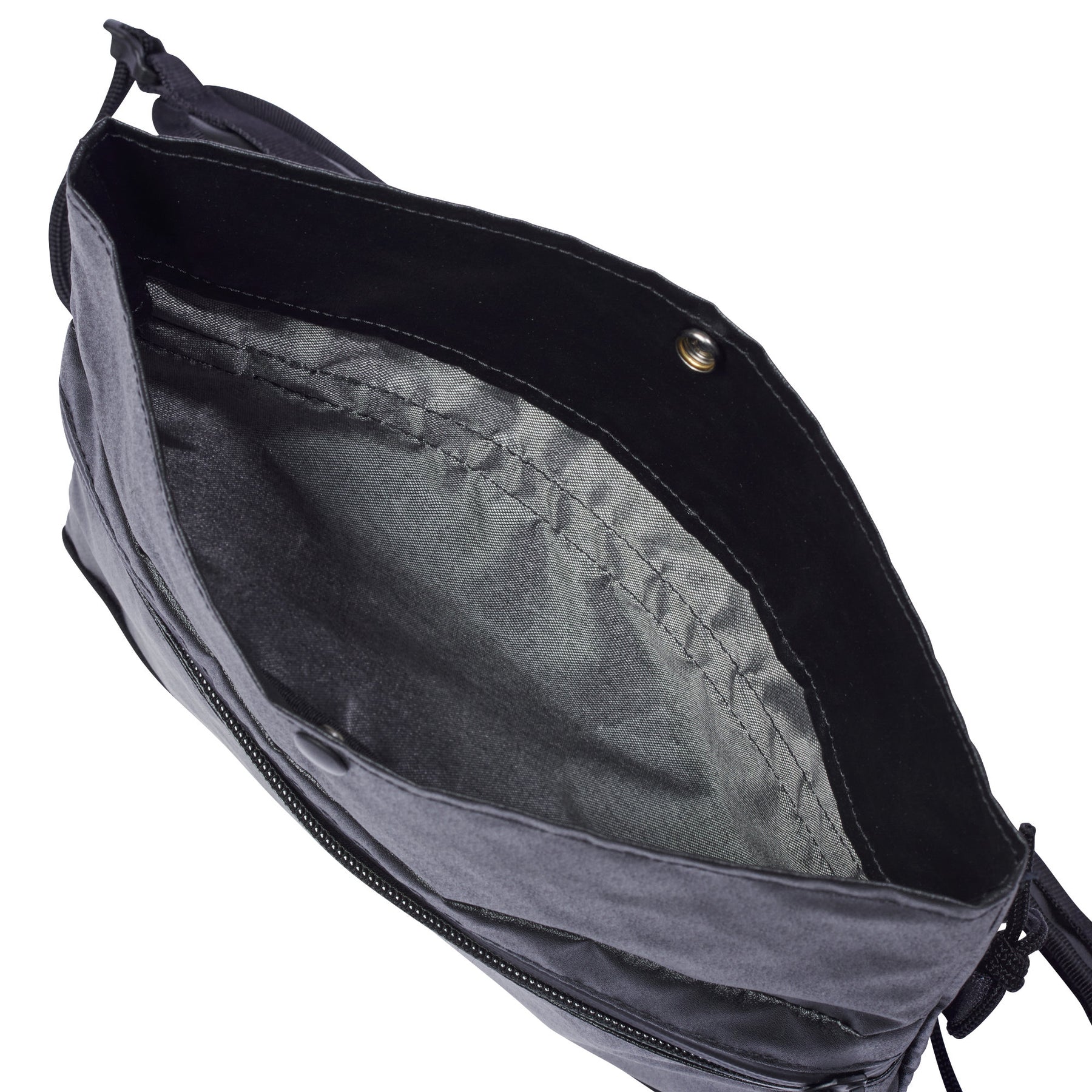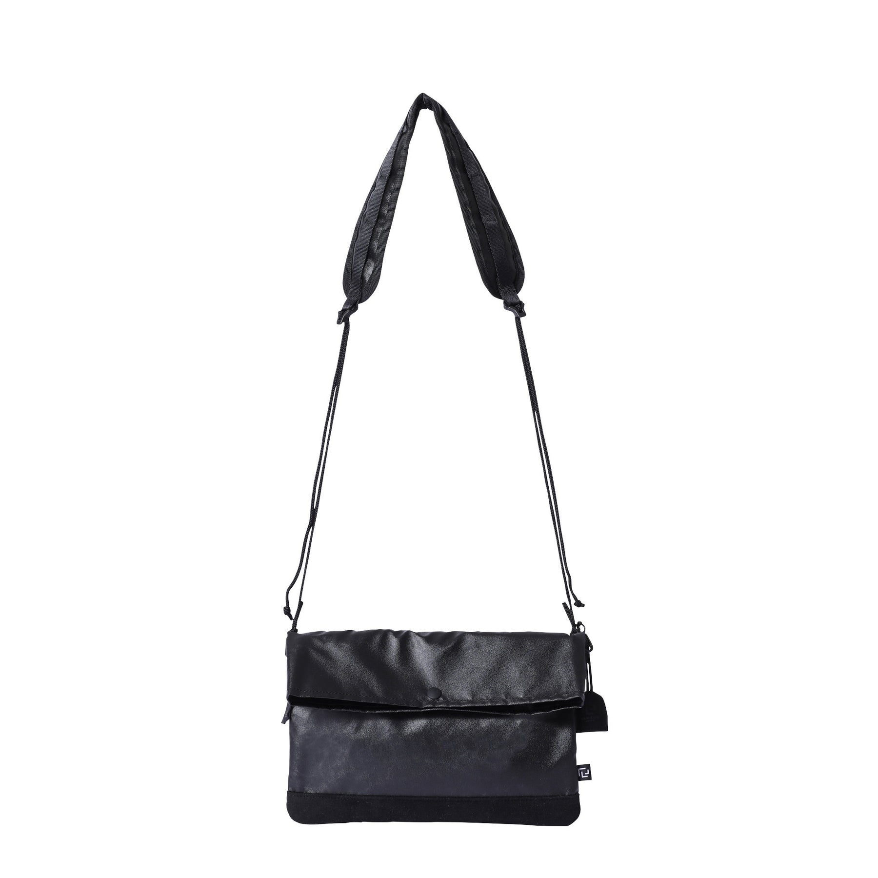 Sacoche的扁平無袋設計,可以在頂部摺疊,享受兩種形式。肩帶可以調節。底部由生態絨面革製成,具有類似絨面革的精細和光滑的感覺。