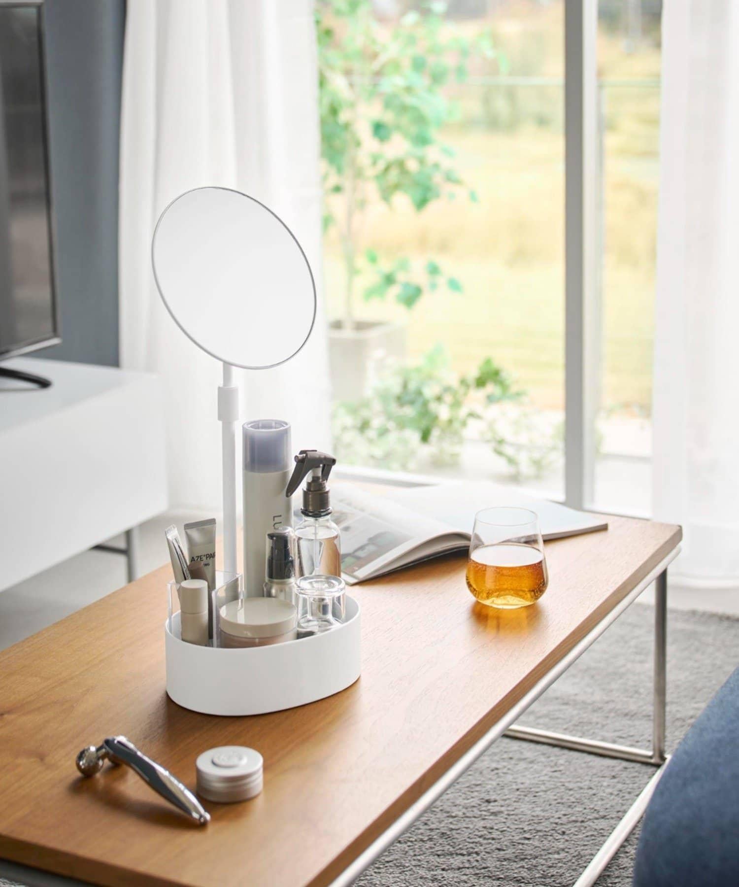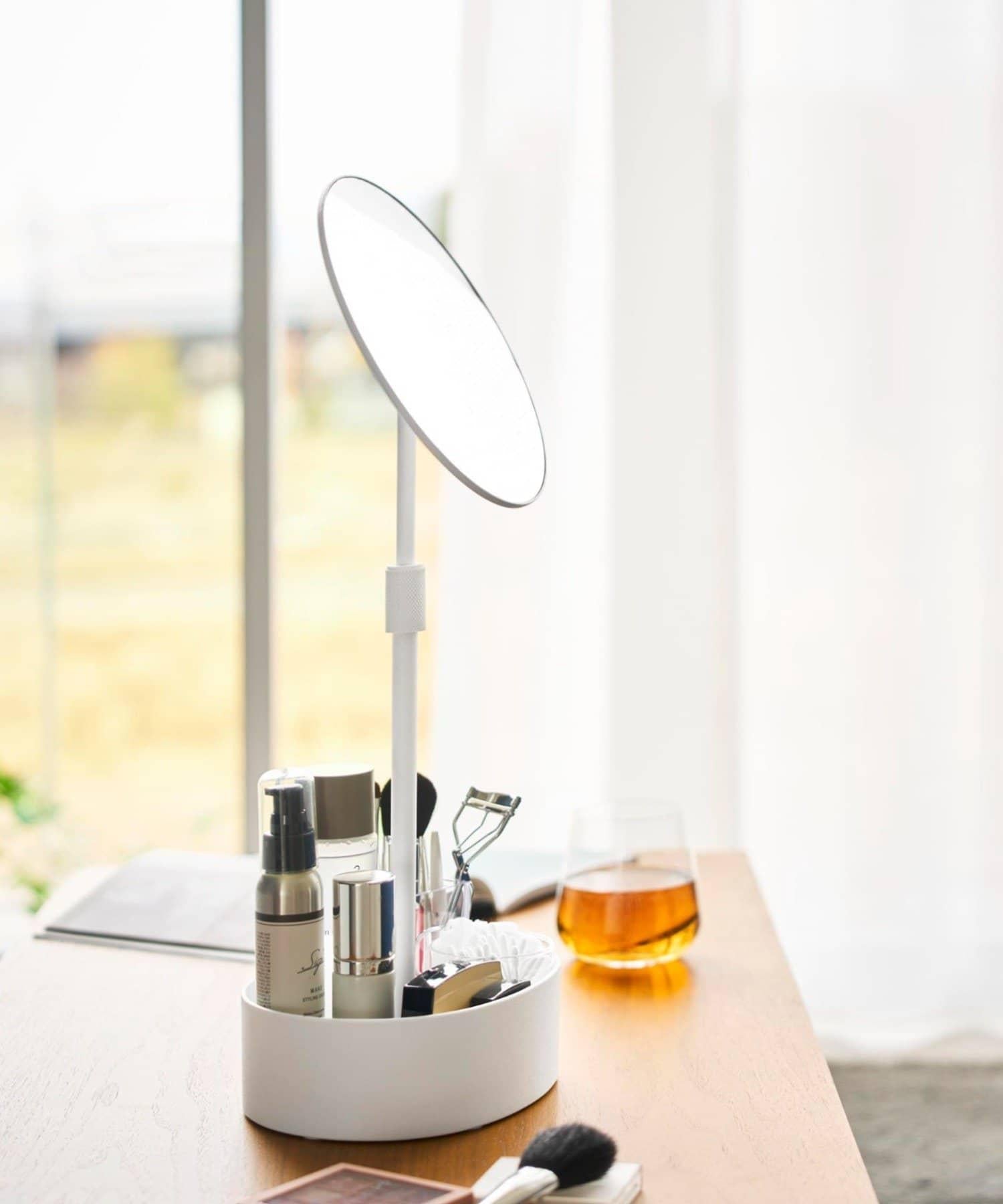 鏡子的高度可以通過延長支柱來調節,👍可達 55 厘米,即使在低矮的桌子上也能輕鬆使用。