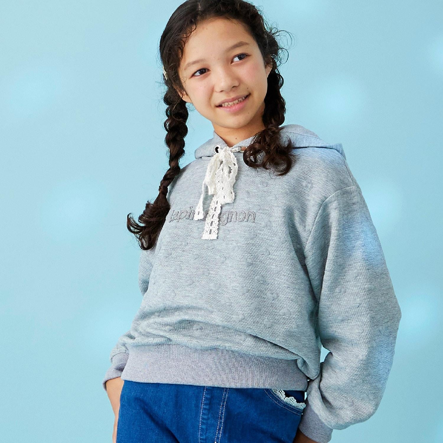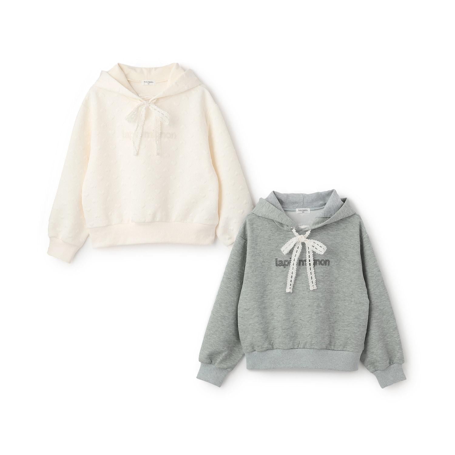 trois lapins 愛心絎縫提花連帽衛衣