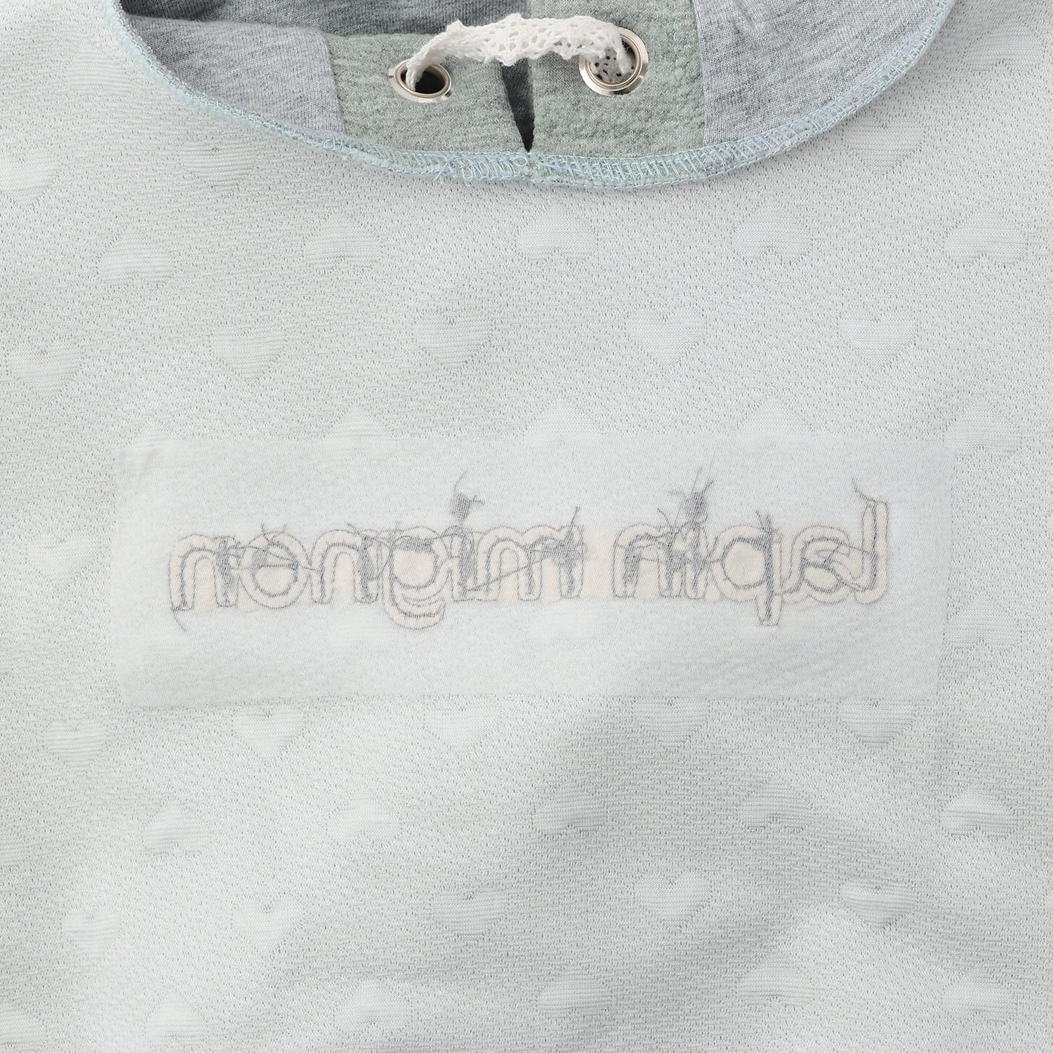 寬鬆版型的連帽衫,採用絎縫提花面料,上面有微妙的心形圖案。