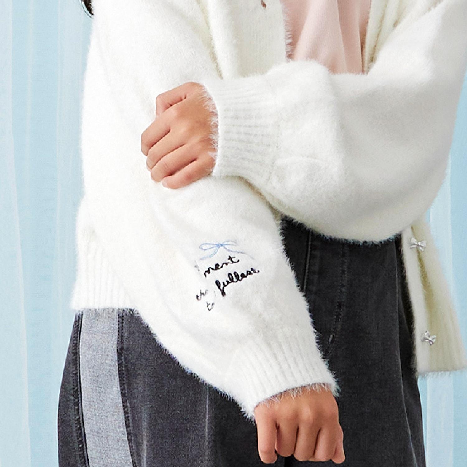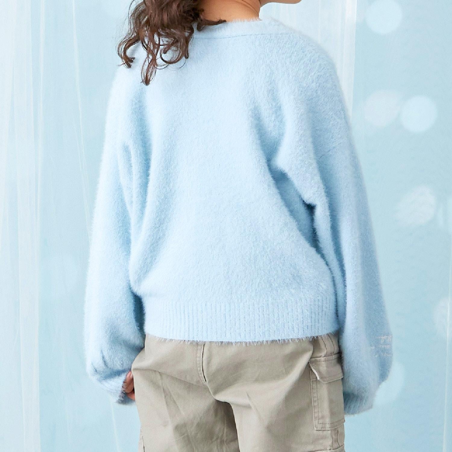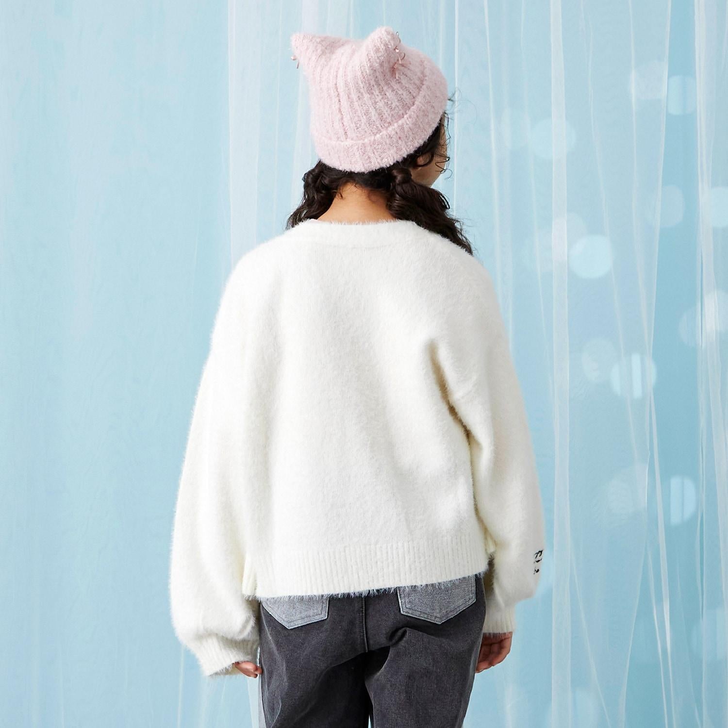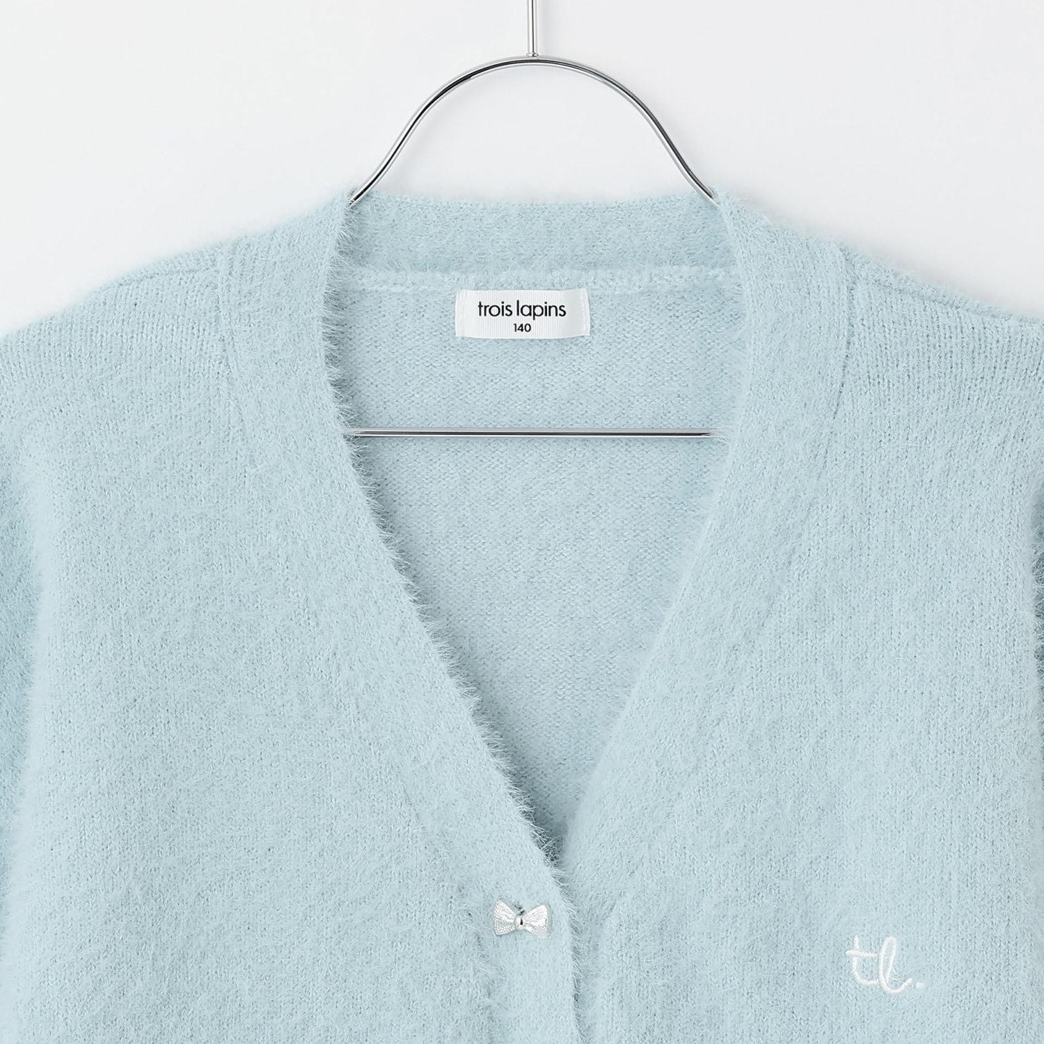 【trois lapins】長毛針織V領開衫
