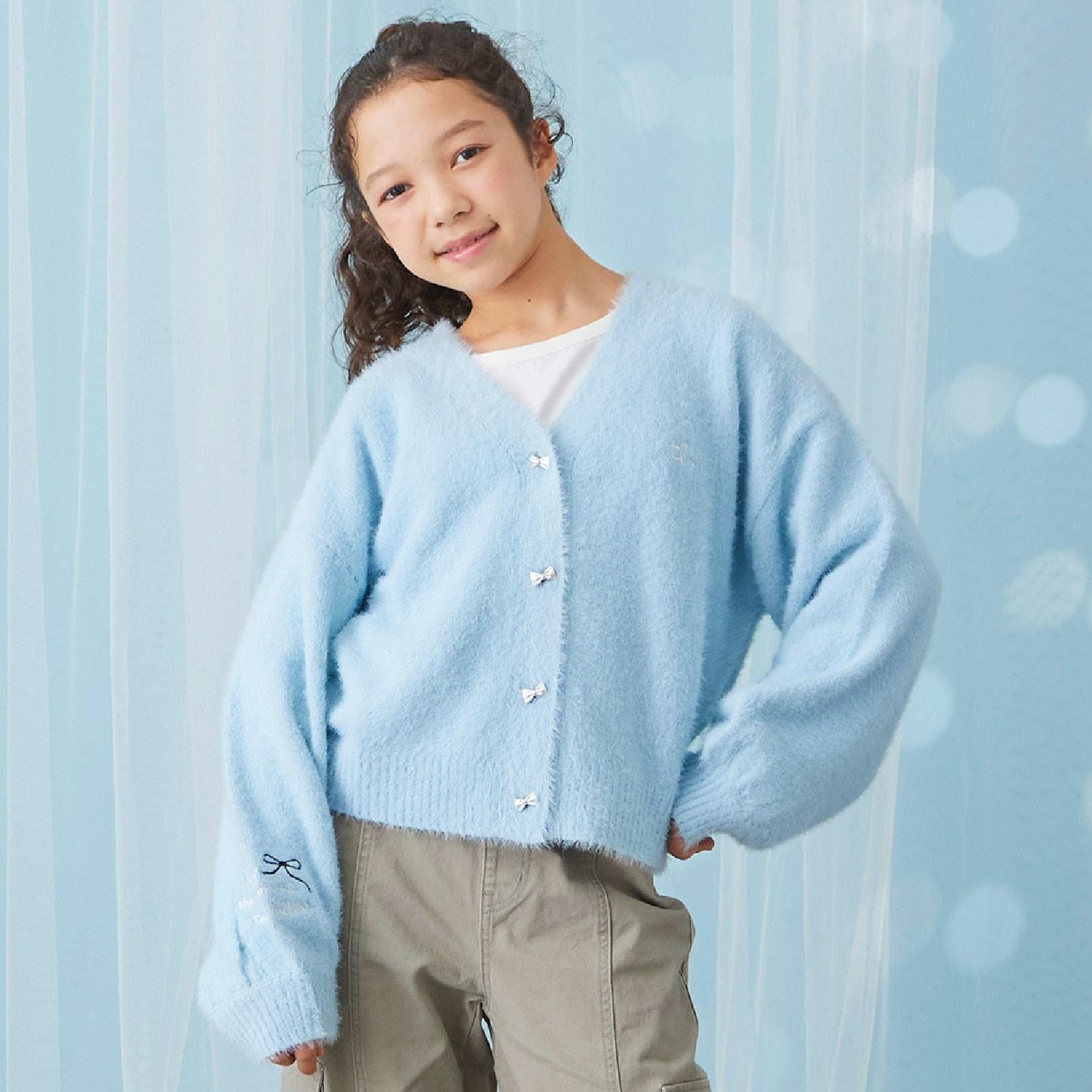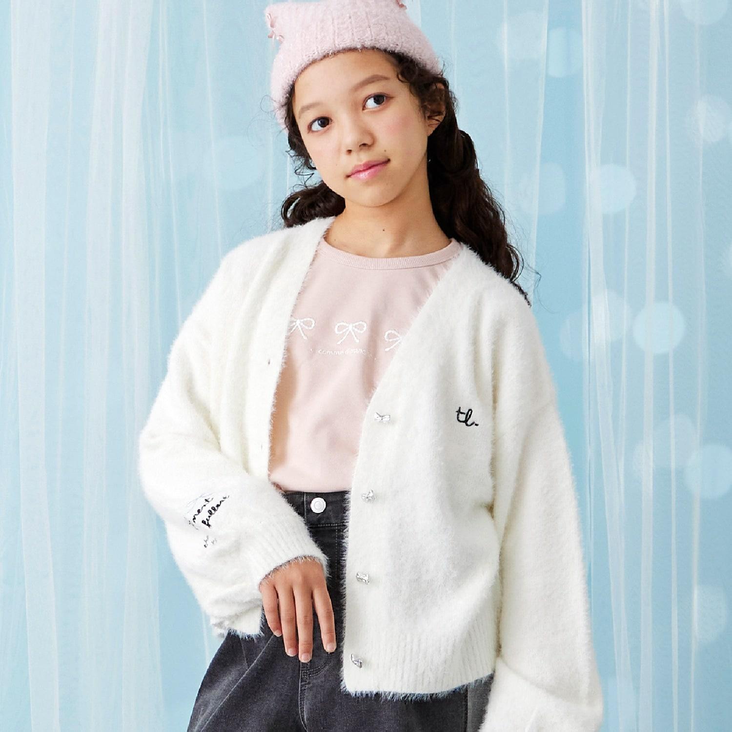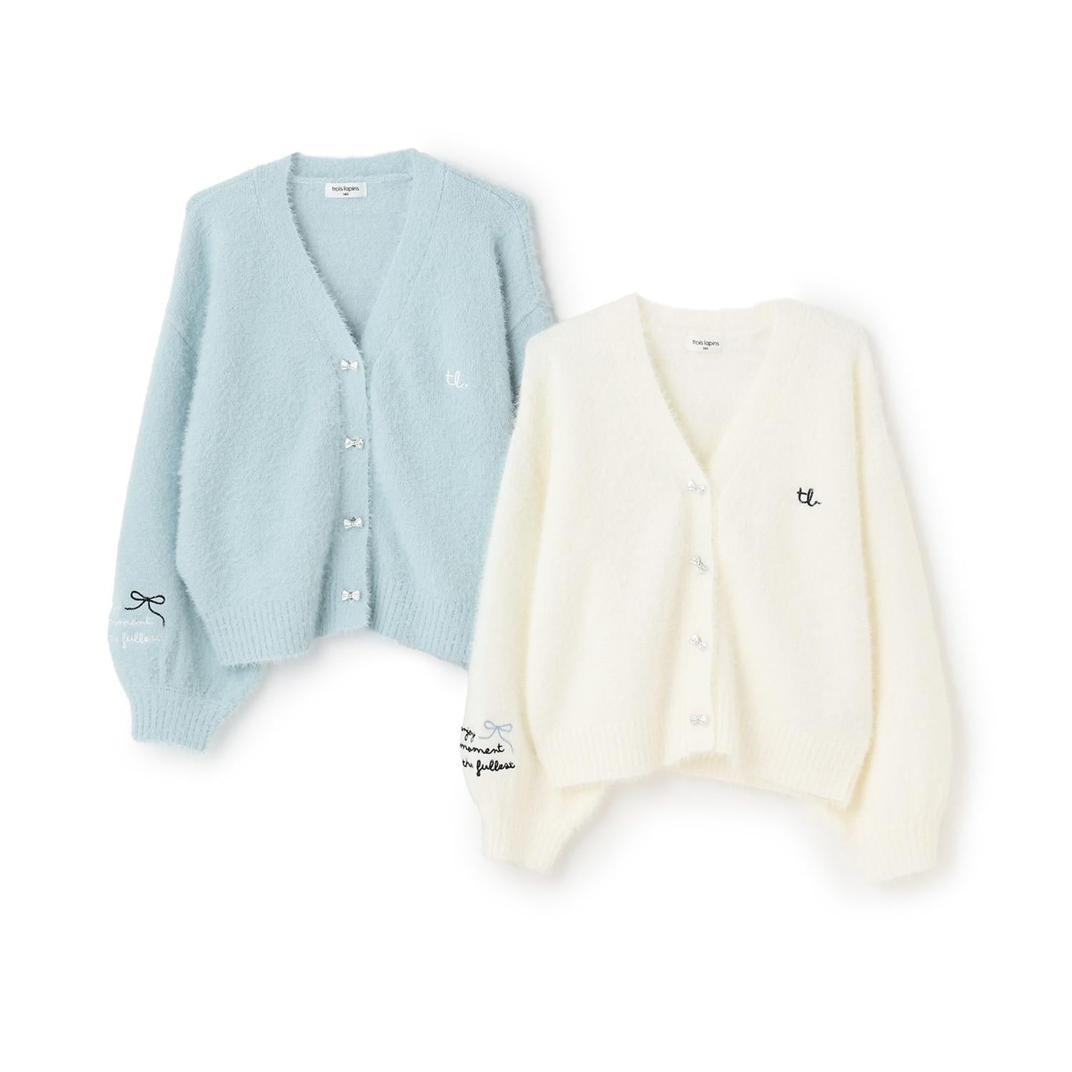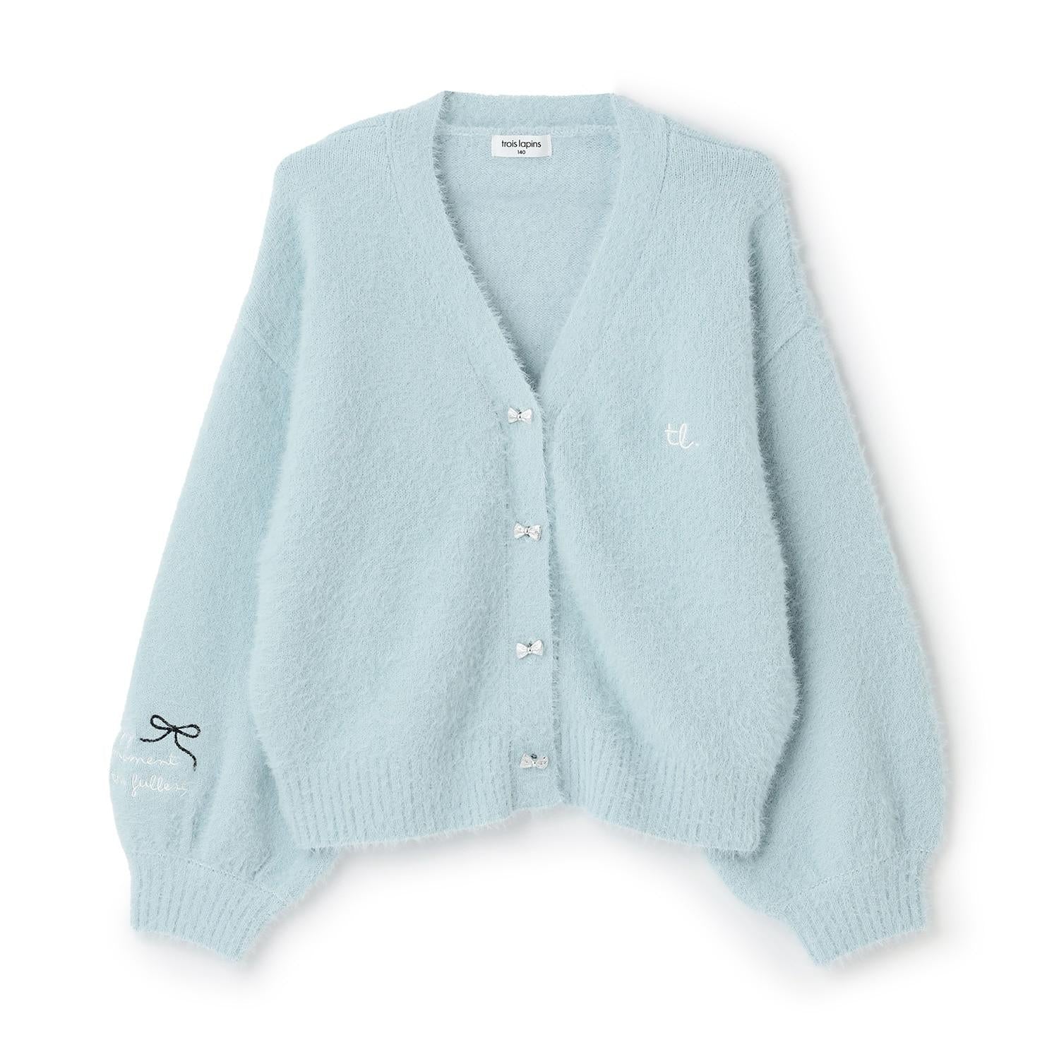 【trois lapins】長毛針織V領開衫