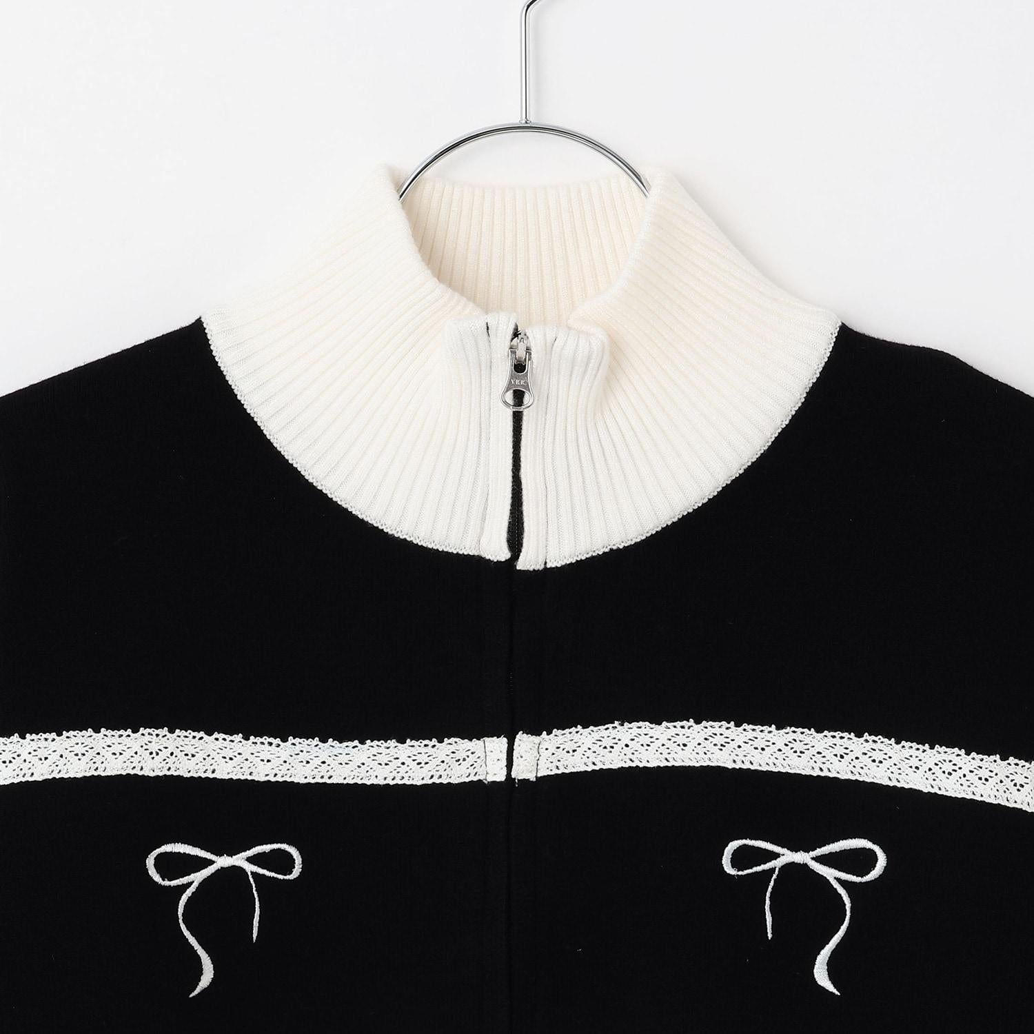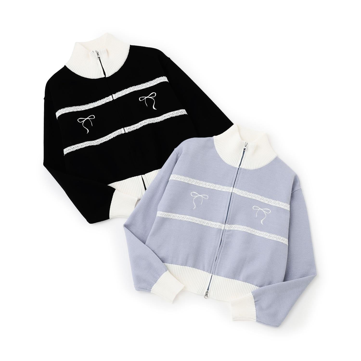 胸前的蕾絲和緞帶刺繡以及頂部和底部帶拉鍊的前開式拉鍊,讓您可以根據打開的方式改變服裝的外觀。
