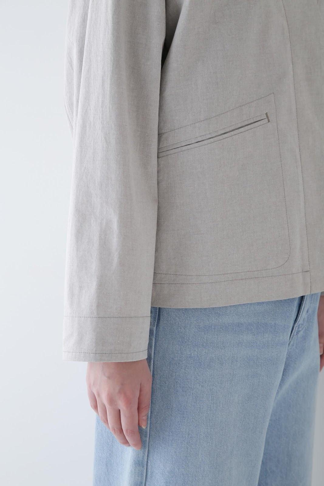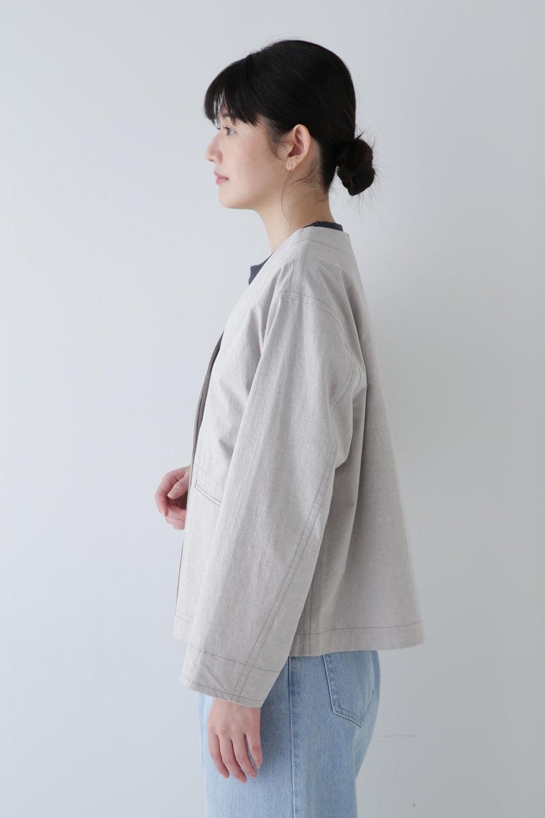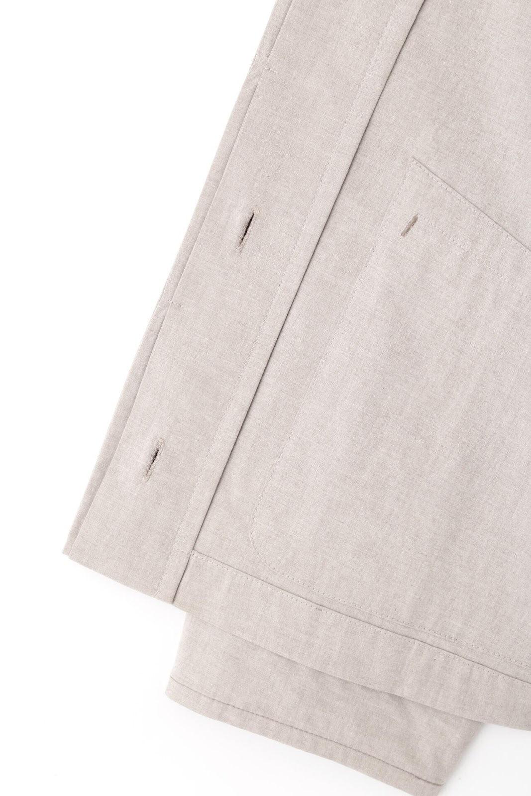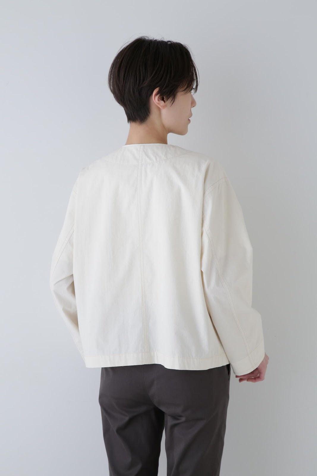 V 領設計簡潔,領口和縫線寬鬆。罩衫採用 30/1 天候面料製成,質地輕盈,外觀自然。有兩種顏色可供選擇:淺棕色和綠色。這是一款可以像襯衫一樣穿著的單品,在季節變化時非常方便。面料的質感可以讓人享受,因此我們建議將它簡單地套在 T 恤外面。