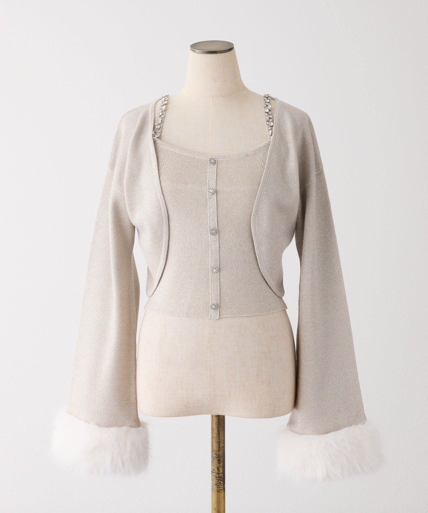【Twinkle Collection】袖部毛絨短外套+亮片吊帶上衣套裝