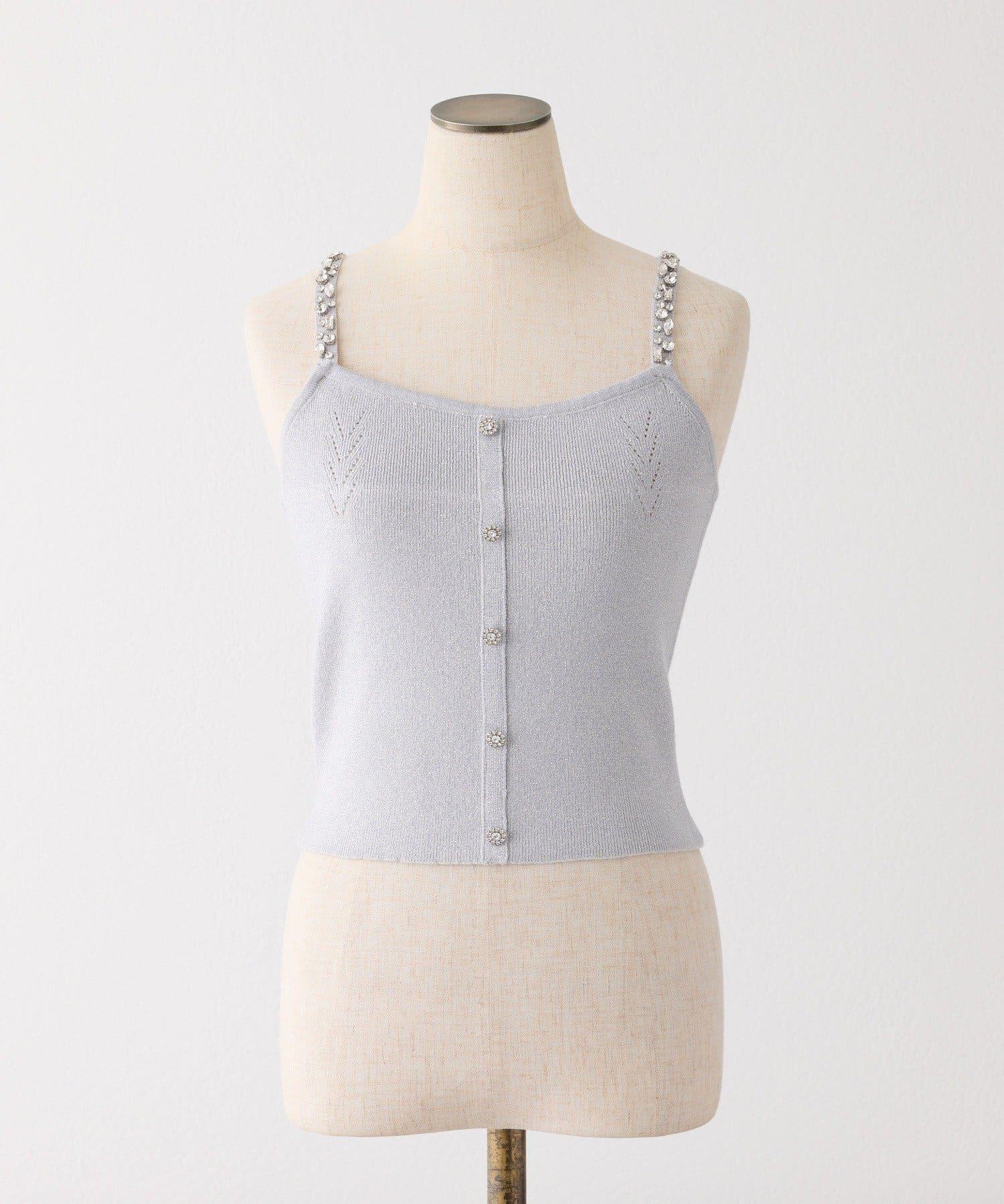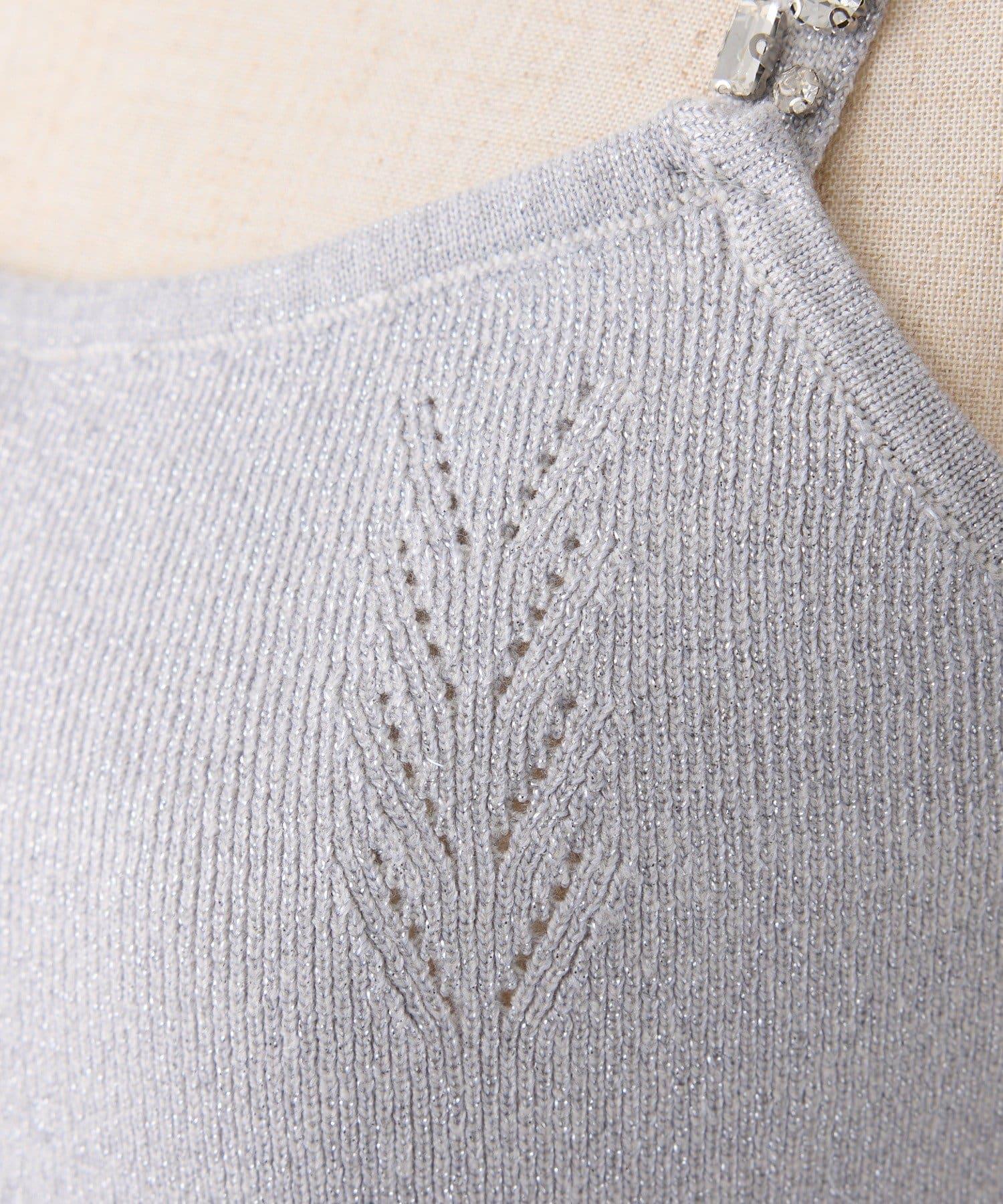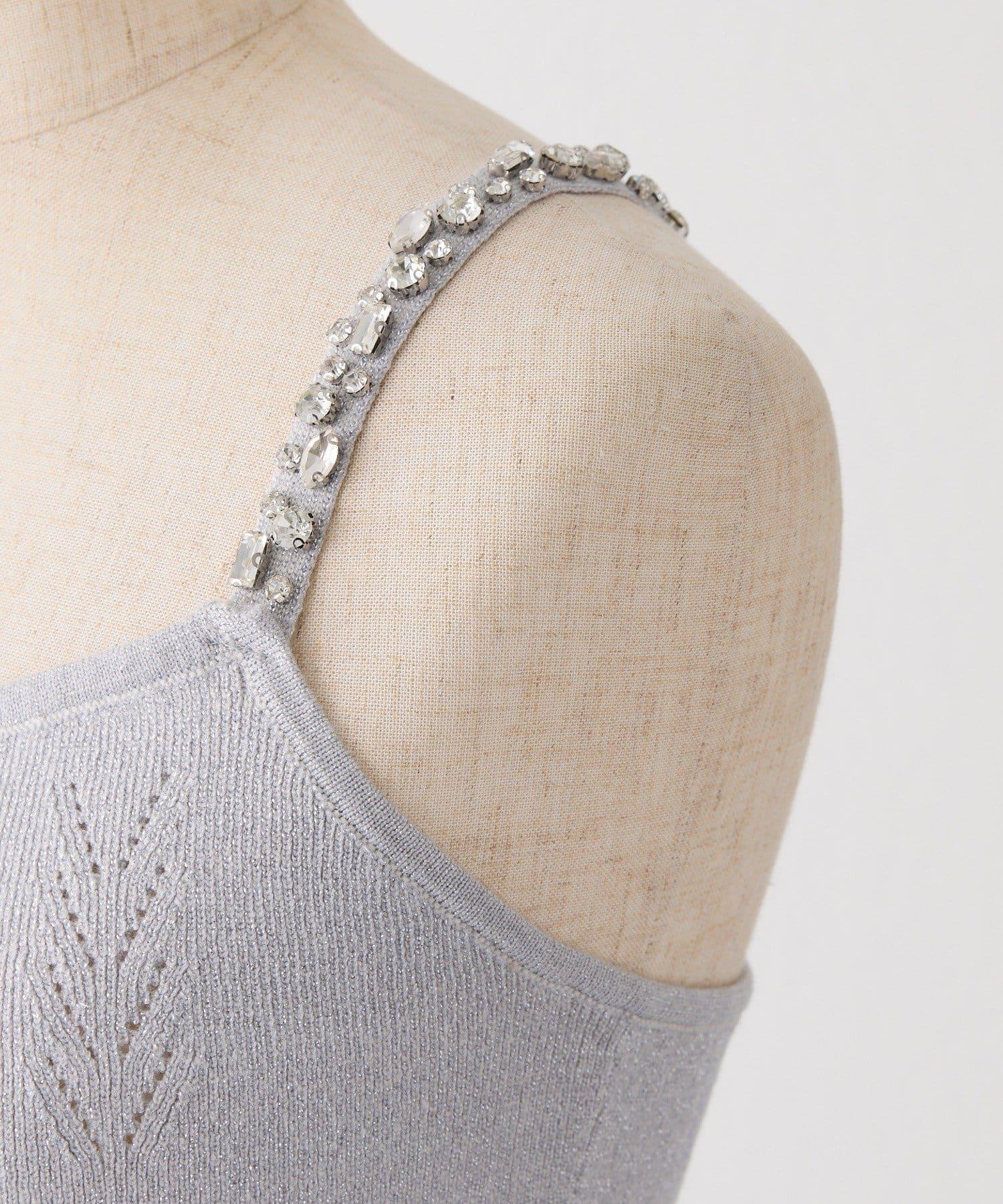 肩部飾有閃亮珠寶的針織吊帶衫、