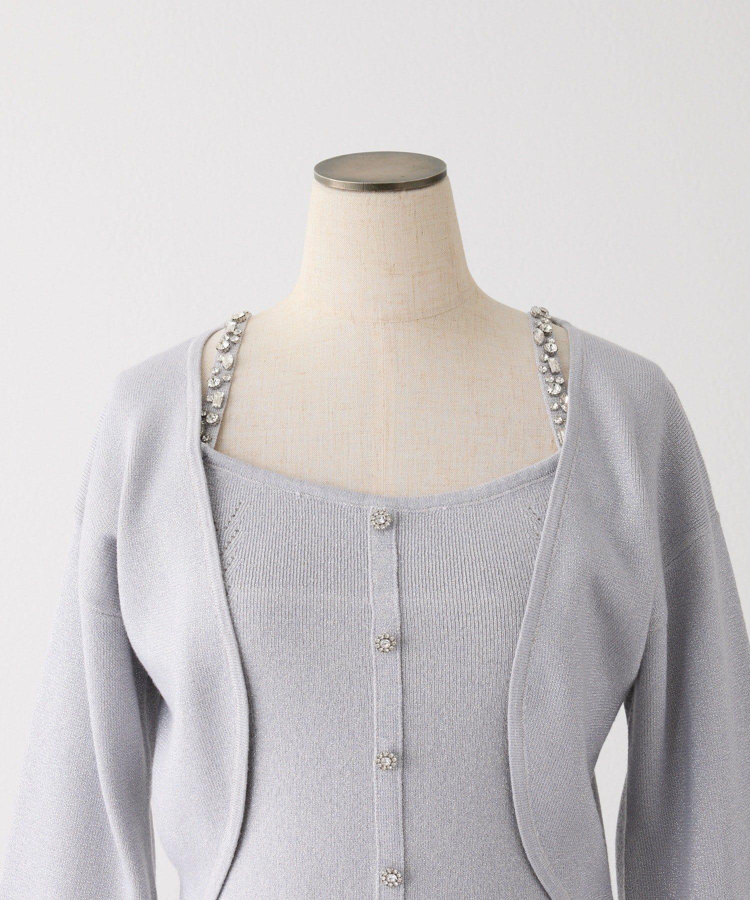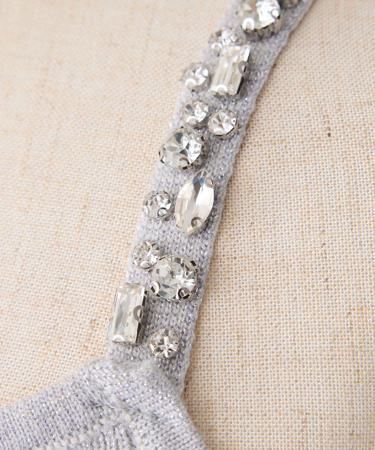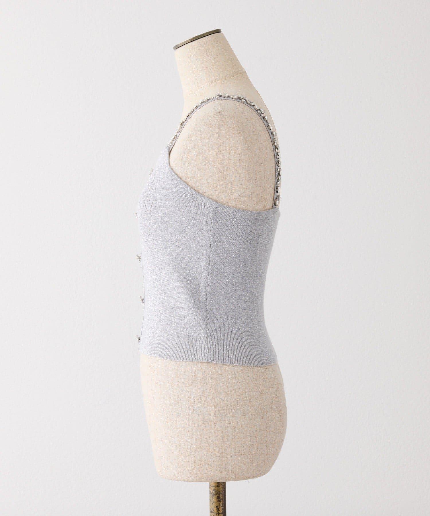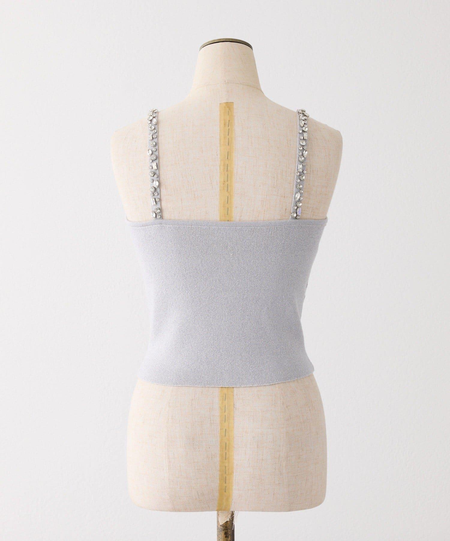 肩部飾有閃亮珠寶的針織吊帶衫、
