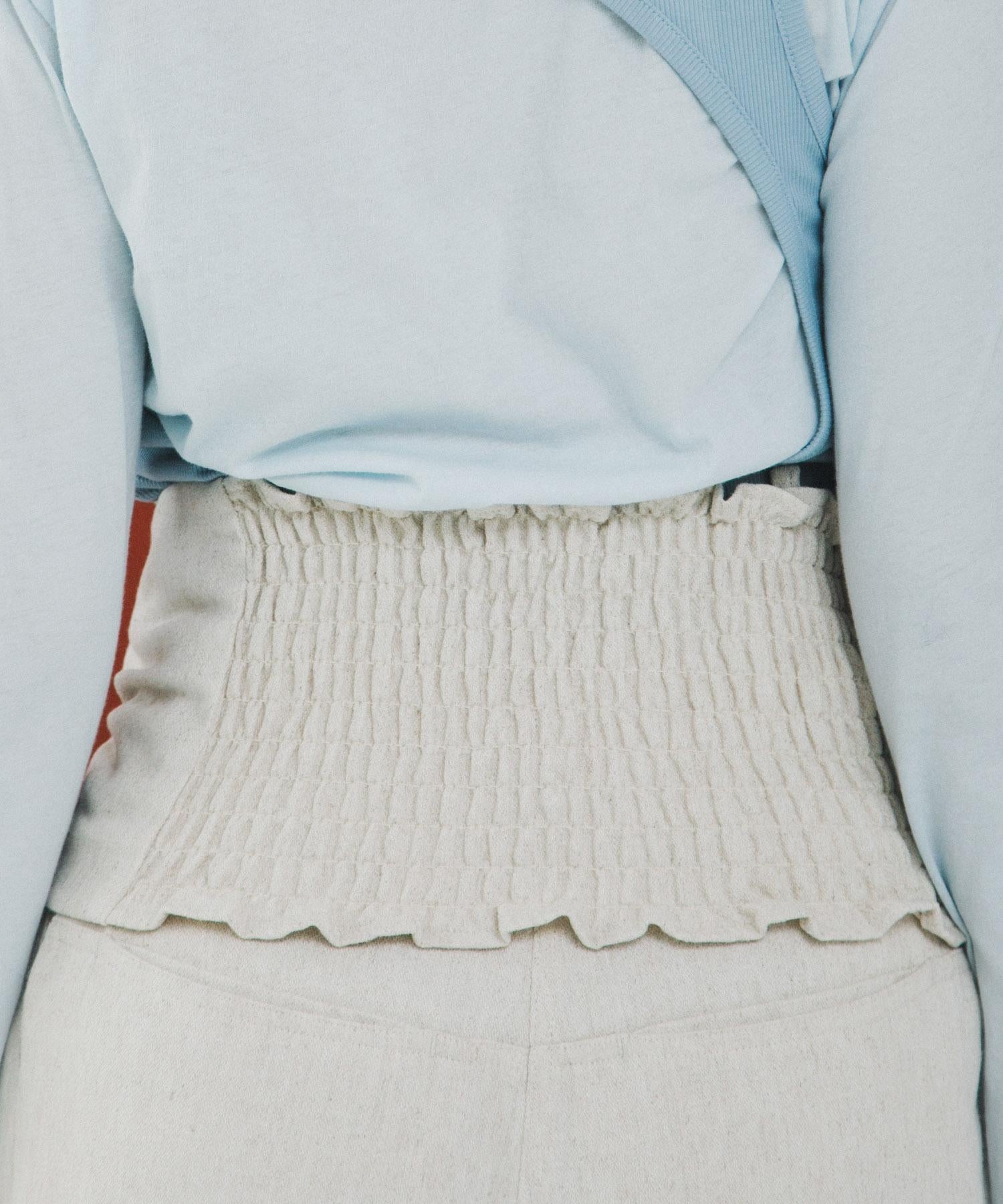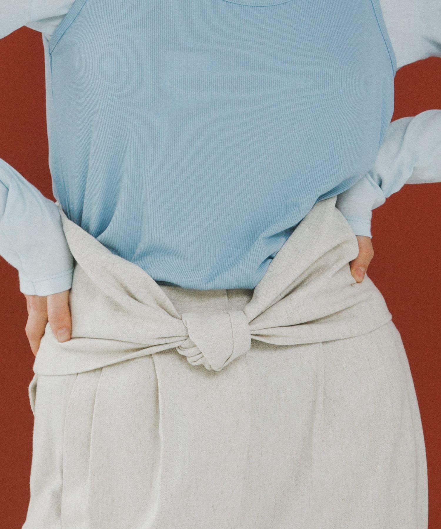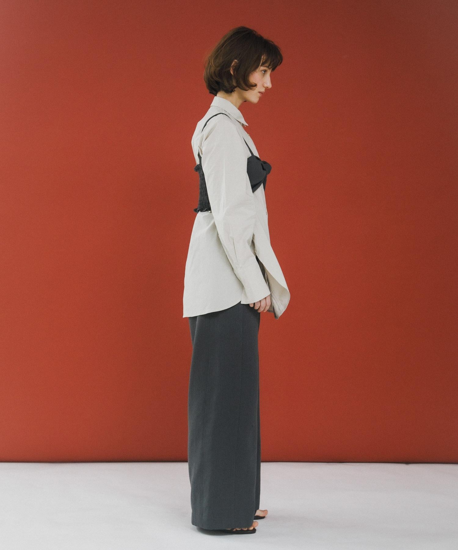 這款半身裙的正面採用了大膽的扭結設計,帶來一絲魅力。 面料的彈力使其成為貼身舒適的絕佳單品。後背的款式採用了細碎的裝飾,不僅突出了設計感,而且穿脫方便,穩固牢靠。肩帶採用細膩的肩帶,使肩部線條優美,給人乾淨利落的印象,疊穿時也不會過於沉重。肩帶的長度可以調節,因此您可以根據搭配的內搭厚度,將其穿出👍的平衡感。只需搭配剪裁簡潔的襯衫、襯衣等,就能讓您的著裝更上一層樓。