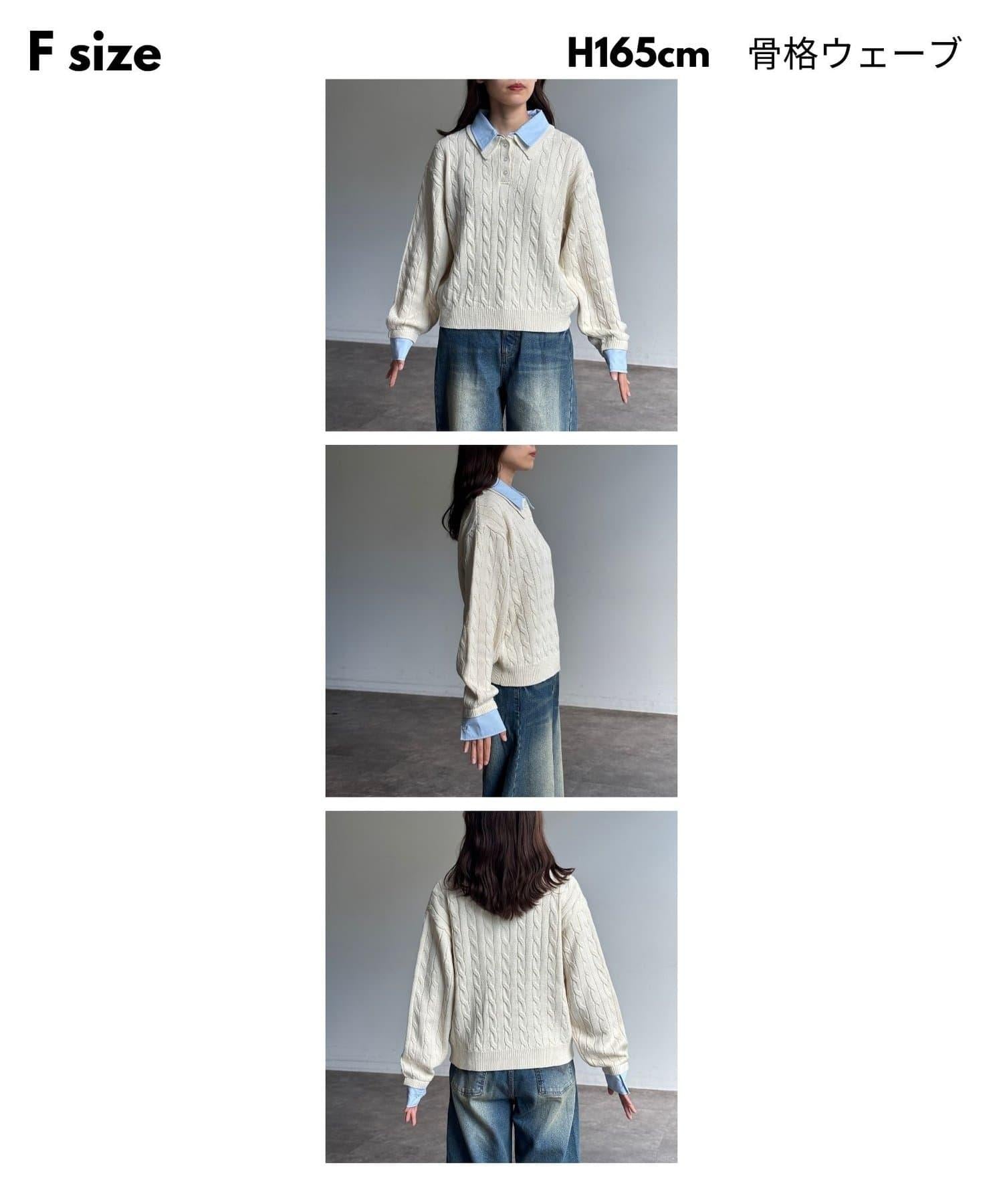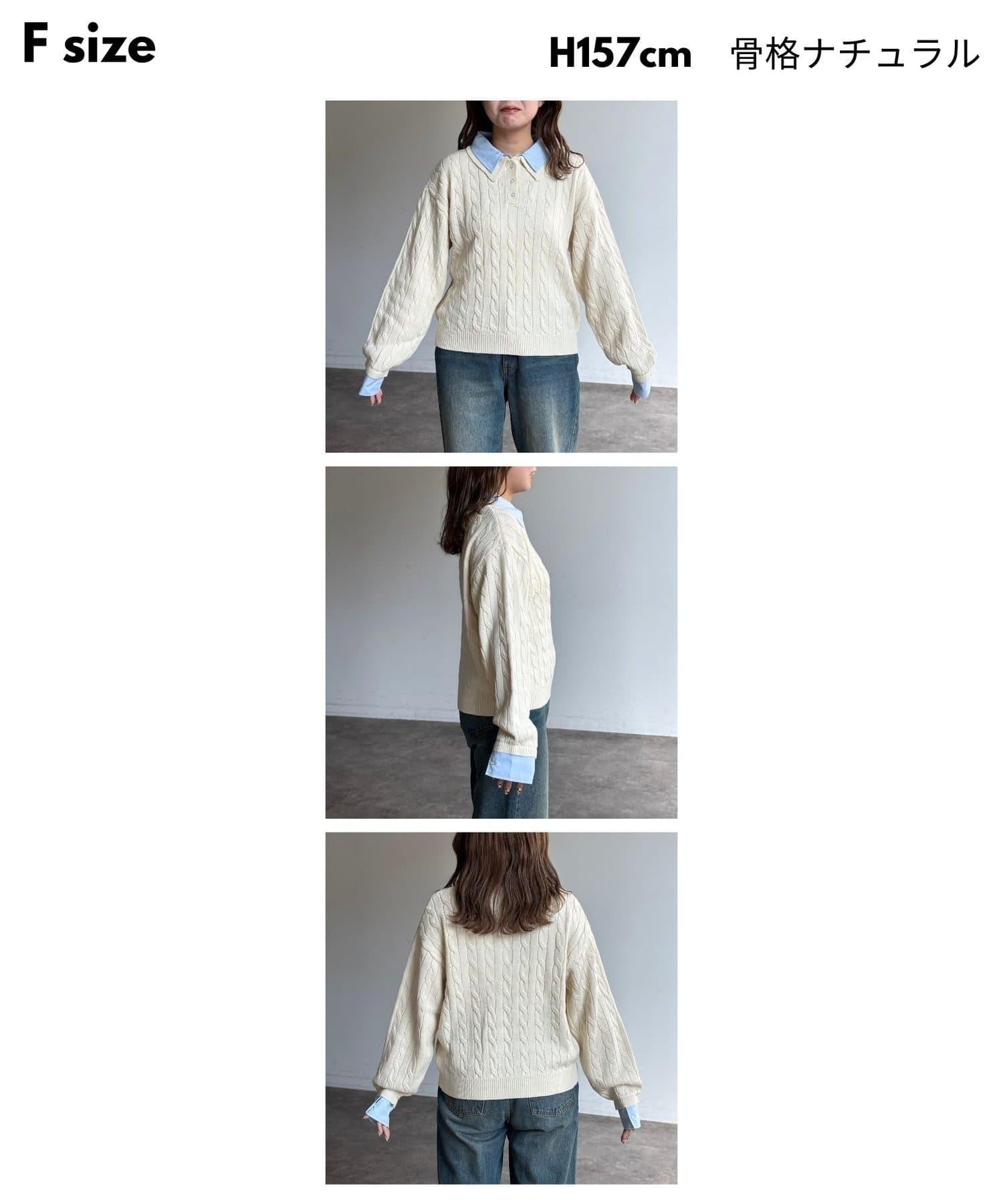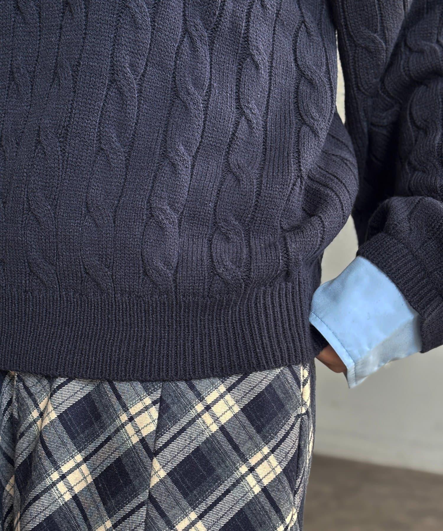 深色電纜針織與襯衫領口的結合,給人優雅沉穩的印象。
