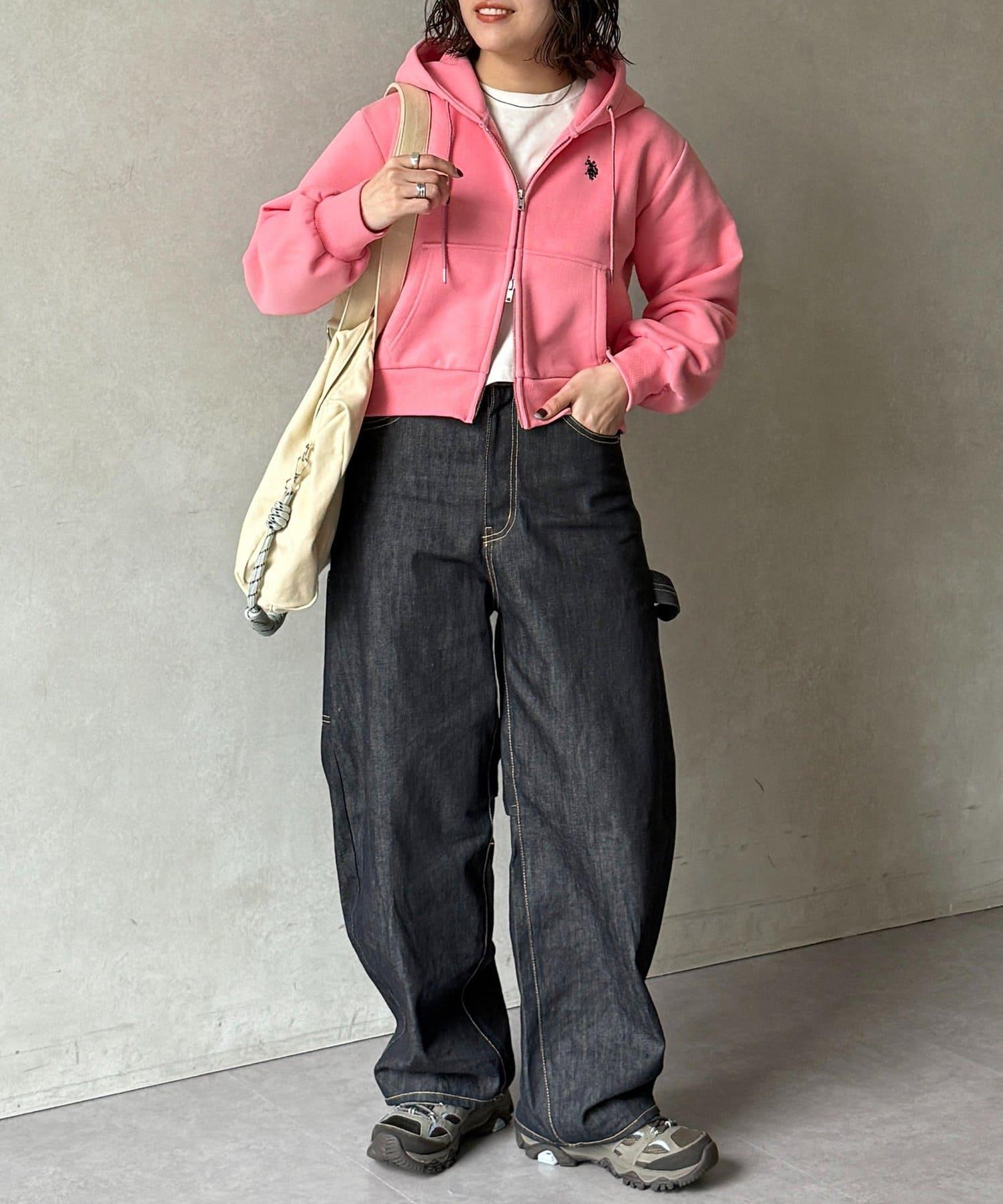 搭配弧形牛仔褲,打造時髦的休閒搭配。