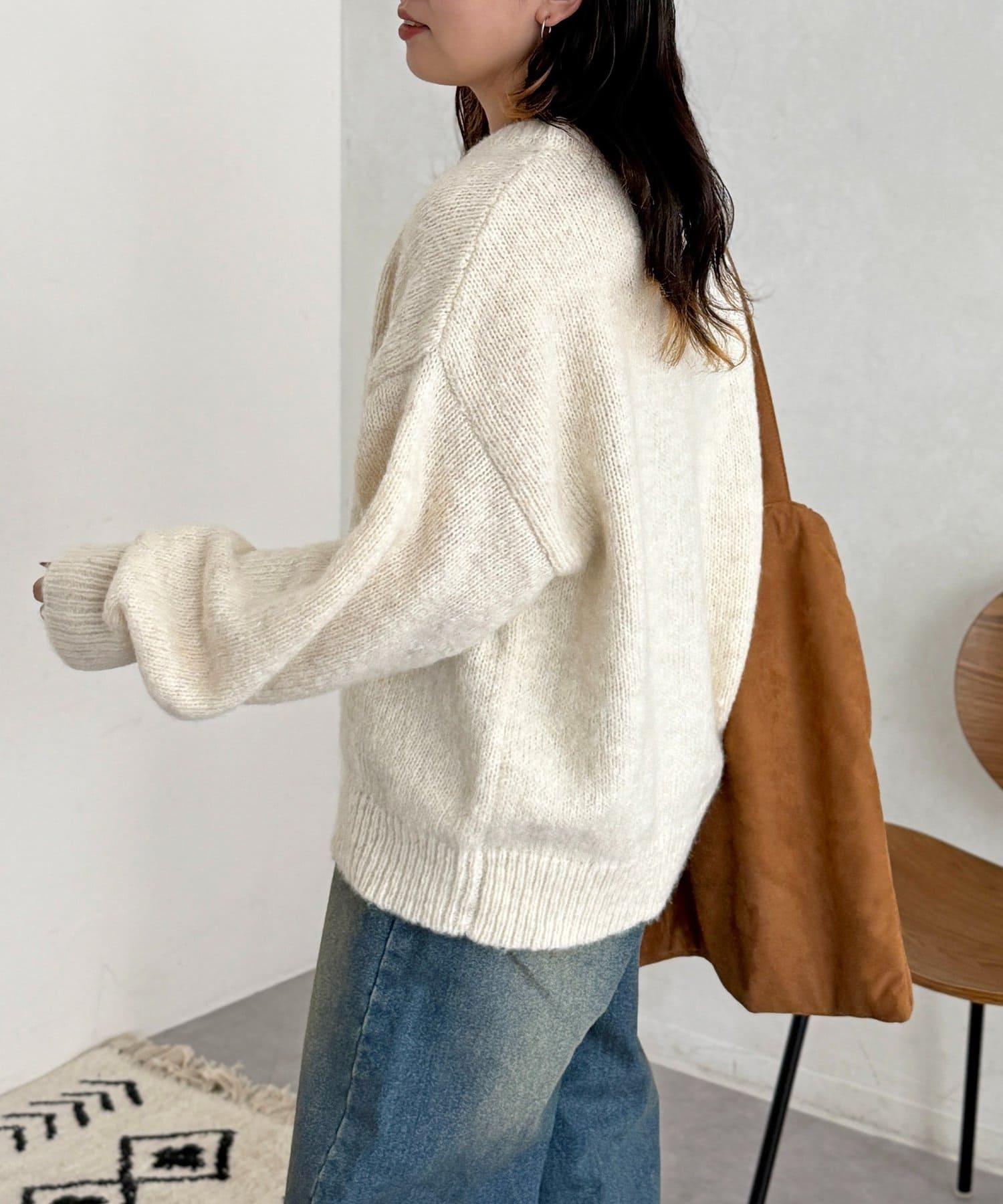 這款蓬鬆的針織衫採用混合紗線編織而成,質地富有表現力!