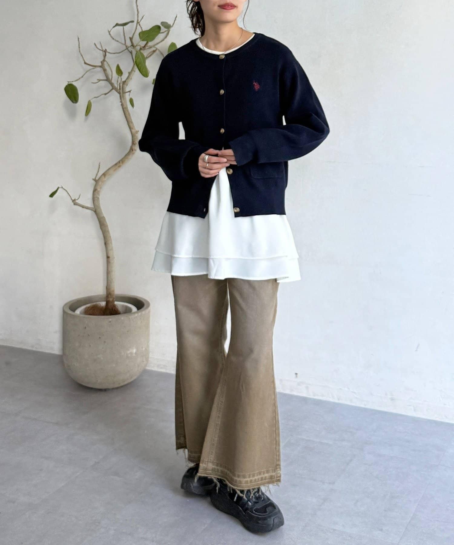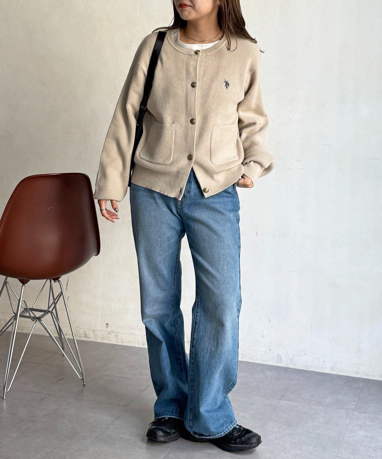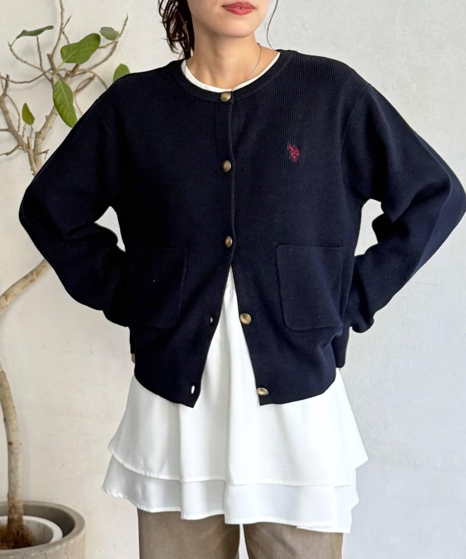 U.S. POLO ASSN. 畦編針織 金色紐扣 針織開衫
