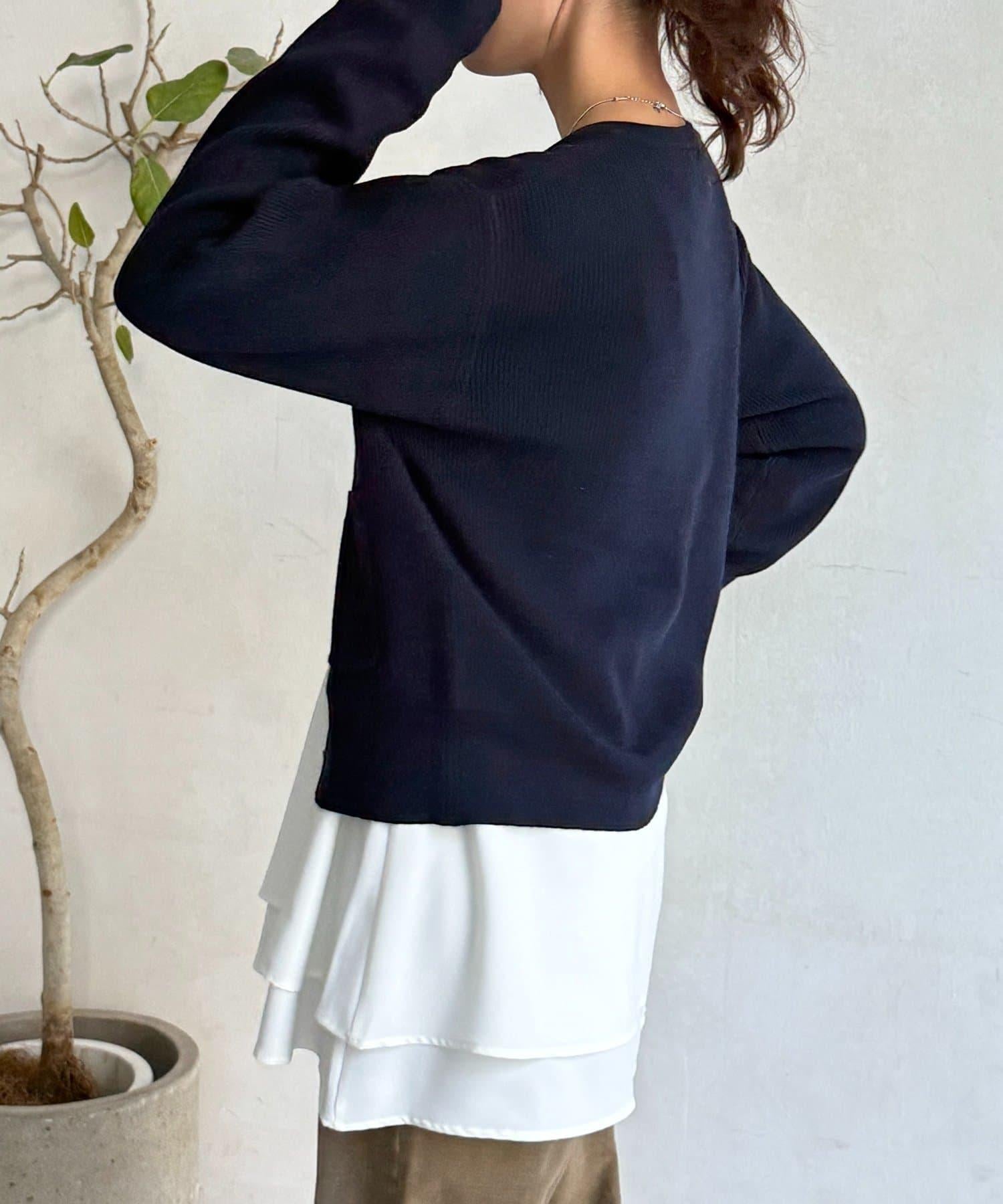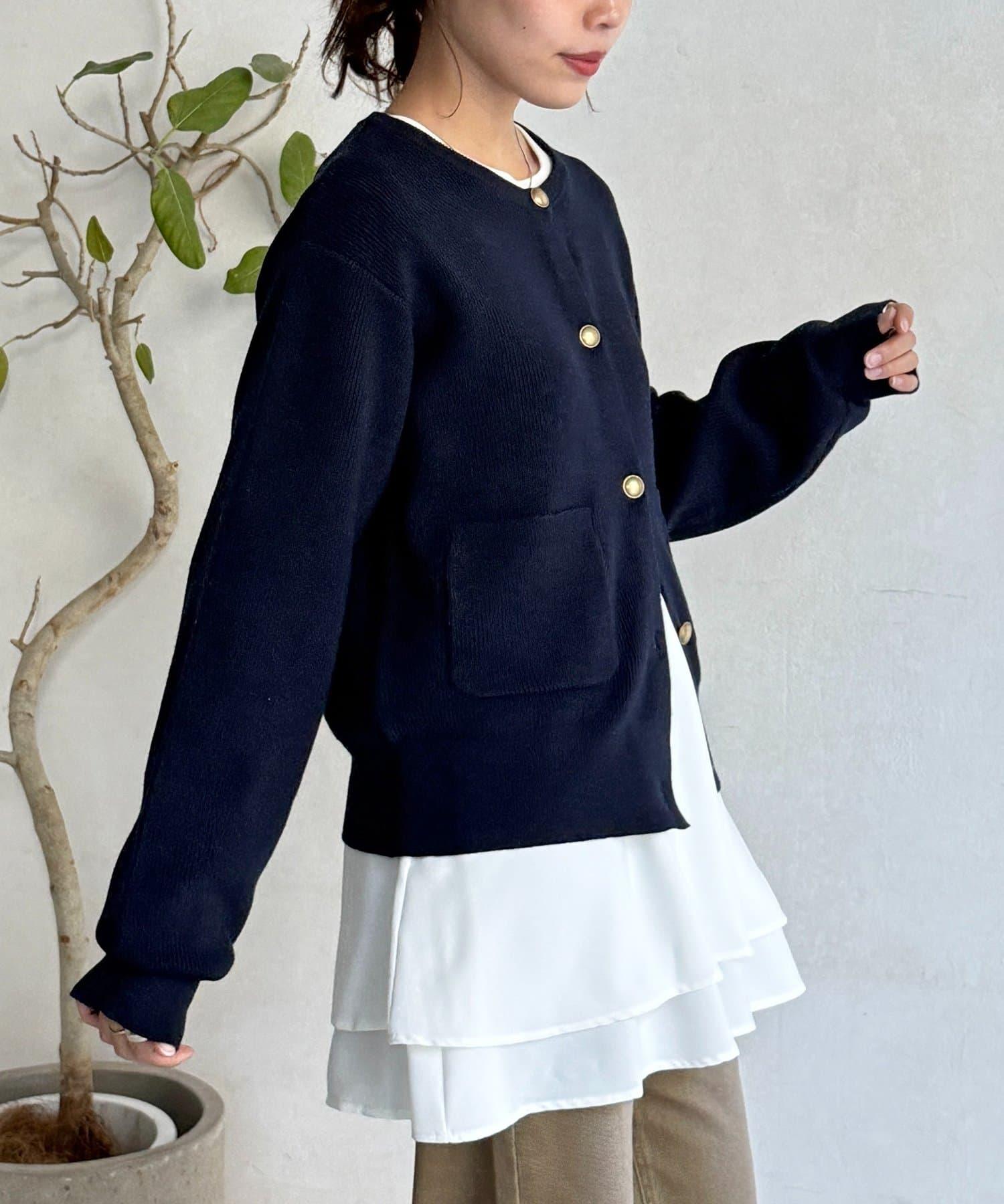 這款針織開衫以金色紐扣點綴,充滿古典氣息!